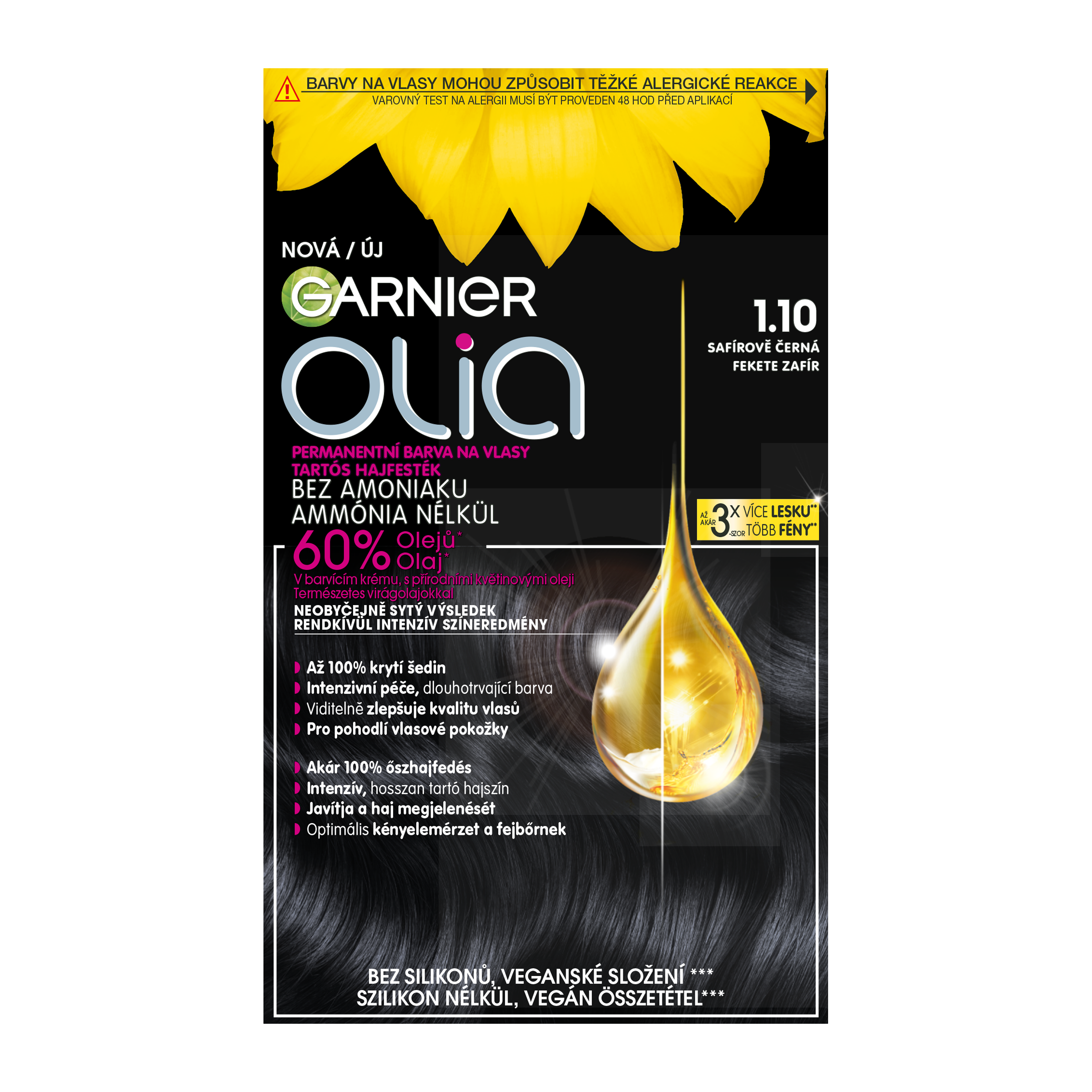 Olia od Garnier je dlouhotrvající permanentní barva na vlasy, která obsahuje 60 % olejů, neobsahuje amoniak ani silikony. Technologie olejové báze vnáší barvu hluboko do srdce vlasového vlákna a zajišťuje úžasně intenzivní výsledek. Součástí balení je nově také aplikátor, který usnadňuje aplikaci. Olia kryje až 100 % šedin. Její intenzivní péče viditelně zlepšuje kvalitu vlasů a přináší komfort pokožce hlavy.