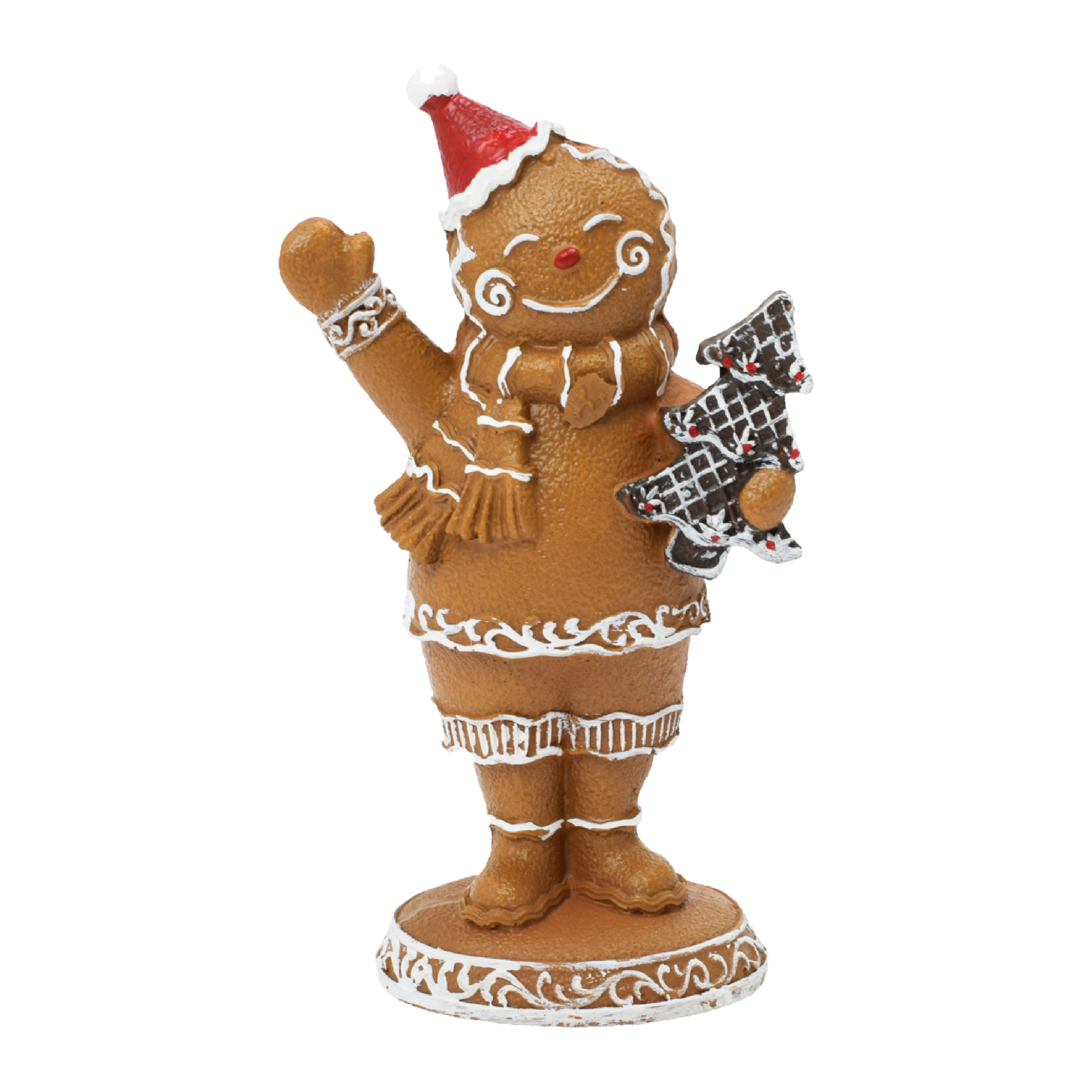 Roztomilý perníkový chlapec s červenou čepicí, šálou a vánočním stromečkem v rukou rozzáří každý kout vašeho domova. Detailní dekorace s efektem polevy navodí tu pravou sváteční atmosféru.