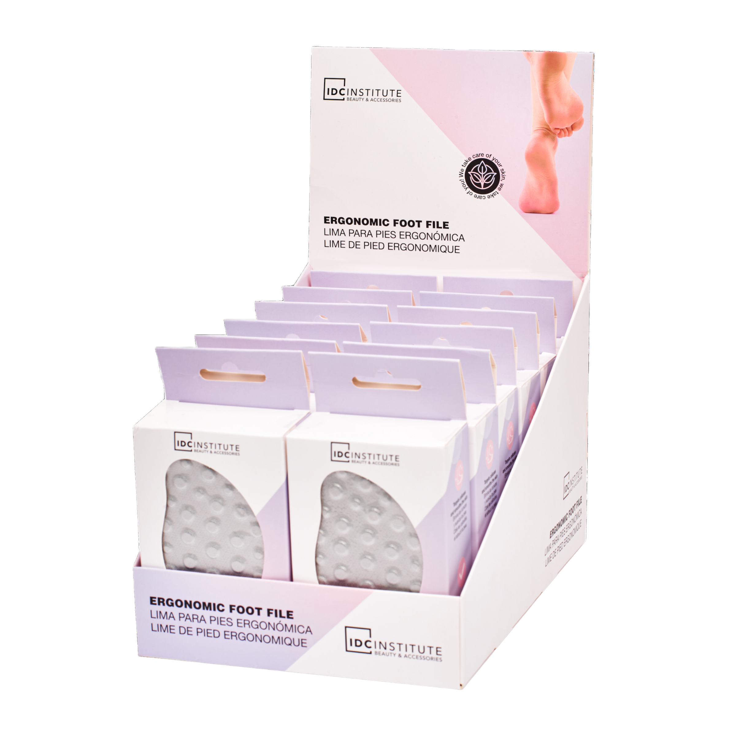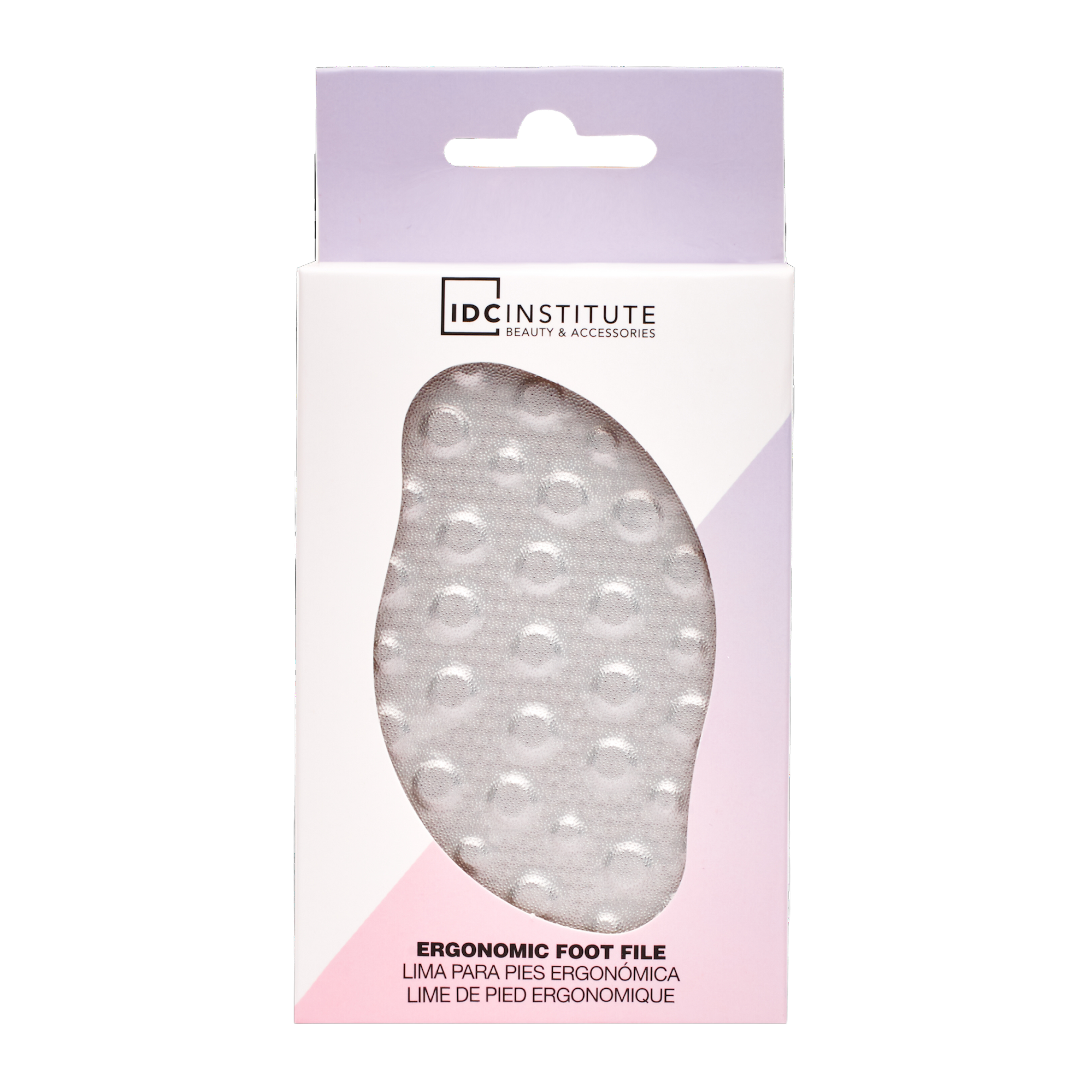 Růžový ergonomický pilník na paty od značky IDC INSTITUTE. Účinně odstraňuje přebytečnou kůži z chodidel a zanechává je velmi jemné. Díky ergonomickému designu se rychle a pohodlně používá.