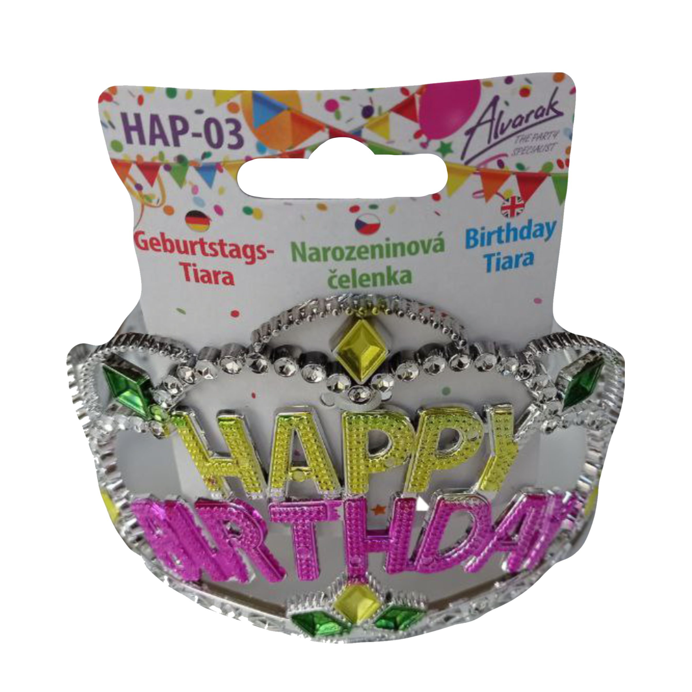 Plastová párty čelenka Happy birthday žluto-růžová