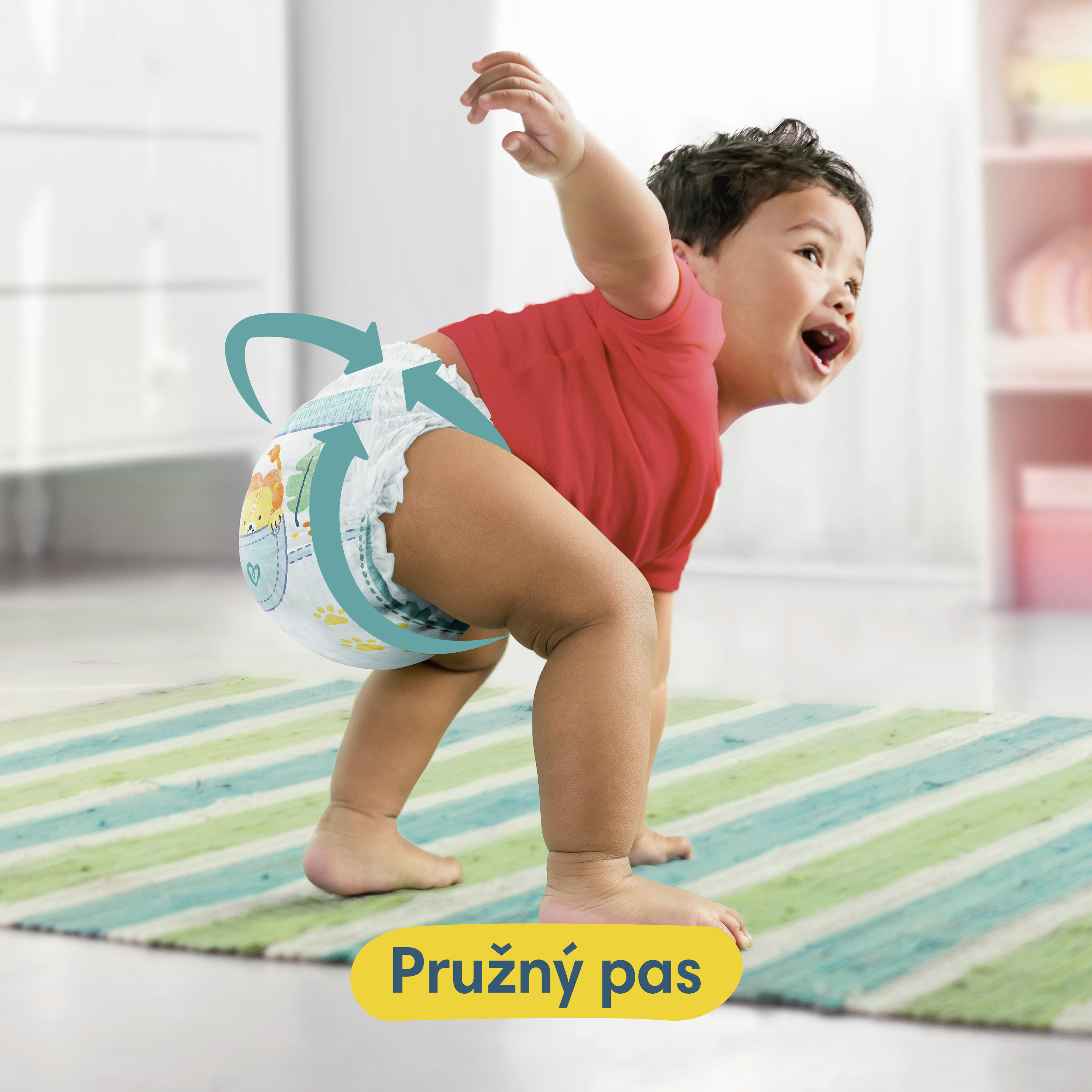 Když vaše děťátko začne být aktivnější, chcete plenku, která udrží krok s jeho novými pohyby. Plenkové kalhotky Pampers Active Baby Pants s revolučním systémem Stop & Protect nabízejí vynikající úplnou ochranu před protečením po celý den i noc a bez ohledu na polohu vašeho děťátka. Plenkové kalhotky Pampers Active Baby Pants se systémem Stop & Protect mají 2× širší* manžetky na nožičkách, které pomáhají předcházet protečení kolem nožiček, kapsu, která pomáhá zabránit protečení vzadu, 360° pružný pas, který se přizpůsobí tvaru těla vašeho děťátka při jakémkoli pohybu, a super absorpční jádro, které nabízí až 12hodinovou ochranu. Plenkové kalhotky Pampers Active Baby Pants se stejně jako všechny plenkové kalhotky od Pampers snadno vyměňují, i když je vaše děťátko neposedné: oblékají se jedním tahem a svlékají se roztrhnutím na bocích. Potom je stačí srolovat a zajistit páskem pro snadnou likvidaci. Stejně jako pro vás je i pro Pampers bezpečnost vašeho děťátka prioritou: Plenkové kalhotky Pampers Active Baby Pants jsou dermatologicky testované a schválené dermatology z organizace Skin Health Alliance. Chcete se o složení výrobků Pampers dozvědět víc? Navštivte pampers.cz. *v porovnání s předchozí plenkou