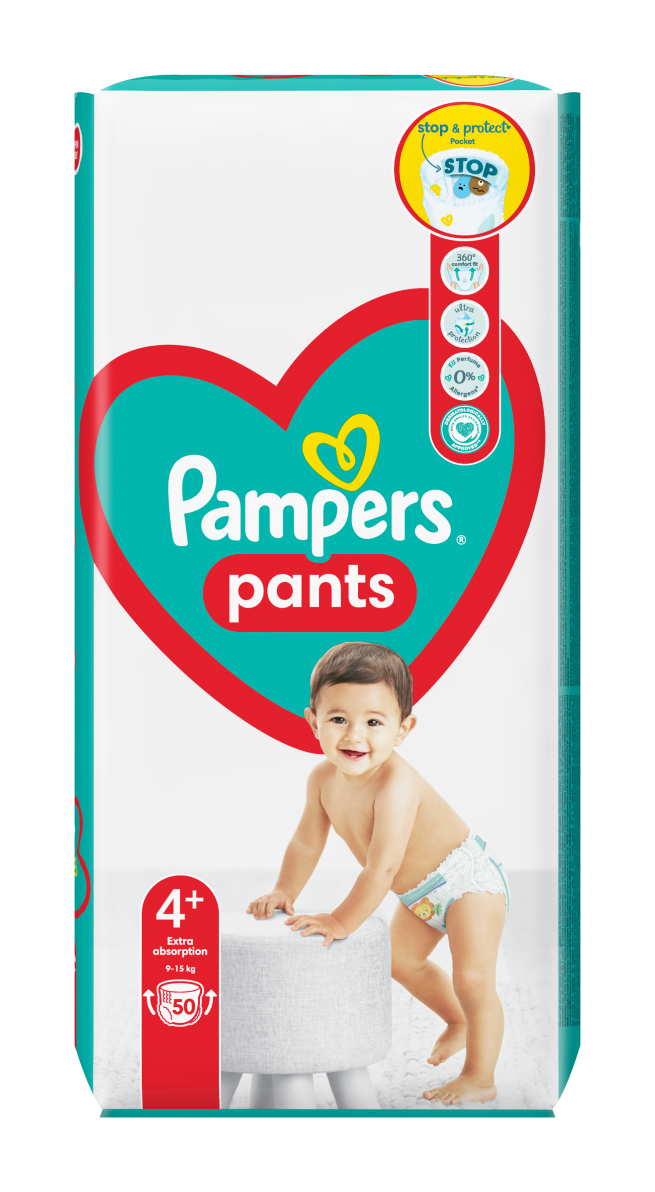 Plenkové kalhotky Pampers Pants s revoluční KAPSOU STOP & PROTECT, která spolu s dokonale padnoucím pružným pasem poskytuje až 12 hodin úplné ochrany proti protečení. Mají také super absorpční jádro, které okamžitě absorbuje tekutinu a dvojité bezpečnostní manžetky, které pomáhají předcházet protečení kolem nožiček. Když začne být vaše děťátko při výměně plenky neposedné, jsou tu plenkové kalhotky Pampers Pants pro snadné přebalování: díky pružnému pasu se oblékají jedním tahem. Svlékají se roztrhnutím na bocích. Pak je stačí srolovat a zajistit páskem pro snadnou likvidaci. Stejně jako pro vás je i pro Pampers prioritou bezpečnost děťátka: Plenkové kalhotky Pampers Pants jsou dermatologicky testované a neobsahují žádné parfémy klasifikované jako alergeny (uvedené ve směrnici EU č. 1223/2009 o kosmetických přípravcích). Jsou schválené dermatology z organizace Skin Health Alliance jako bezpečné v kontaktu s dětskou pokožkou.