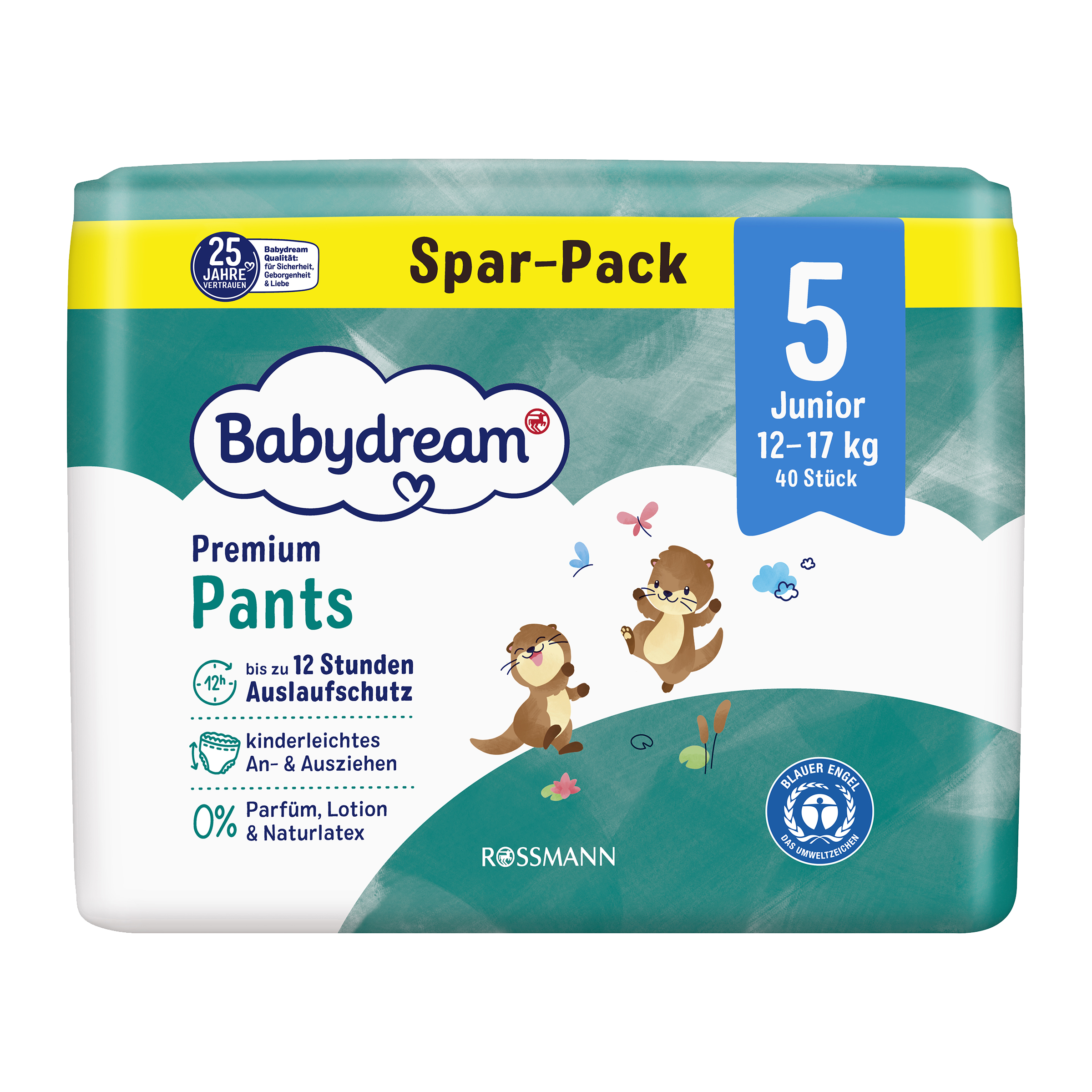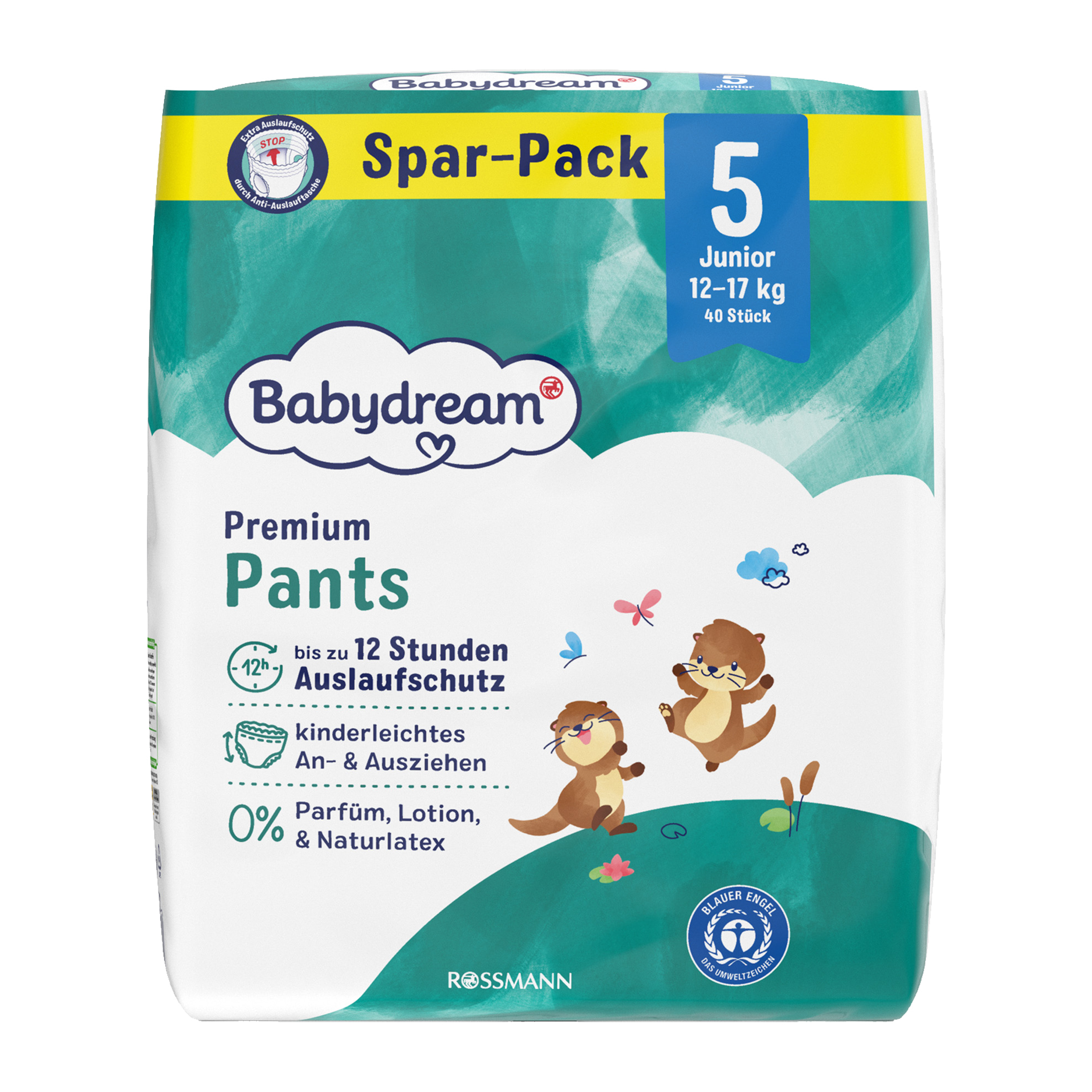 Plenkové kalhotky Premium Junior, 12–17 kg, vel. 5, Jumbo-Pack 40 ks