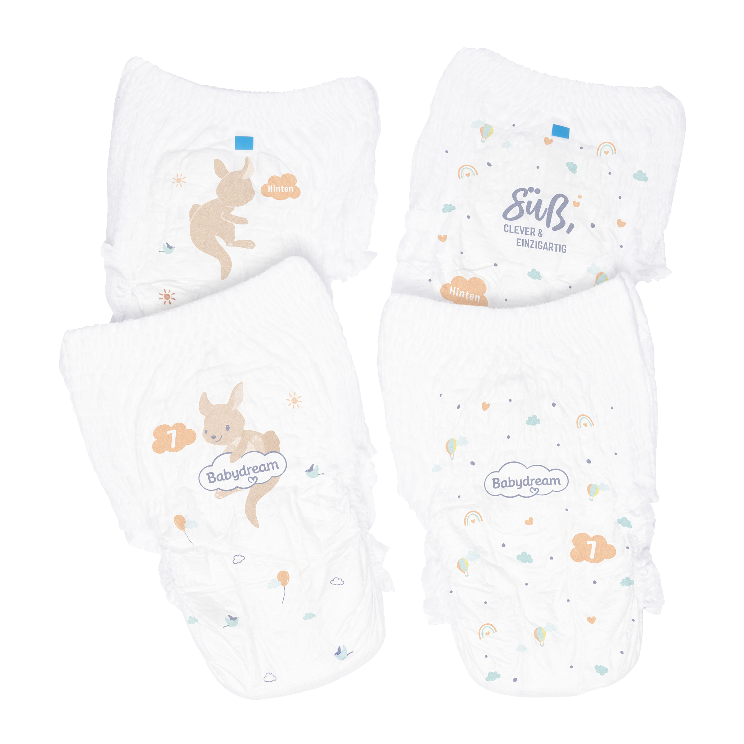 Kalhoty Babydream jsou velmi pohodlné díky všestrannému elastickému pasu a jejich oblékání a svlékání je hračka. Naše kalhoty Babydream navíc vydrží v suchu až 12 hodin a poskytují vašemu dítěti plnou svobodu pohybu při hraní, běhání a objevování.