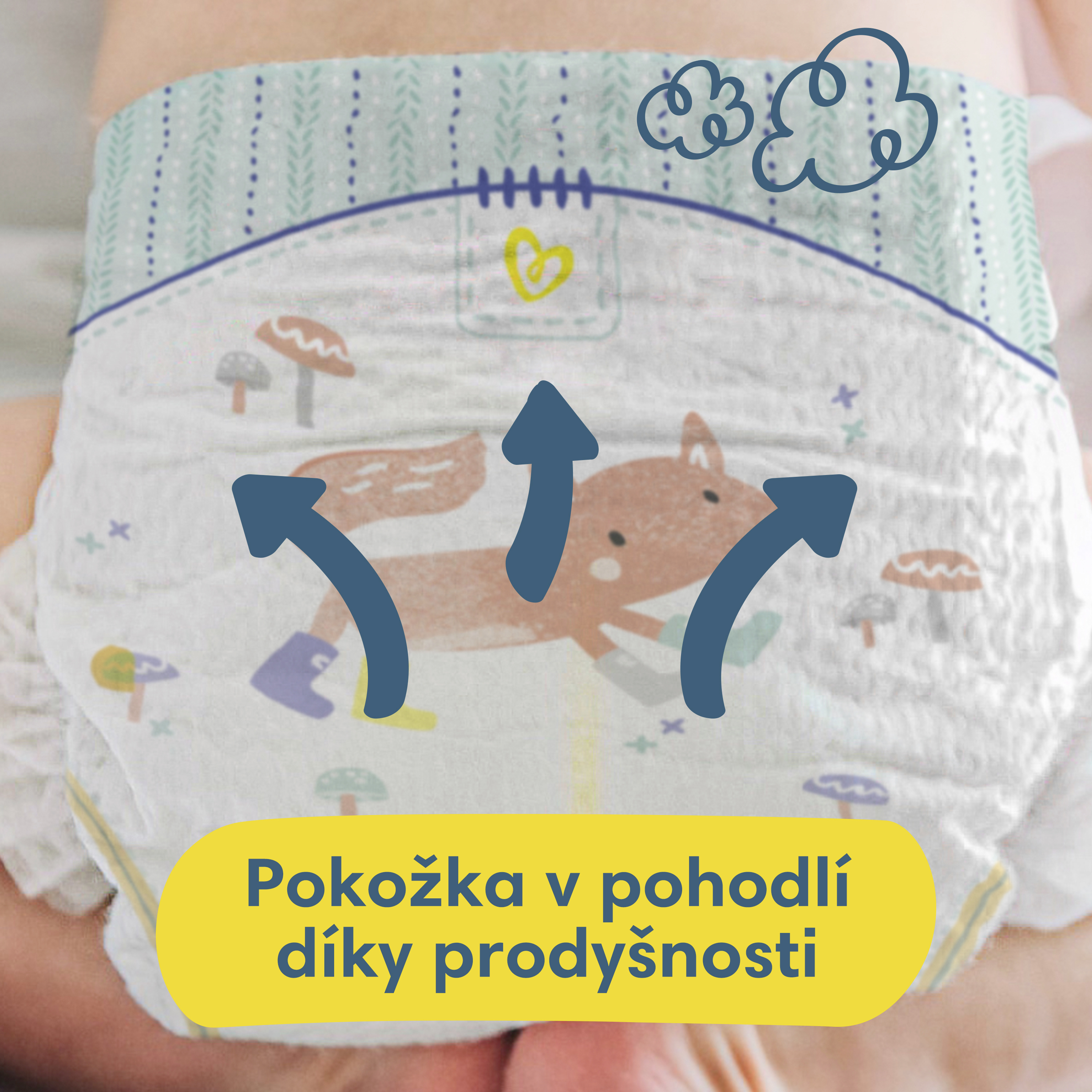 - Pohodlí pro pokožku: Nejhebčí pohodlí od Pampers s MILIONY PRODYŠNÝCH MIKROPÓRŮ, které odvádí vlhkost od pokožky