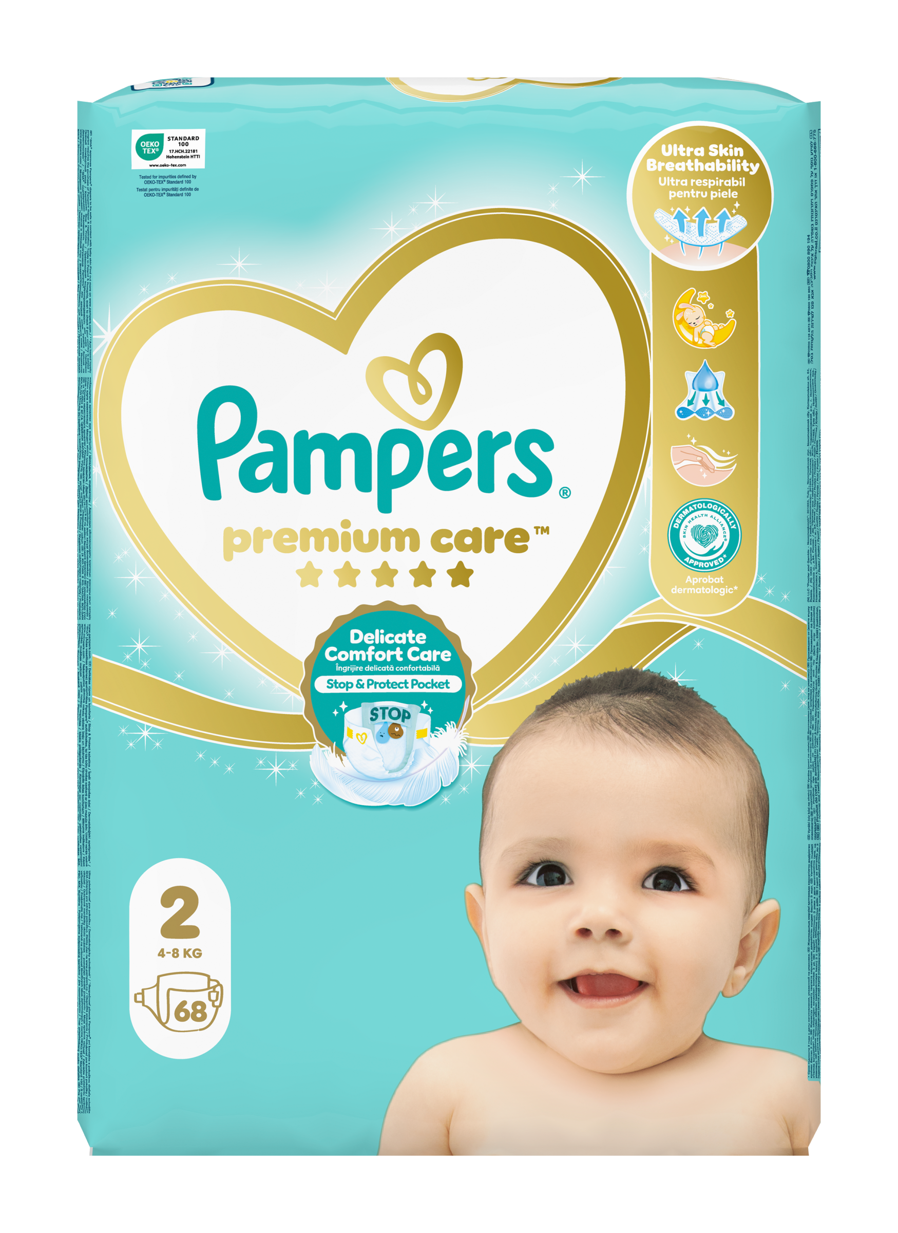 DVOJÍ OCHRANA: pro pokožku a před protečením. Nejlepší pohodlí a ochrana pro citlivou pokožku od Pampers – testováno a schváleno miminky. Plenky č. 1 od Pampers navržené speciálně pro citlivou pokožku novorozenců. A jsou také jedničkou Pampers v ochraně před protečením. Plenky Pampers Premium Care poskytují nejlepší ochranu od Pampers díky 1) OKAMŽITÉ ABSORPCI – více než 1 000 absorpčních mikropórů okamžitě odvádí vlhkost a nečistoty od pokožky a udržuje ji suchou a chráněnou. 2) JEDINEČNÉ KAPSE STOP & PROTECT, která brání protečení nečistot vzadu. 3) NADÝCHANÝM ULTRA HEBKÝM MATERIÁLŮM, které šetrně zabalí pokožku vašeho děťátka do pohodlí a poskytnou jí ochranu. a 4) jedinečnému pasu COMFORT FIT s pružným upevňovacím systémem od Pampers a s tvarem přizpůsobeným pupíku děťátka. Pampers Premium Care jsou pro pokožku vašeho děťátka 100% bezpečné: jsou dermatologicky testované a schválené dermatology z organizace Skin Health Alliance. Není divu, že je miminka schvalují.