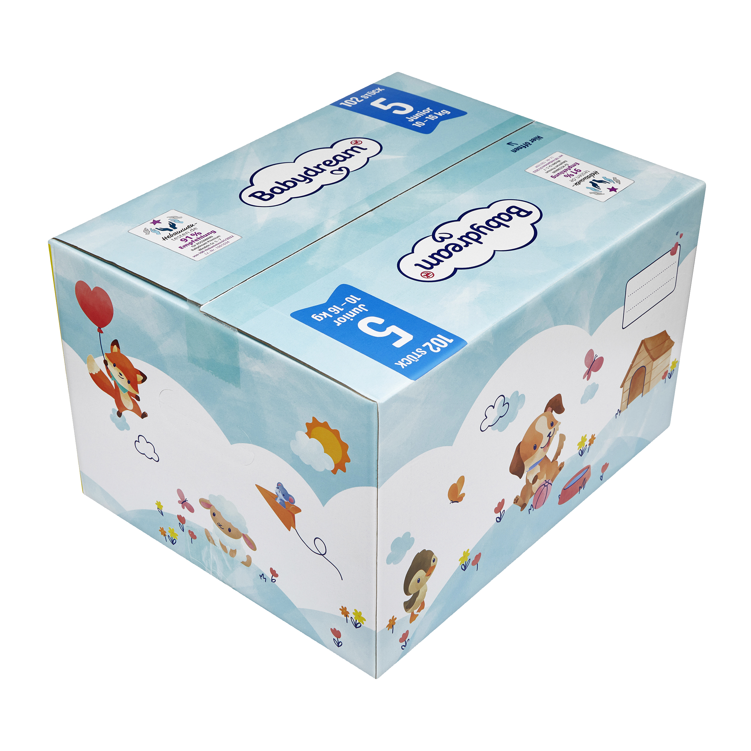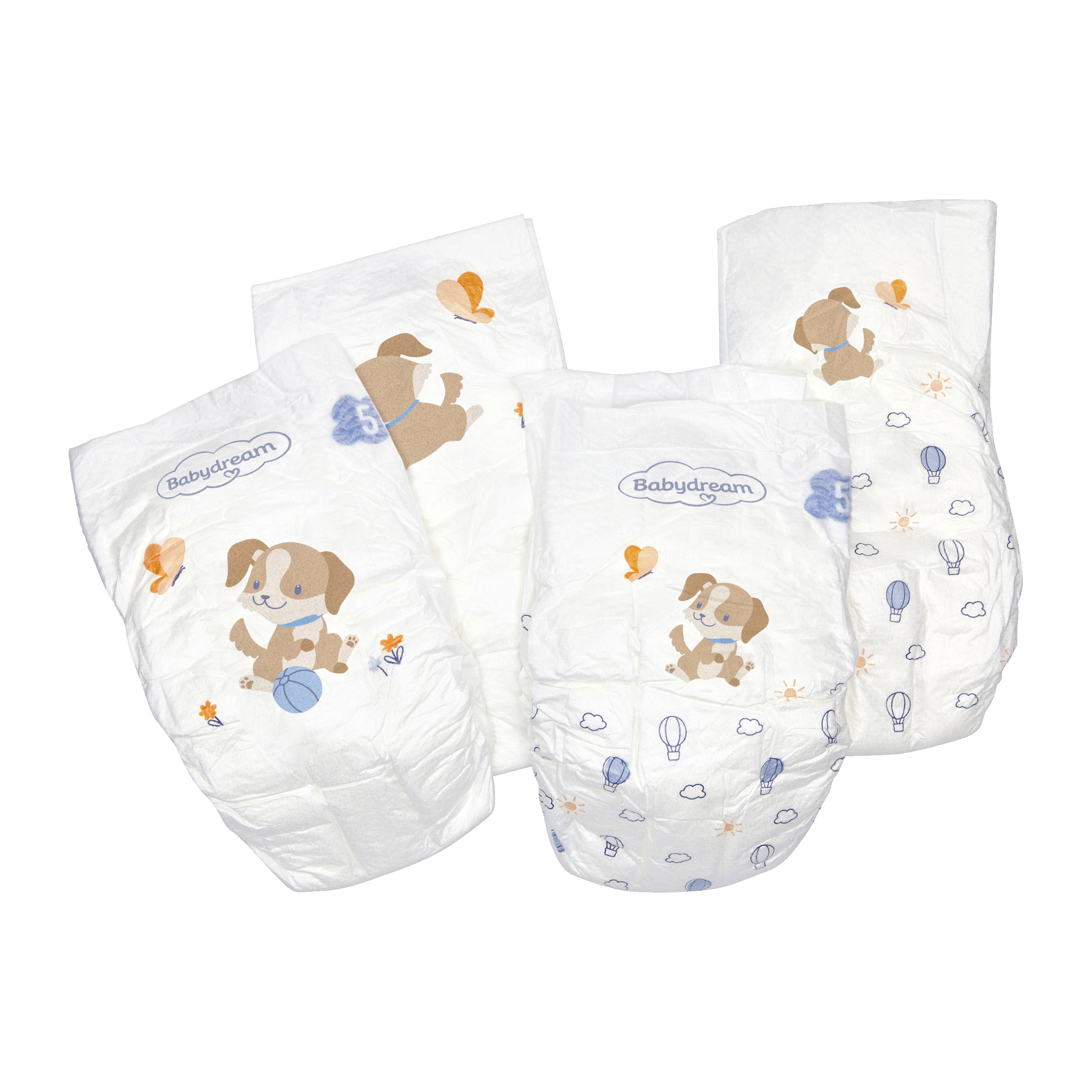 Sametově hebké prémiové plenky Babydream poskytují optimální ochranu citlivé dětské pokožce. Zůstávají suché až 12 hodin a extra rychle absorbují vlhkost. Optimální střih nabízí dostatek volnosti pohybu a pohodlí, takže vaše dítě může bezstarostně objevovat svět a v noci klidně spát.
