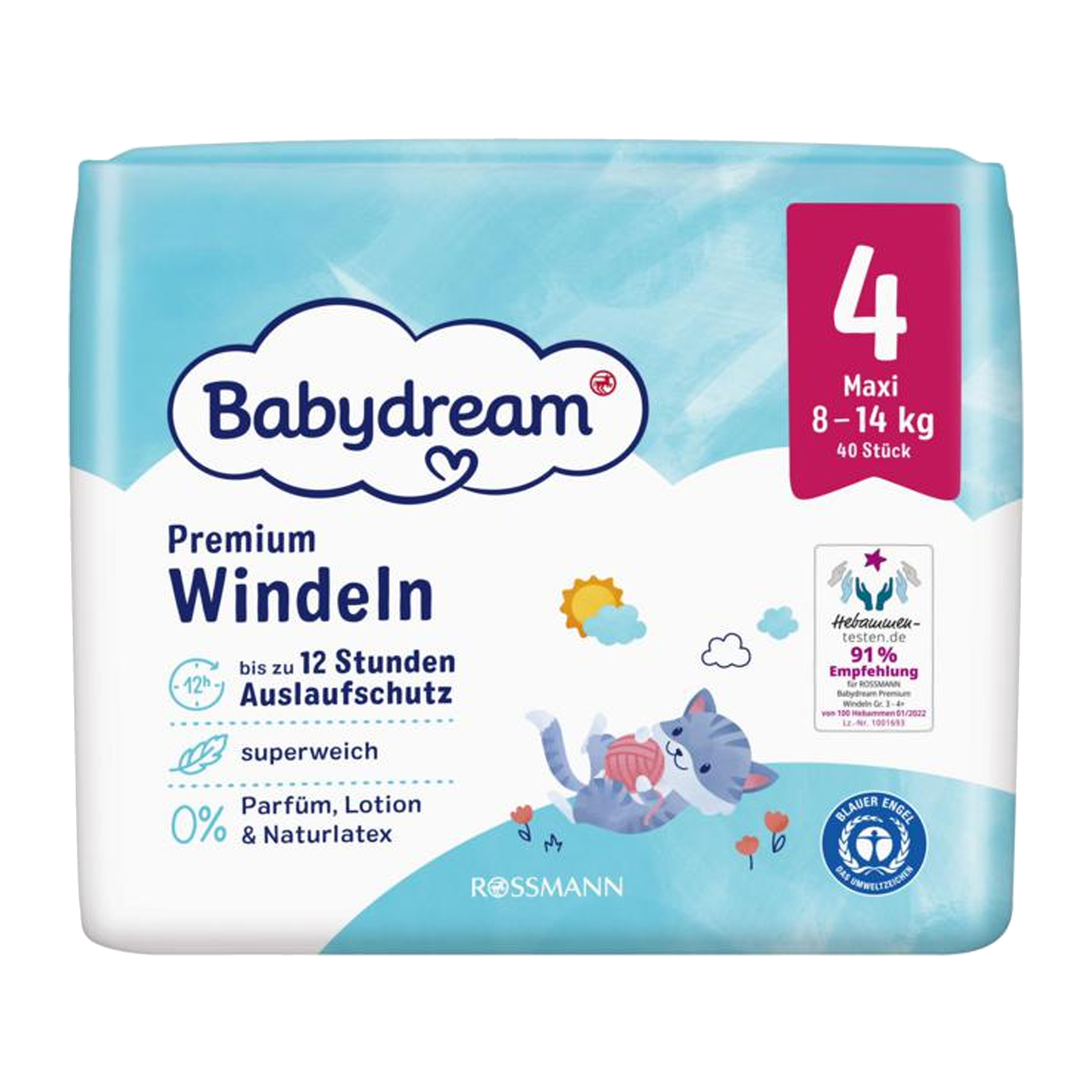 Sametově hebké jednorázové plenky Babydream Premium Maxi pro děti od 8 do 14 kg poskytují optimální ochranu citlivé pokožky vašeho dítěte. Zůstávají suché až 12 hodin a mimořádně rychle absorbují tekutinu.