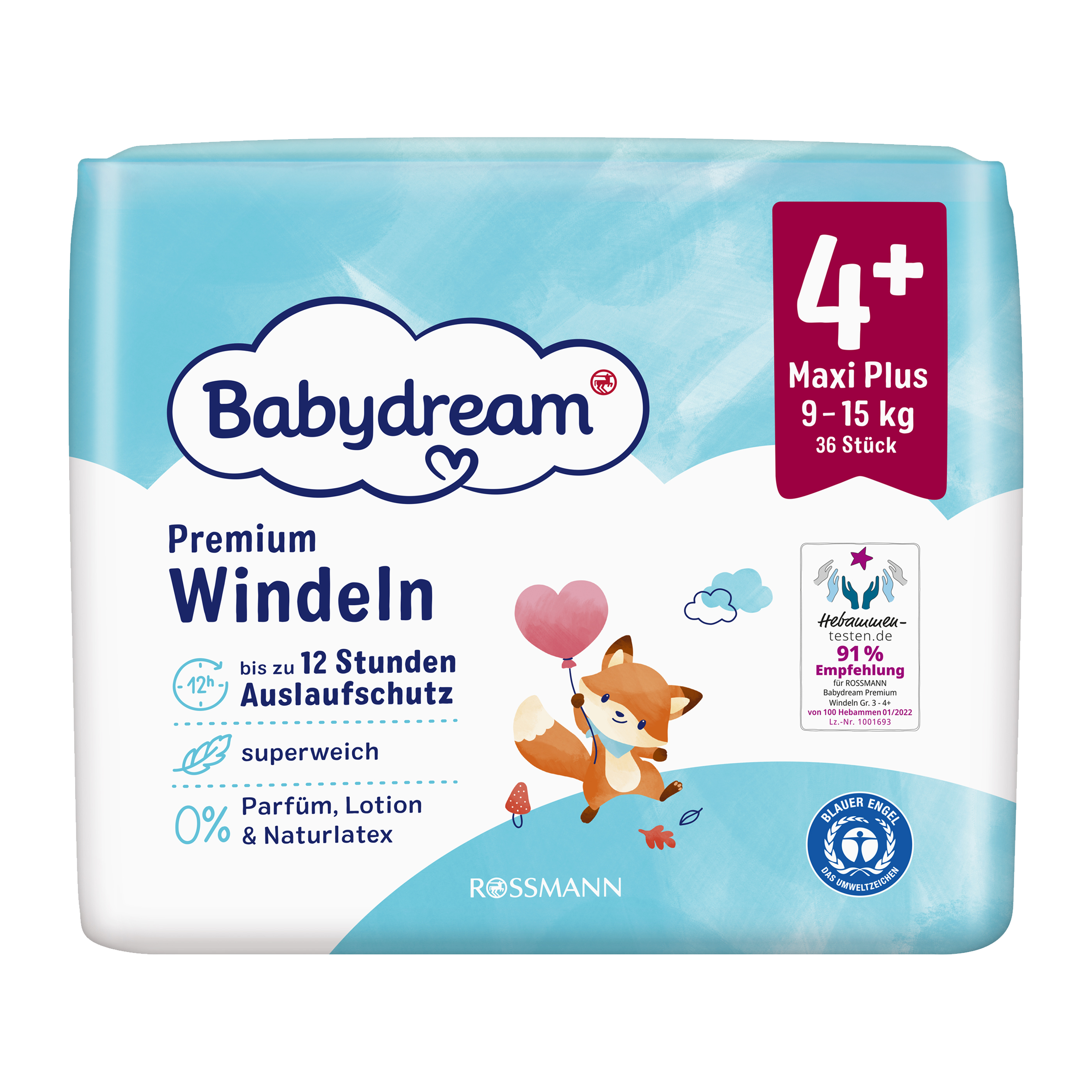 Sametově hebké jednorázové plenky Babydream Premium Maxi+ pro děti od 9 do 15 kg poskytují optimální ochranu citlivé pokožky vašeho dítěte. Zůstávají suché až 12 hodin a mimořádně rychle absorbují tekutinu.