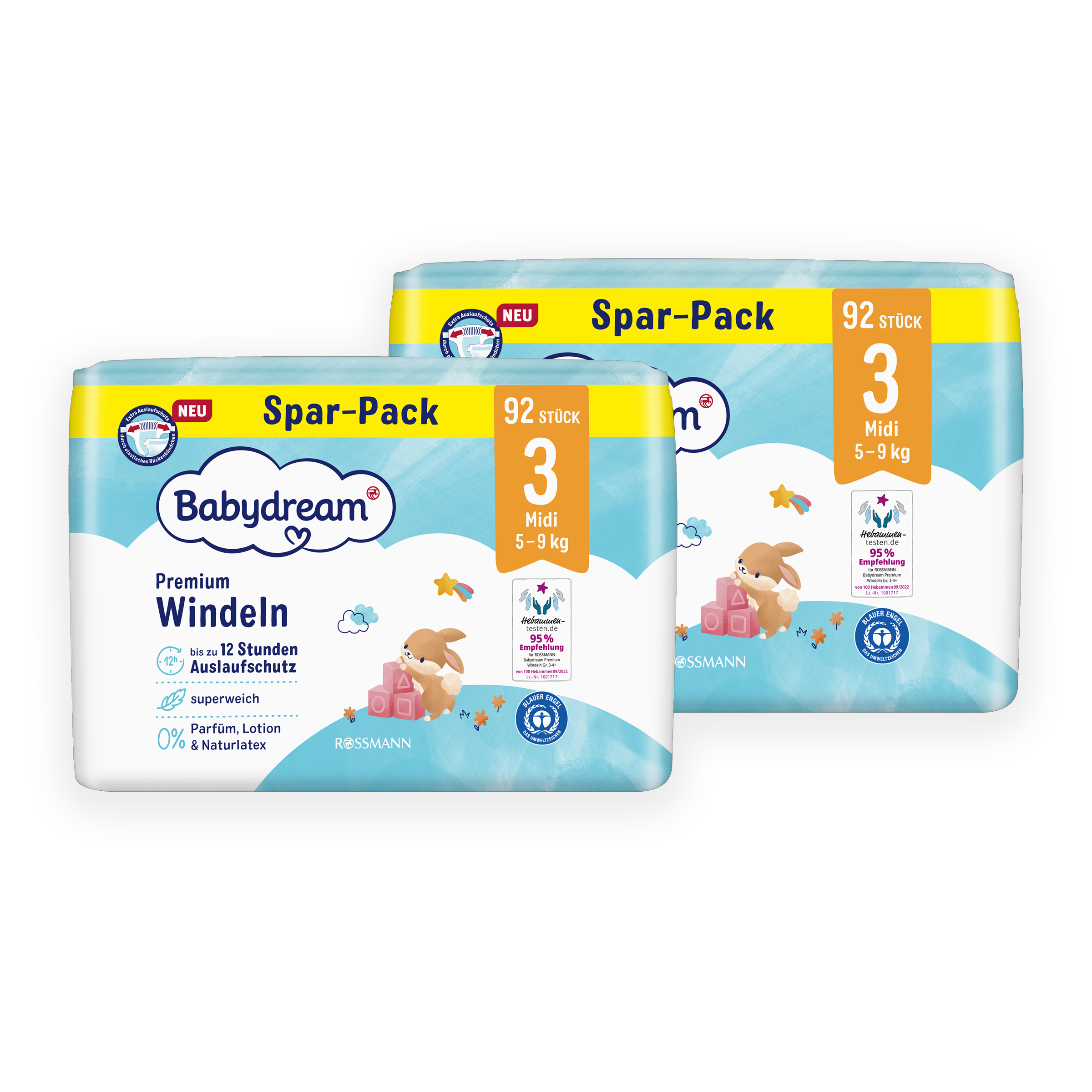 Sametově hebké jednorázové plenky Babydream Premium Midi pro děti od 5 do 9 kg poskytují optimální ochranu citlivé pokožky vašeho dítěte. Zůstávají suché až 12 hodin a mimořádně rychle absorbují tekutinu.