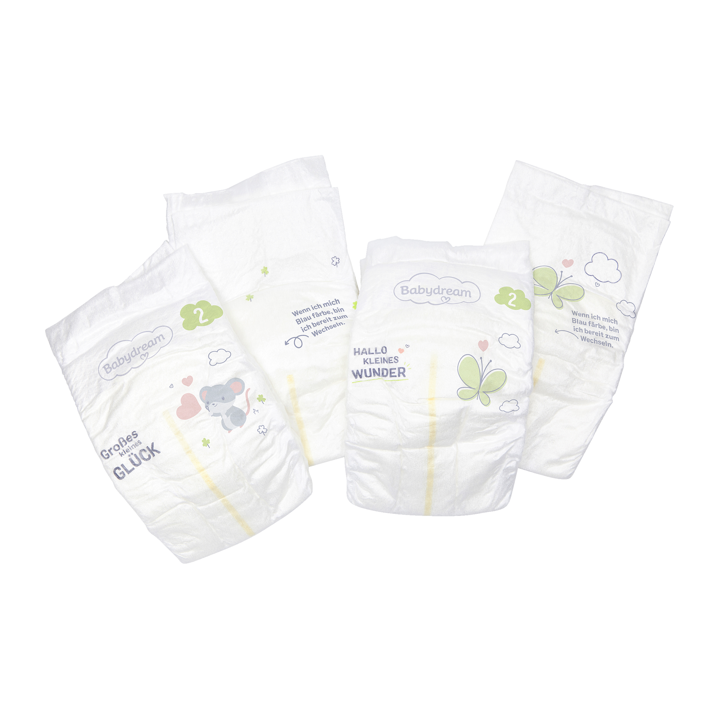 Sametově hebké jednorázové plenky Babydream Premium Mini pro děti od 3 do 6 kg poskytují optimální ochranu citlivé pokožky vašeho dítěte. Zůstávají suché až 12 hodin a mimořádně rychle absorbují tekutinu. Praktický indikátor vlhkosti vás upozorní na potřebu výměny plenky změnou barvy – zbarví se modře, když je třeba plenku vyměnit.