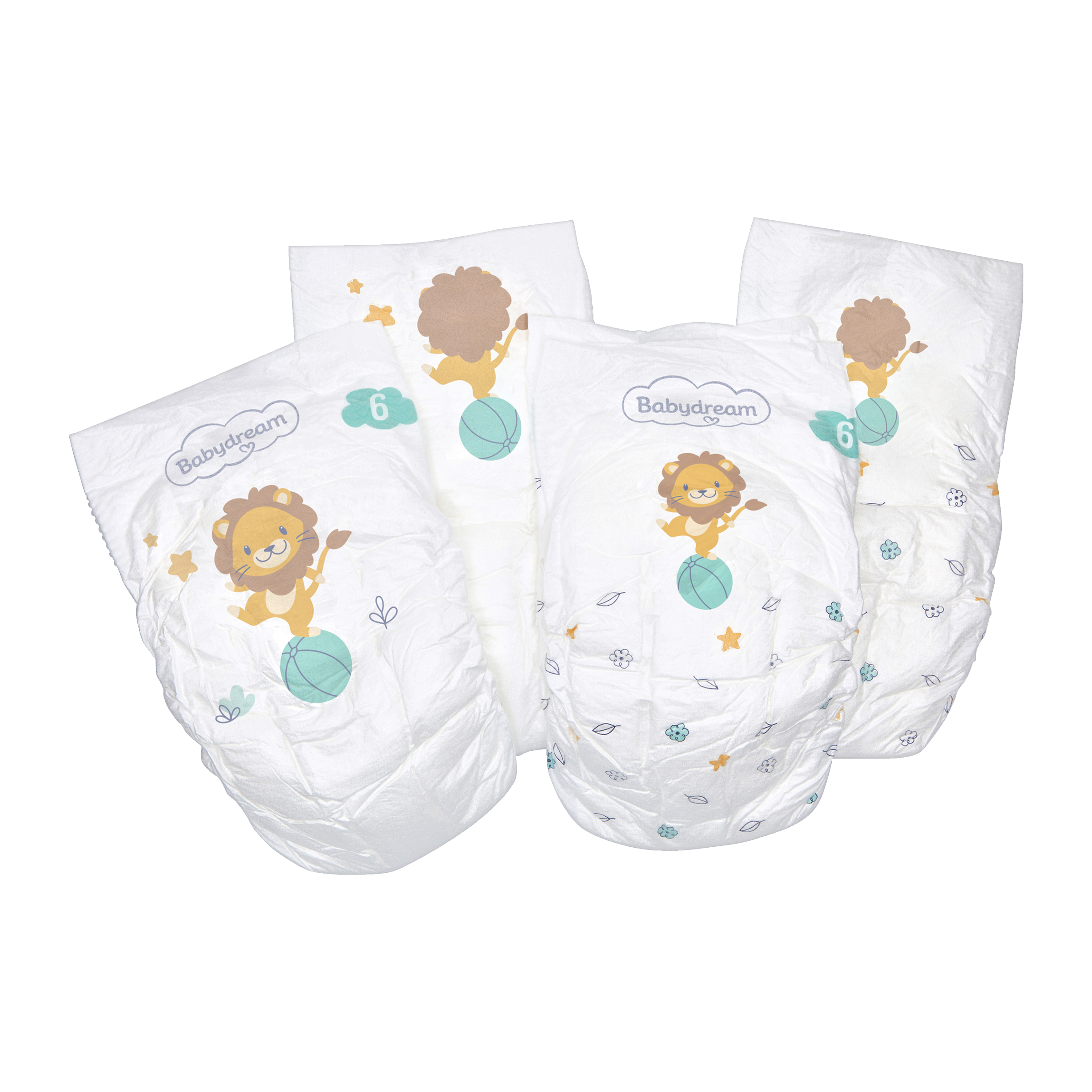 Sametově hebké jednorázové plenky Babydream Premium XL pro děti od 14 do 20 kg poskytují optimální ochranu citlivé pokožky vašeho dítěte. Zůstávají suché až 12 hodin a mimořádně rychle absorbují tekutinu. Praktický indikátor vlhkosti vás upozorní na potřebu výměny plenky změnou barvy – zbarví se modře, když je třeba plenku vyměnit.