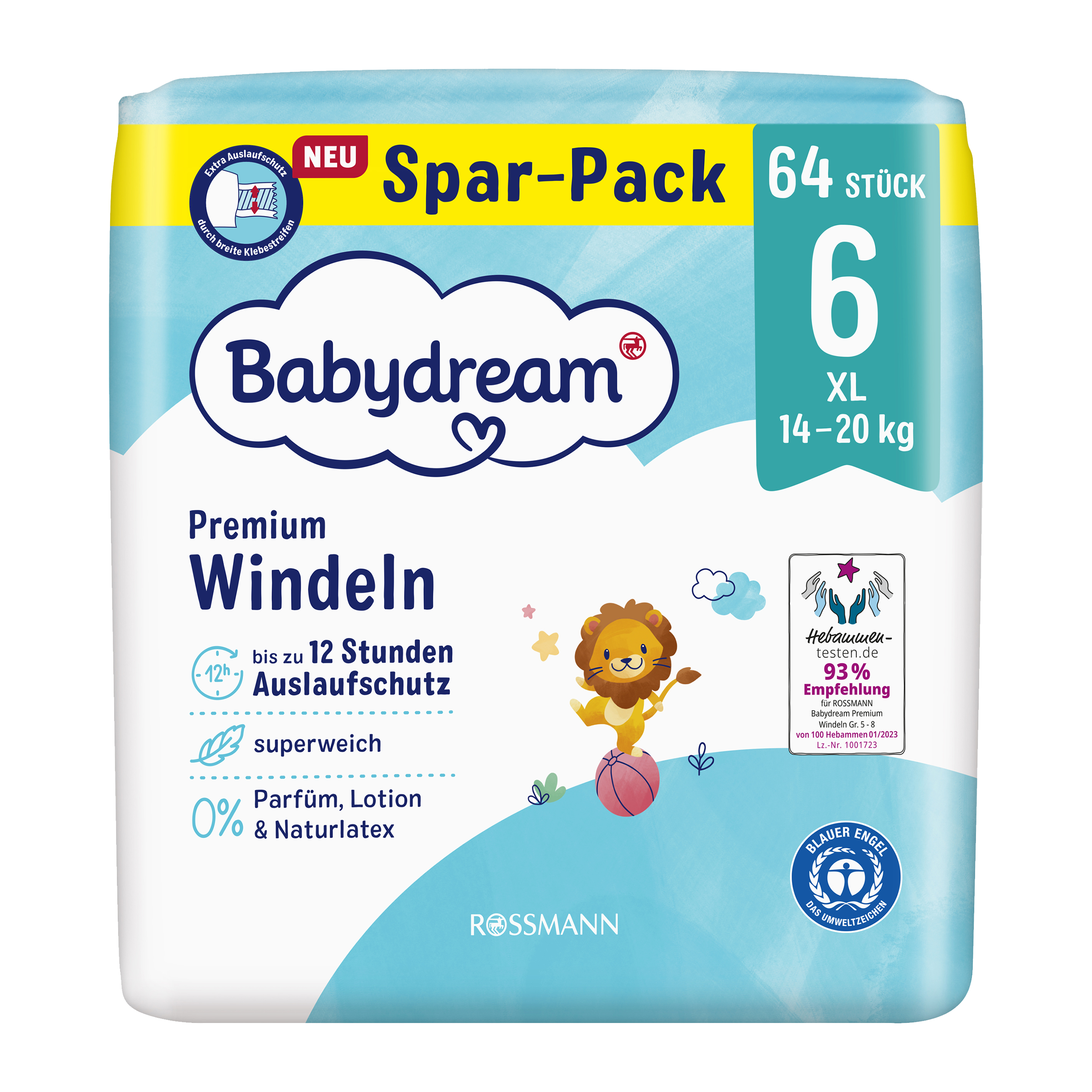 Sametově hebké jednorázové plenky Babydream Premium XL pro děti od 14 do 20 kg poskytují optimální ochranu citlivé pokožky vašeho dítěte. Zůstávají suché až 12 hodin a mimořádně rychle absorbují tekutinu. Praktický indikátor vlhkosti vás upozorní na potřebu výměny plenky změnou barvy – zbarví se modře, když je třeba plenku vyměnit.