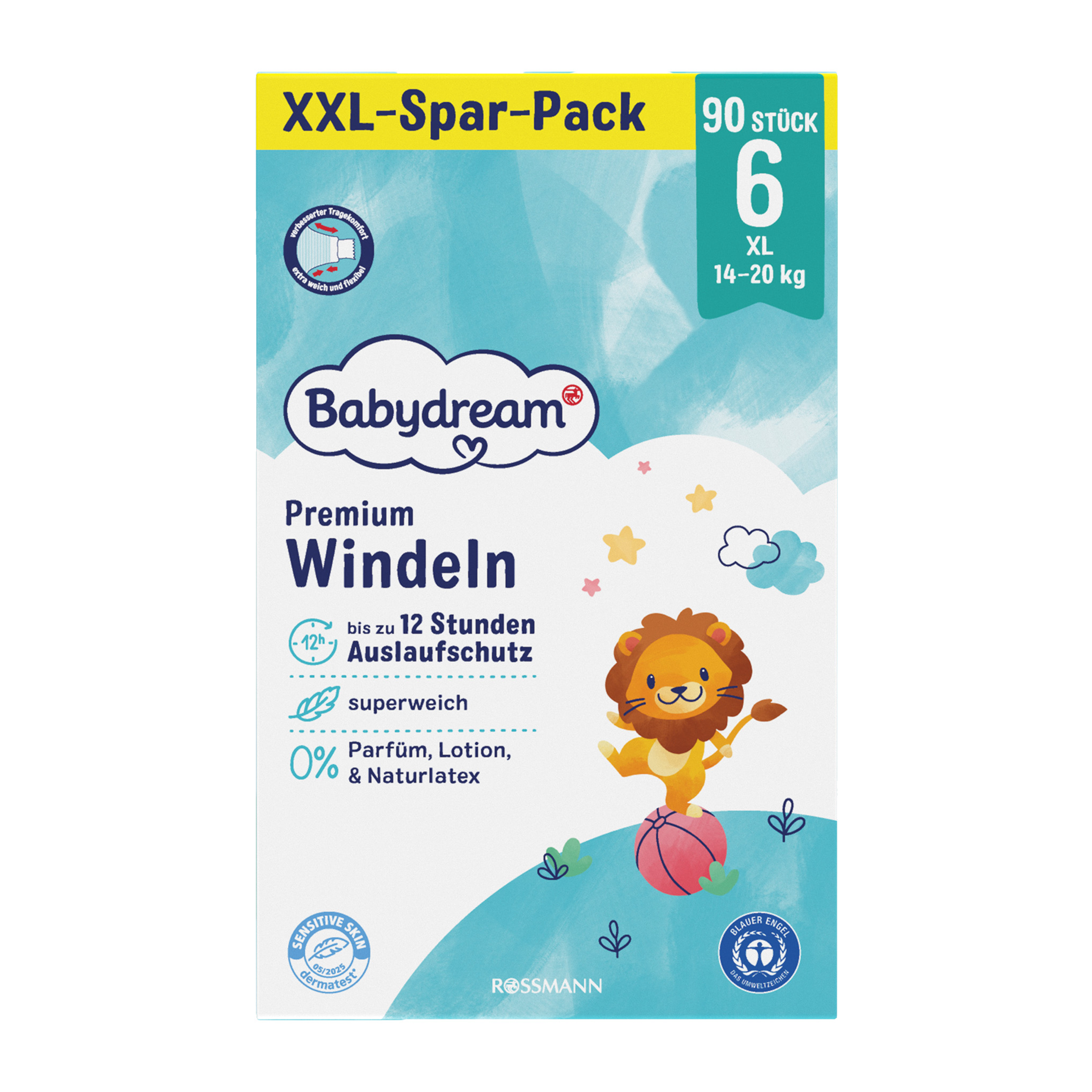 Sametově hebké jednorázové plenky Babydream Premium XL pro děti od 14 do 20 kg poskytují optimální ochranu citlivé pokožky vašeho dítěte. Zůstávají suché až 12 hodin a mimořádně rychle absorbují tekutinu.