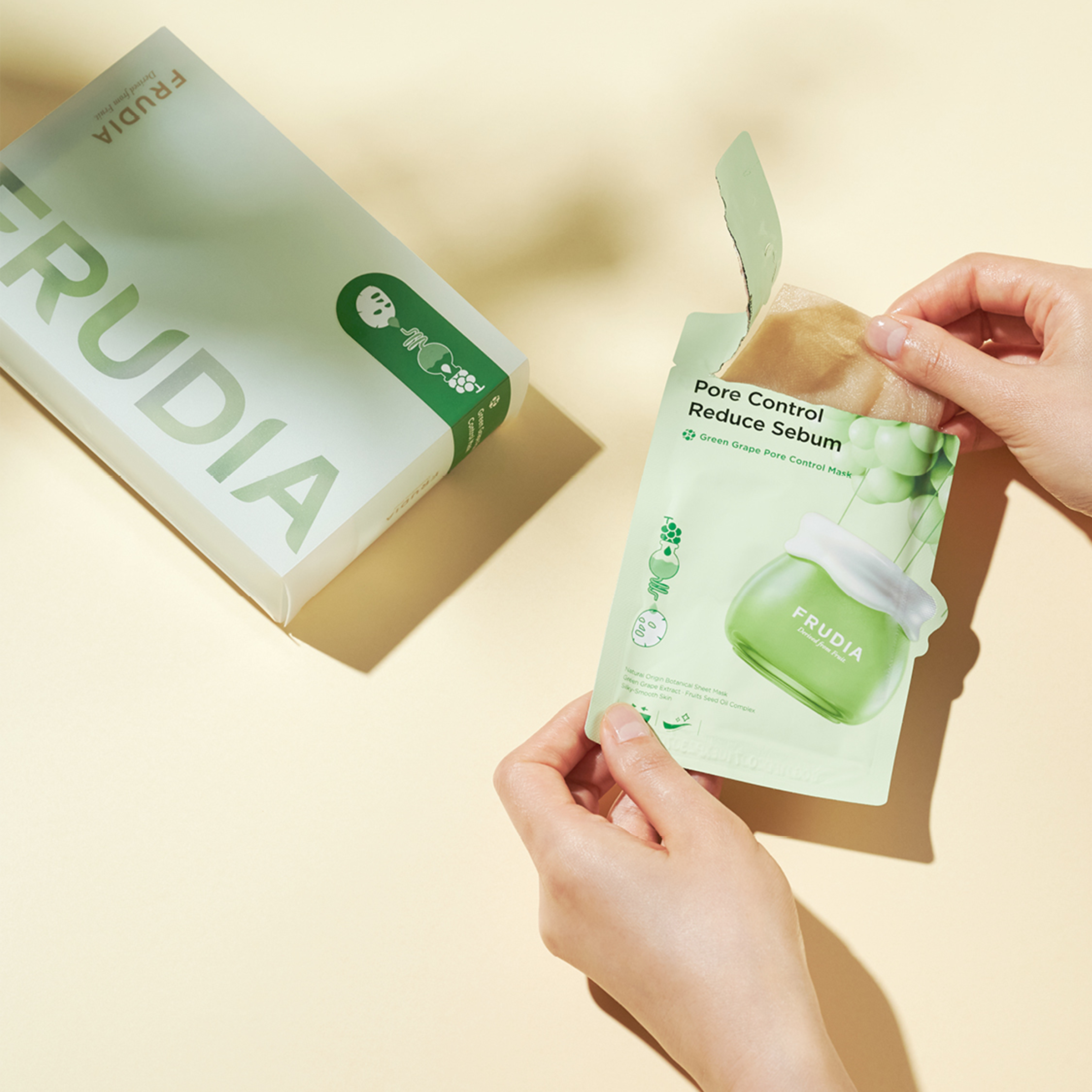 Osvěžující maska pro péči o póry, která zjemňuje texturu pleti. Tato maska na kontrolu pórů je vyrobena z přírodního vlákna získaného z rostlin, které zajišťuje vynikající přilnavost a umožňuje snadné pronikání aktivních složek. Obsahuje 60% extrakt ze zelených hroznů, obohacený taninem. Pomáhá zachovat dokonalou rovnováhu oleje a vody pro viditelně hladší a zdravěji vypadající pokožku.
