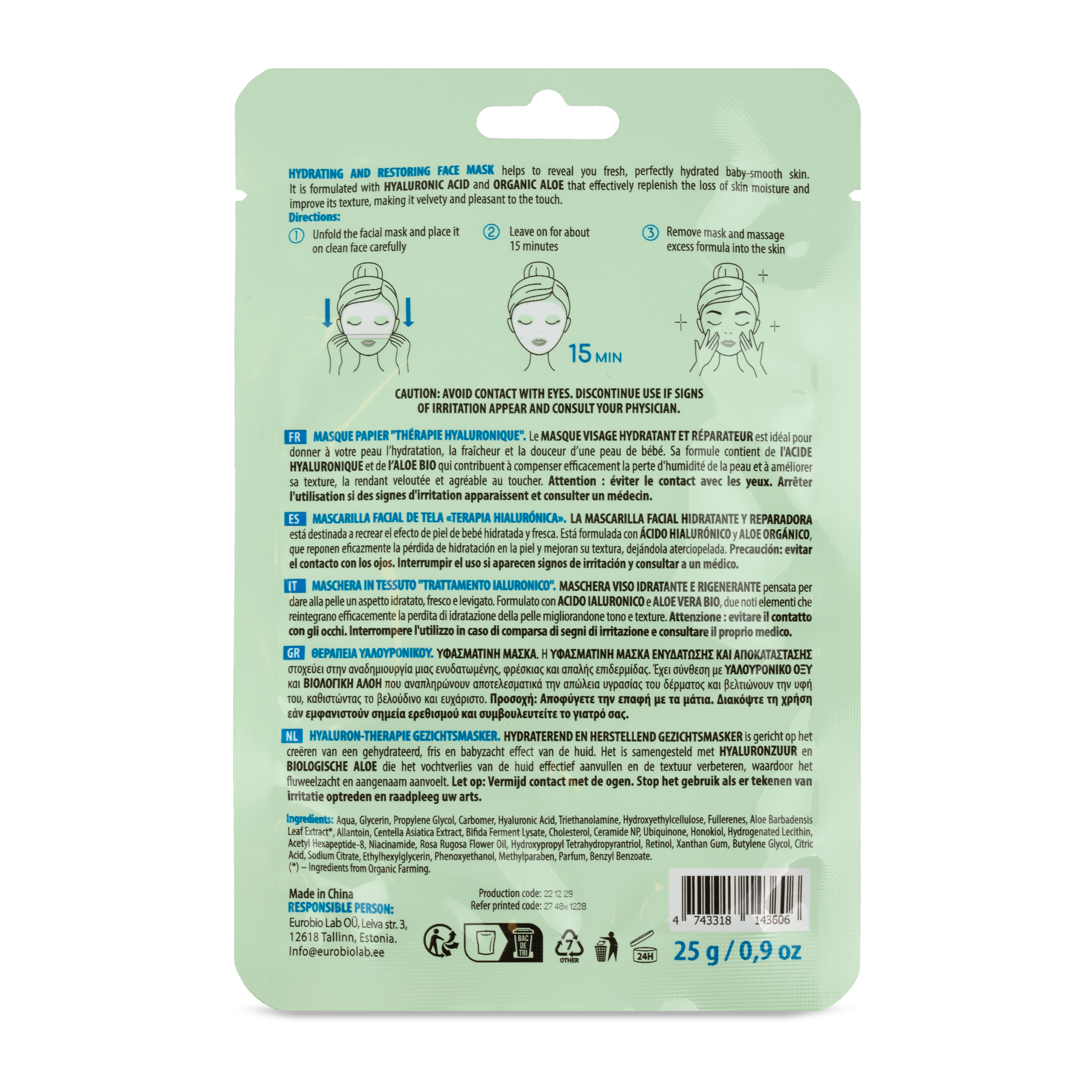 1. Plátýnkovou masku rozložte a opatrně ji přiložte na čistý obličej.