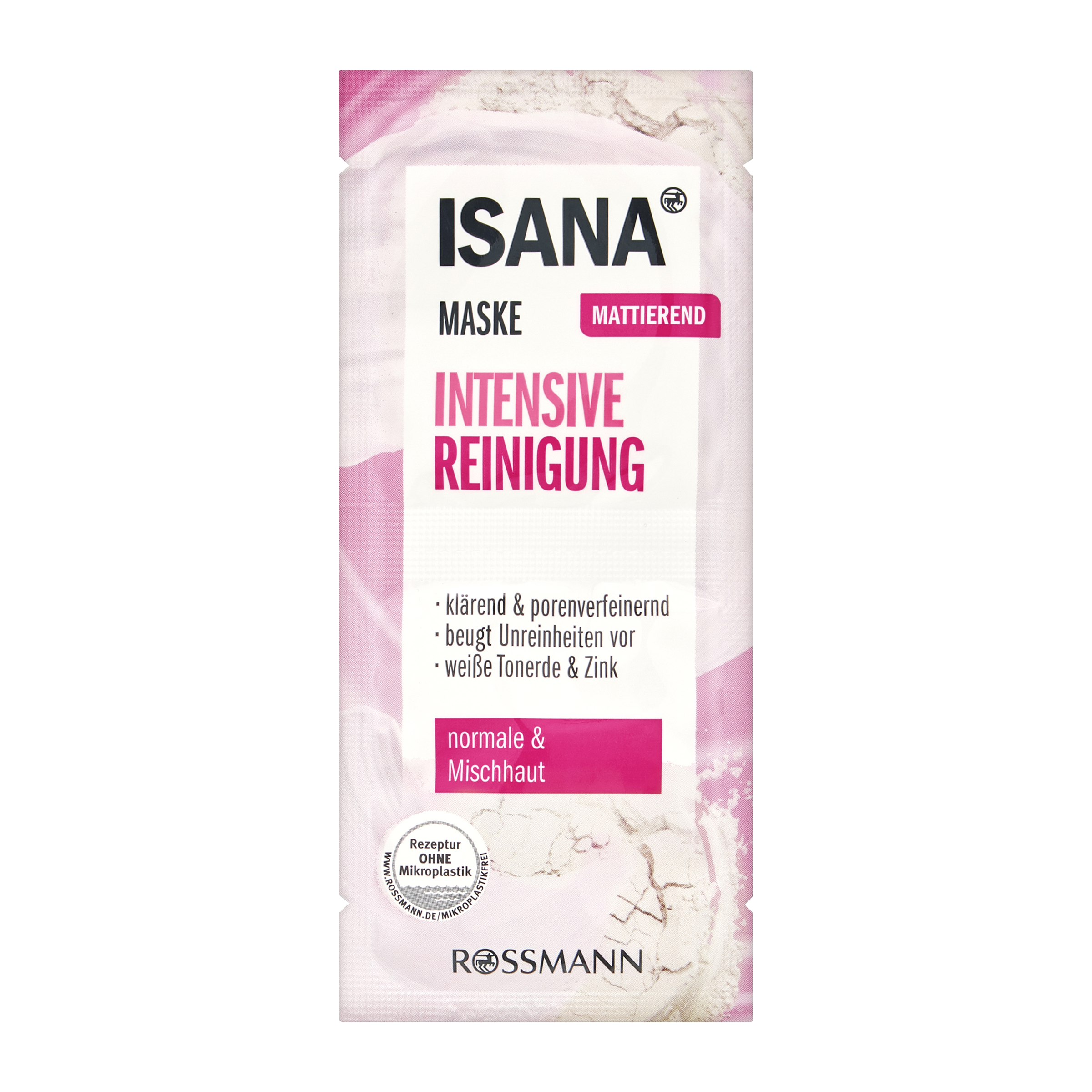 Pleťová maska s bílým jílem bohatým na minerály čistí přebytečný kožní maz a zmatňuje pleť. Přírodní peelingová tělíska zároveň odstraňují odumřelé kožní buňky. Póry jsou viditelně zjemněny a zabraňuje se nečistotám pleti. Zinek může působit proti podráždění pokožky. Minerální komplex hořčíku, mědi a zinku revitalizuje pokožku. Extrakt z řas dodává pokožce svěží a dobře upravený pocit.