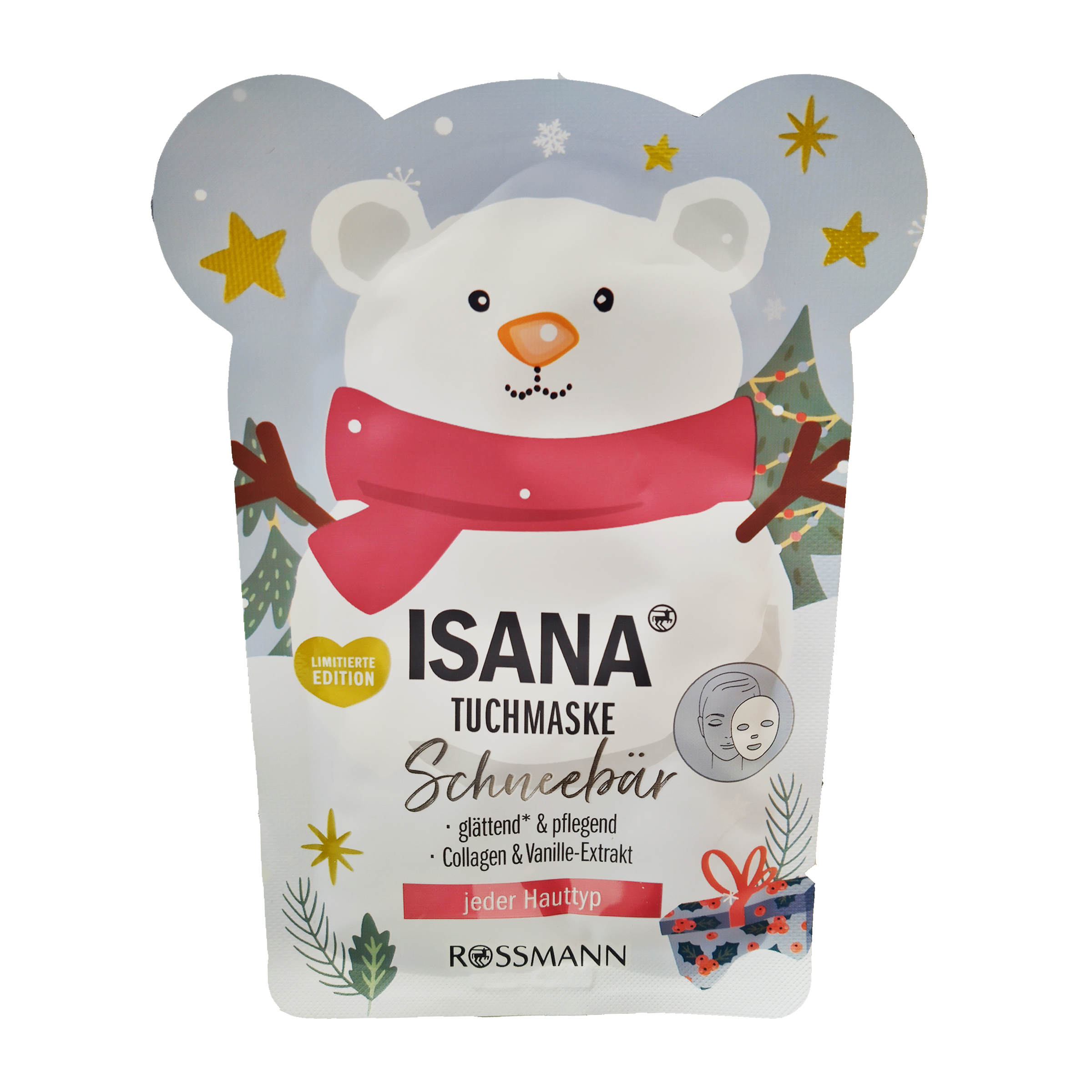 Kouzelný zimní čas! Obličejová maska ISANA FACE MASK SNOW BEAR s barevným potiskem okamžitě zkrášluje vzhled pleti a dodává jí pohodu!