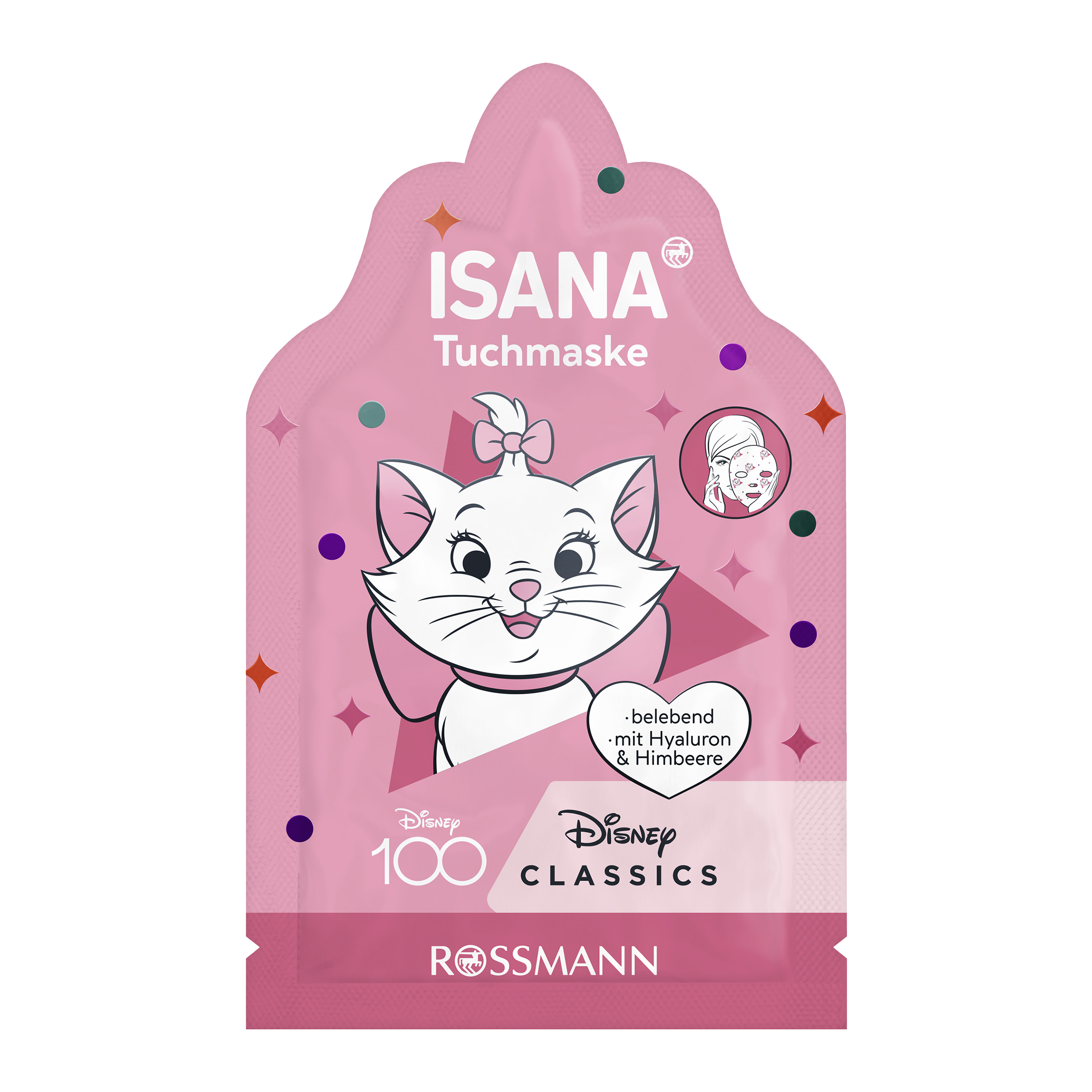 Malá Marie zažívá se svými sourozenci a maminkou vzrušující dobrodružství. Jak se však na kočičí dámu sluší a patří, péči nesmí nikdy zanedbat. Dopřejte si chvilku volna pro malou péči: ISANA pleťová maska poskytuje potřebnou relaxaci a okouzlující záři! Čistá kyselina hyaluronová, rostlinný glycerin a panthenol okamžitě oživí unavenou pleť. Linie suchosti jsou redukovány, navíc veganská zářivá receptura s výtažkem z manga a malin zanechává pleť jemnou a zářivou. Materiál látky je vyroben ze 100% rostlinných vláken, která zajišťují, že se účinné látky optimálně vstřebávají do pokožky.