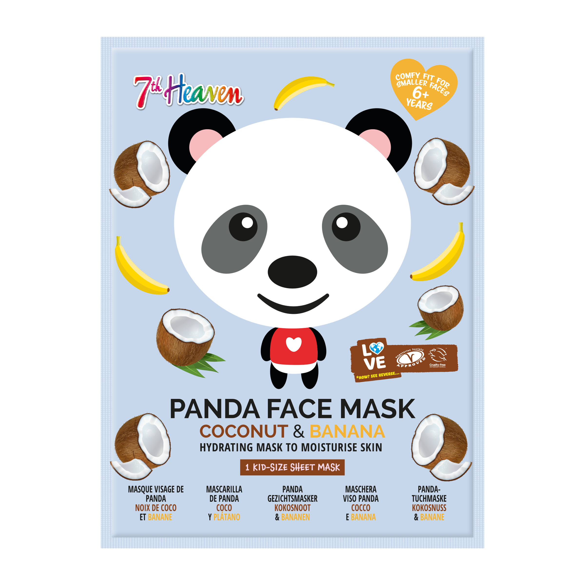Dětská pleťová maska na ubrousku s tváří pandy. S obsahem kokosu a banánu. Zklidňuje, vyživuje a hydratuje pokožku.