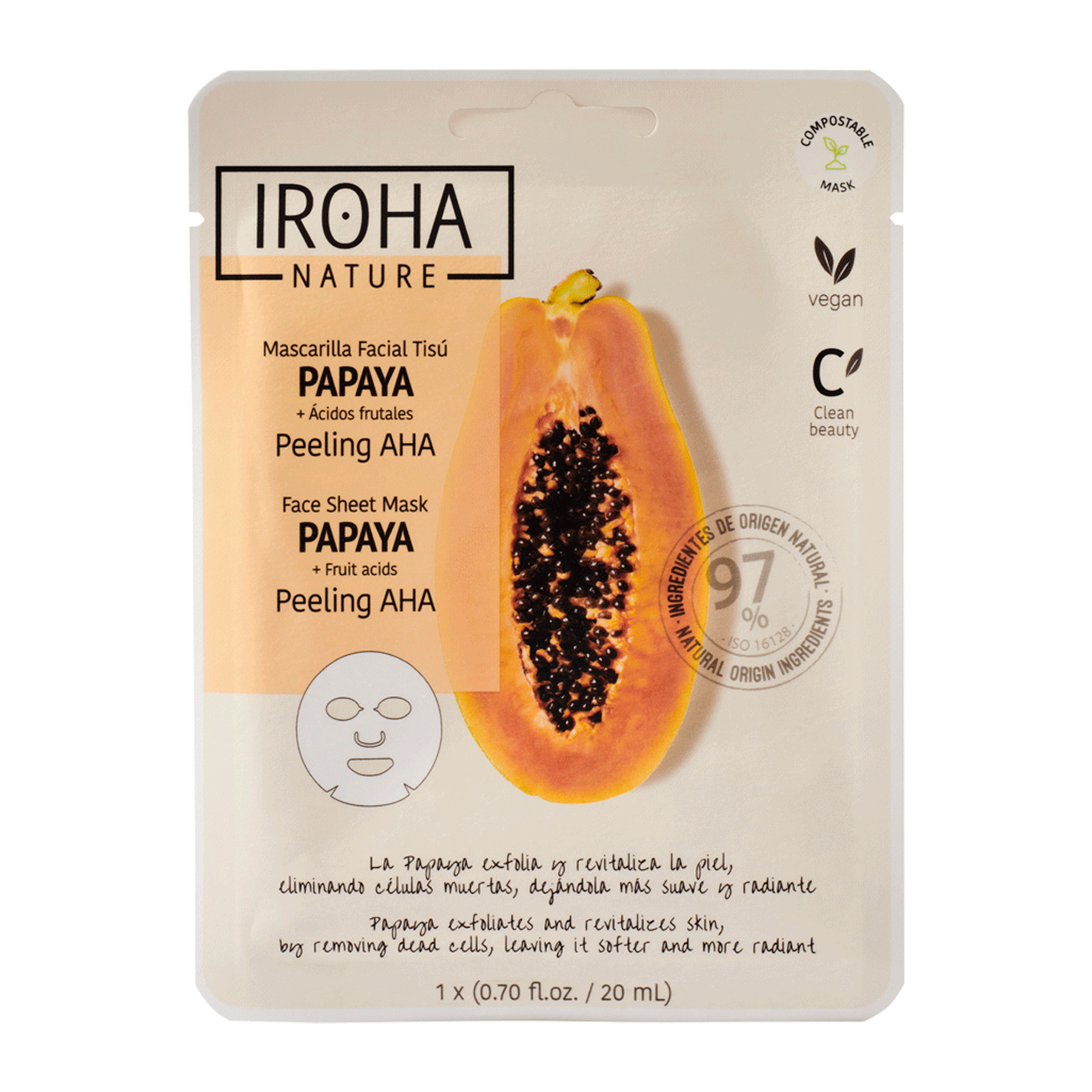 Má rozjasňující a vyhlazující účinek díky kombinaci exfoliačních a rozjasňujících aktivních složek, jako je papája a ovocné kyseliny. AHA, známé jako ovocné kyseliny, se používají především jako exfoliační kúra k obnově pleti a zachování její krásy. Mají také sjednocující účinek, obnovují zářivost pleti, nechávají zmizet skvrny a vyhlazují nedokonalosti. Papájové enzymy jsou skvělým peelingem, který podporuje odstraňování odumřelých kožních buněk, čistí ucpané póry, odstraňuje skvrny a stimuluje proces vyhlazování tím, že zlepšuje strukturu a pružnost pokožky, obnovuje její hladkost a sjednocuje tón a jas. Navíc připravuje pleť pro použití séra a krému.