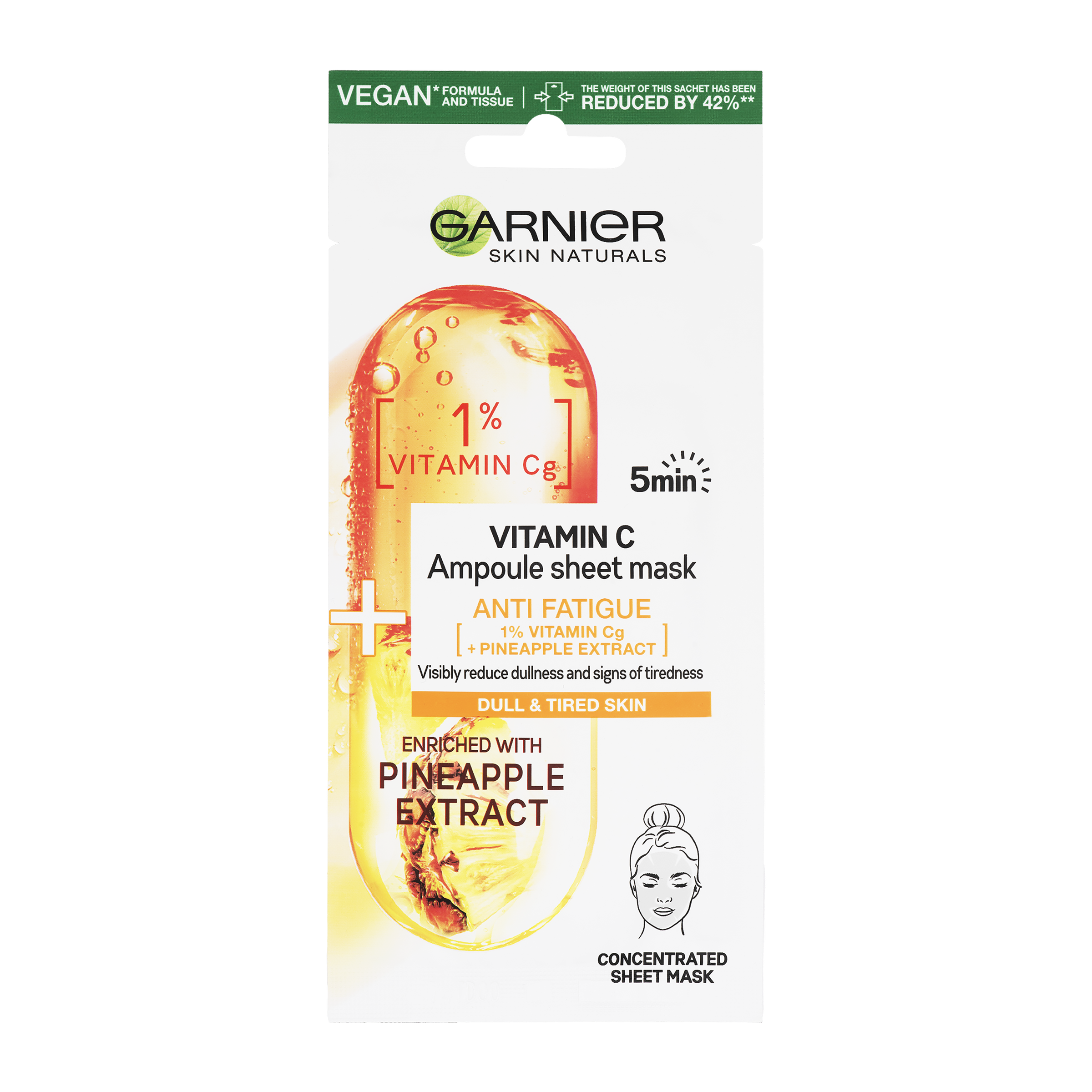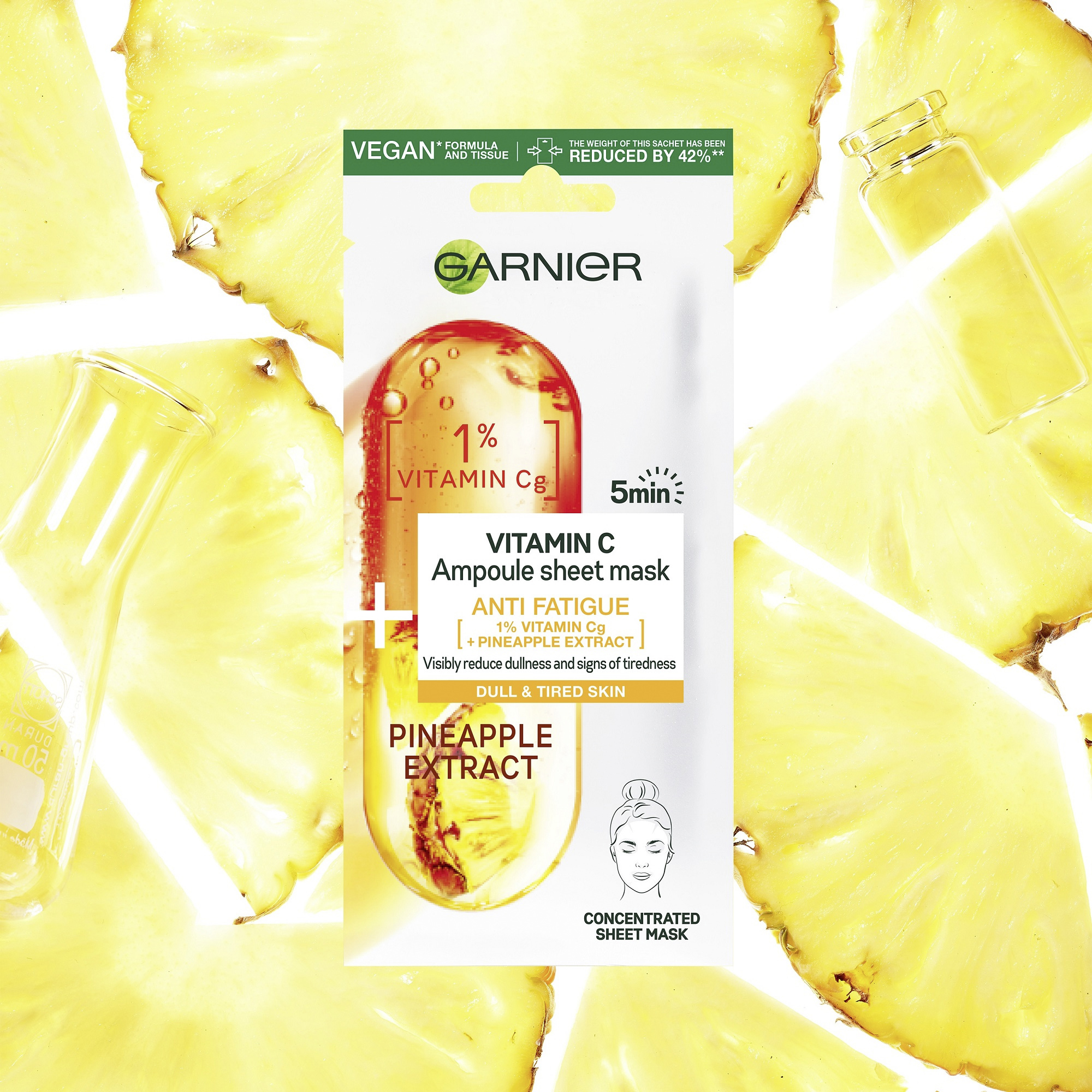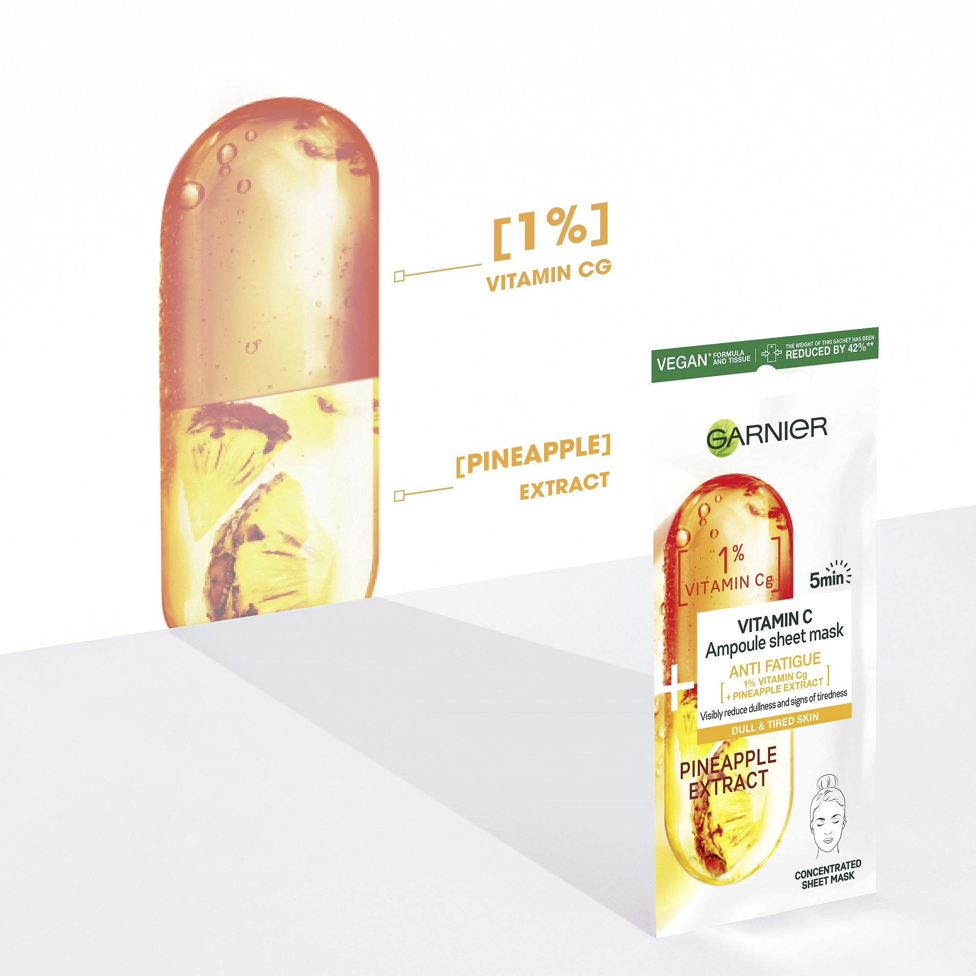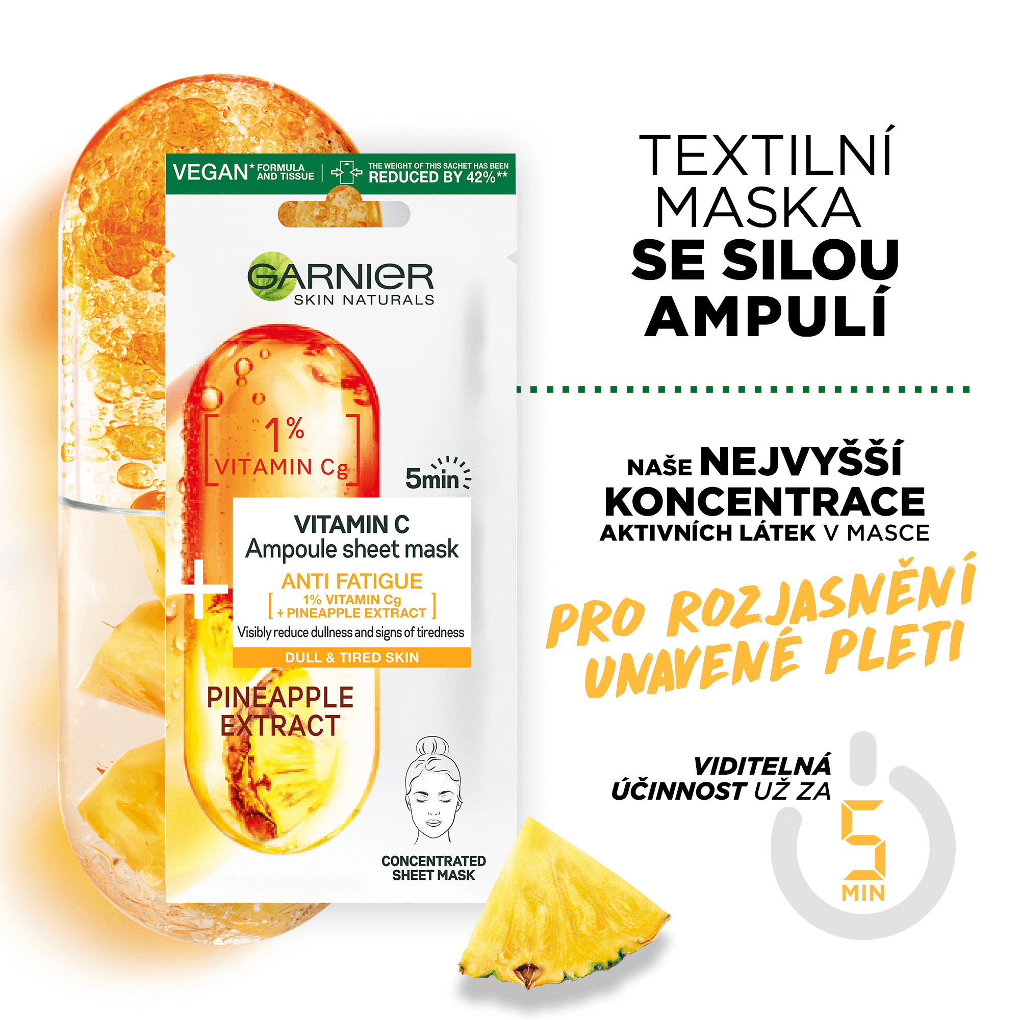 Síla ampulí v textilní masce s vitamínem C a extraktem z ananasu.