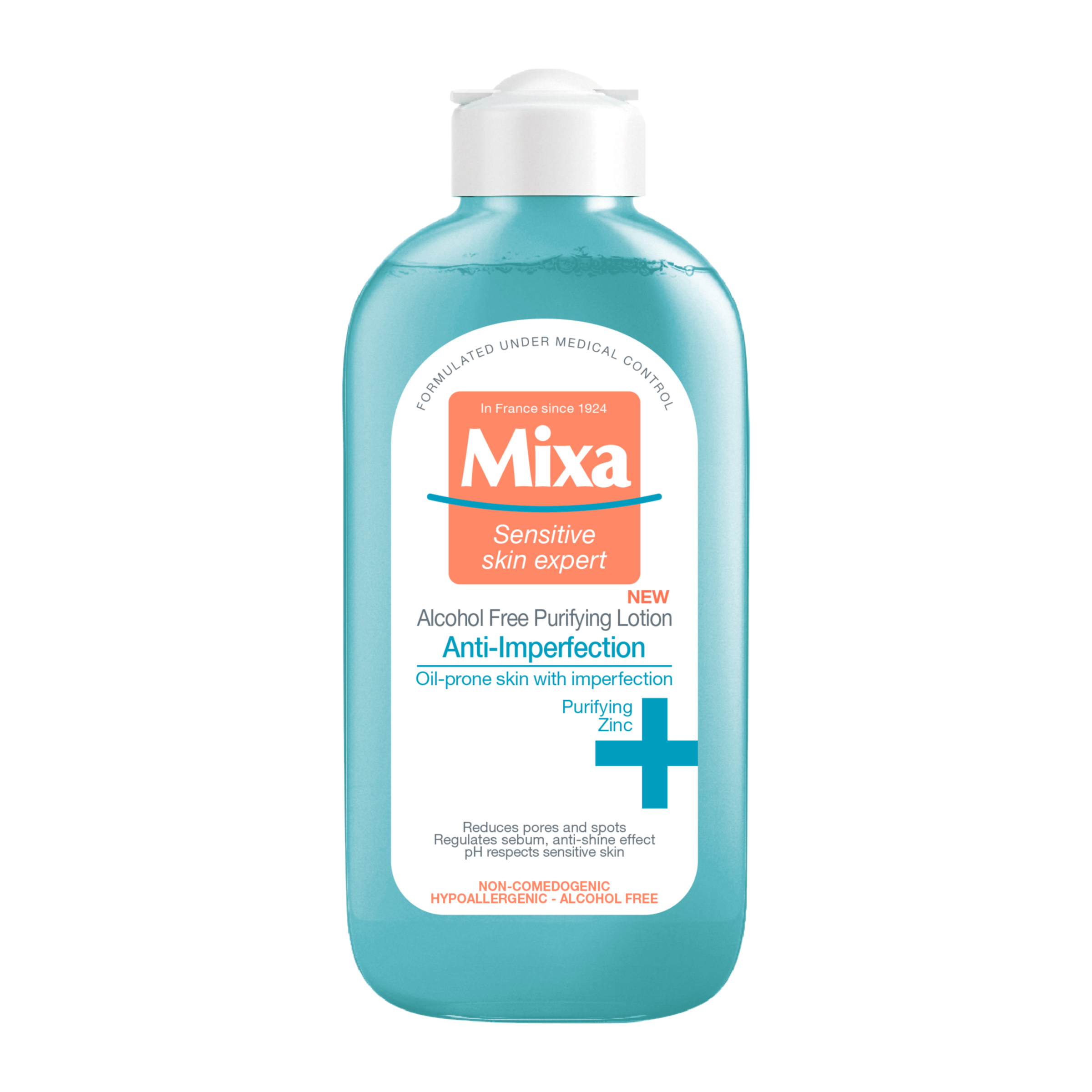 Čisticí a zmatňující pleťová voda MIXA bez obsahu alkoholu je vhodná pro mastnou a citlivou pleť se sklonem k nedokonalostem. Důkladně dočišťuje pleť, stahuje rozšířené póry a redukuje lesk bez vysoušení. Obsahuje antibakteriální složku Zinc PCA.