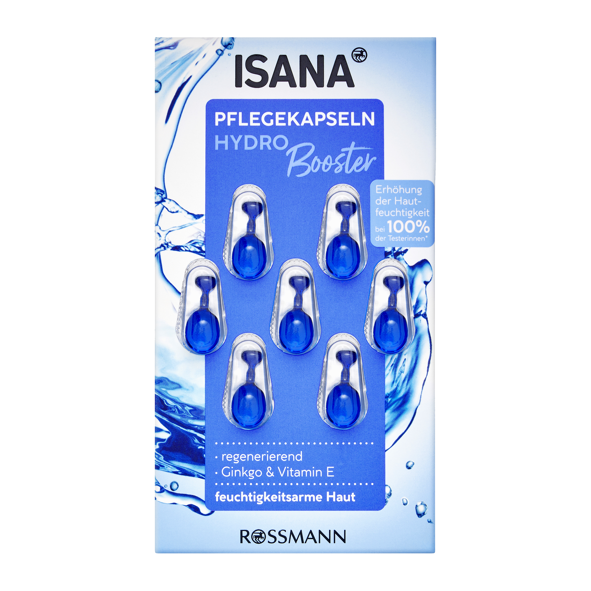 Dopřejte své pleti pořádnou dávku hydratace. Pečující kapsle ISANA Hydro Booster s výtažky z ginkgo biloba a vitaminem E v kapslích intenzivně zvyšují hydrataci pleti.