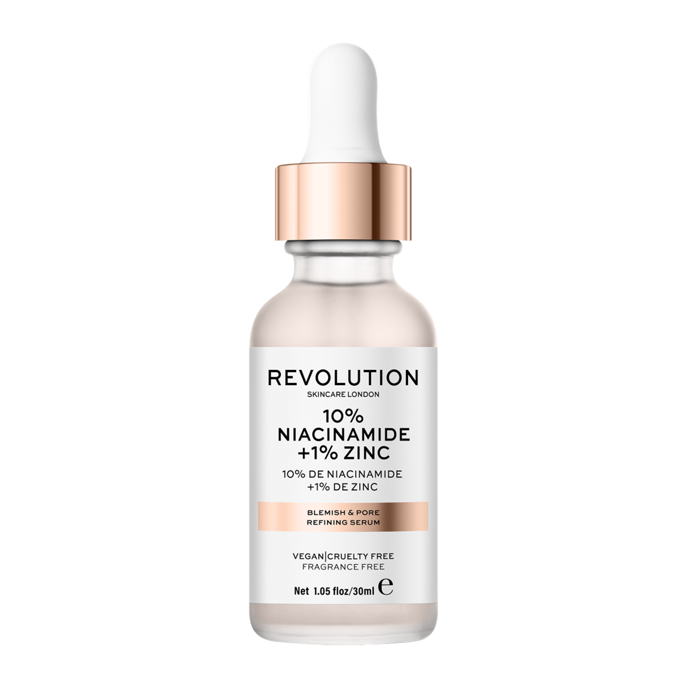Revolution Skincare Blemish and Pore Refining Serum se používá pro mastnou a problematickou pleť. Za pomocí dvou šetrných složek k pokožce niacinamidu a zinku sérum pomáhá odstraňovat problémy pleti jako je akné (nejedná se však o léčbu tohoto problému, napomáhá k udržení čistých pórů a předcházení jeho tvorby), poškození pleti a minimalizuje vzhled velkých pórů.
