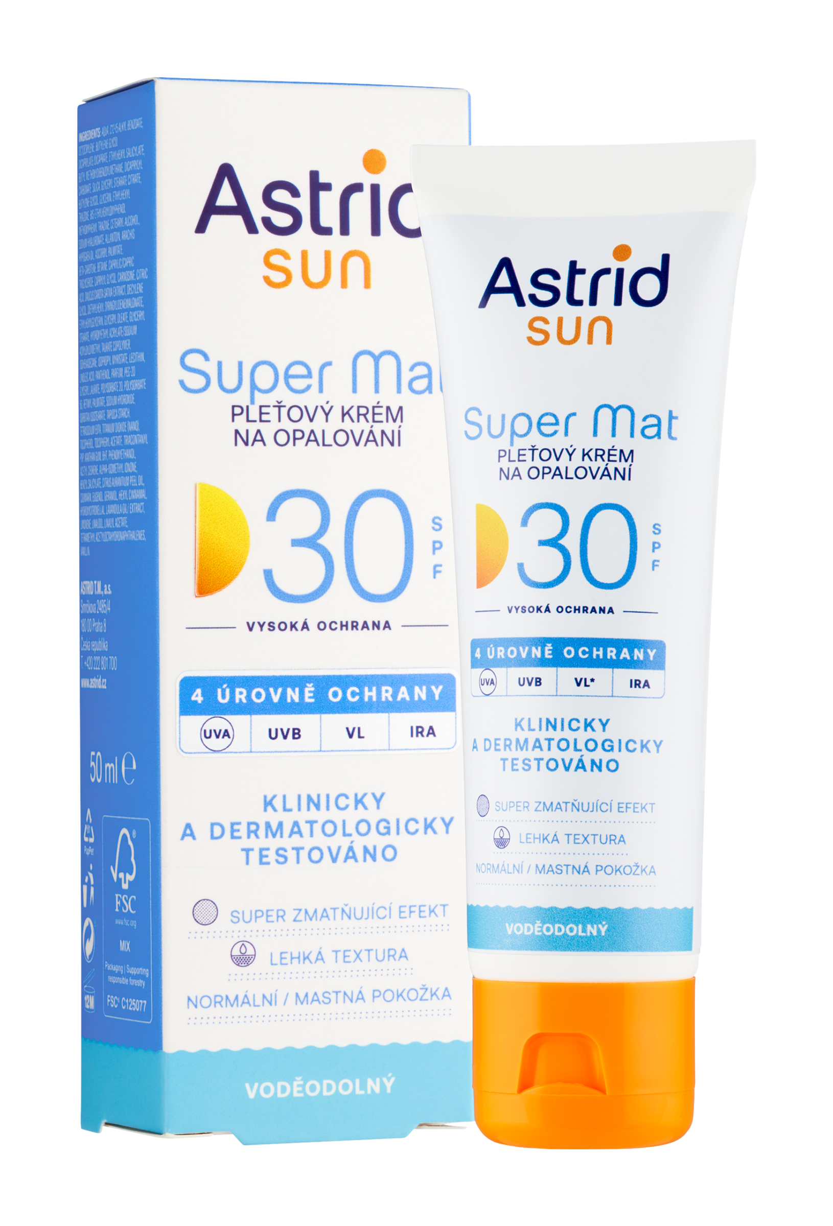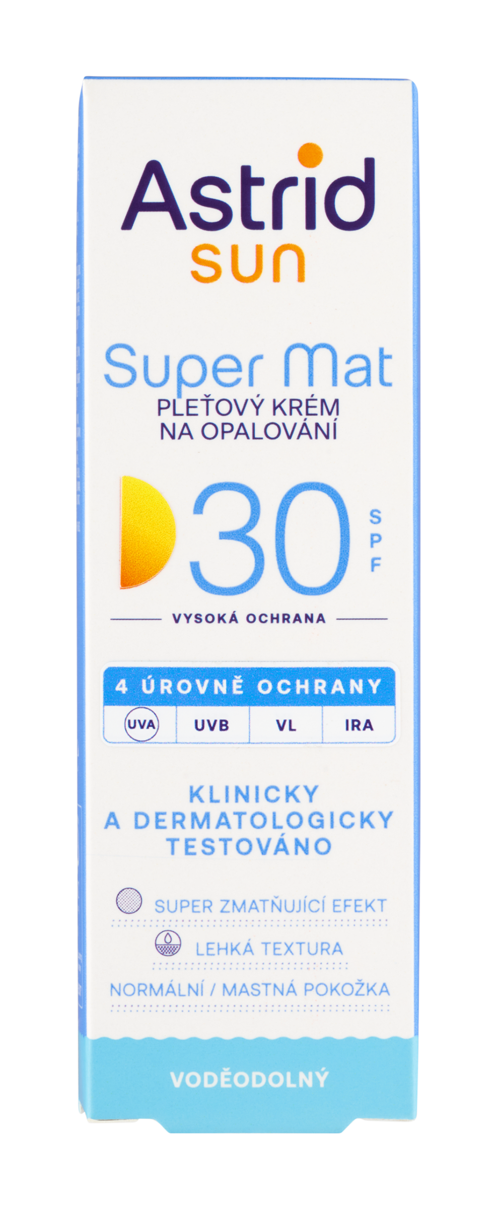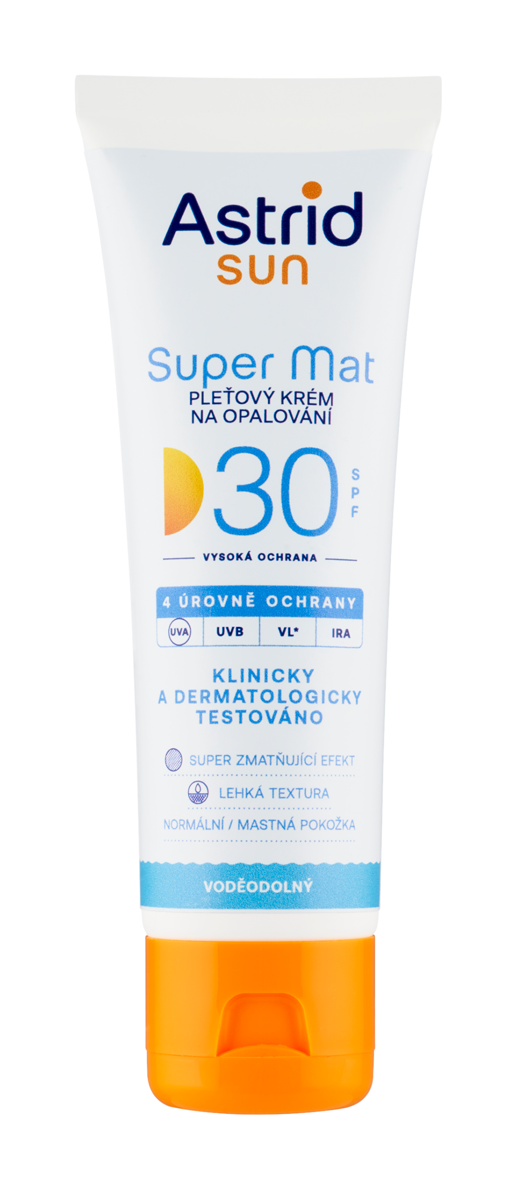 Astrid Sun Pleťový krém na opalování SPF 30 – pokročilá ochrana a péče pro vaši pleť! Astrid Sun Pleťový krém na opalování SPF 30 poskytuje více než jen základní ochranu proti slunci. Díky pokročilé sluneční technologii chrání vaši pleť před čtyřmi hlavními typy slunečního záření – UVA, UVB, VL* a IRA, které mohou způsobovat předčasné stárnutí pokožky a její poškození.