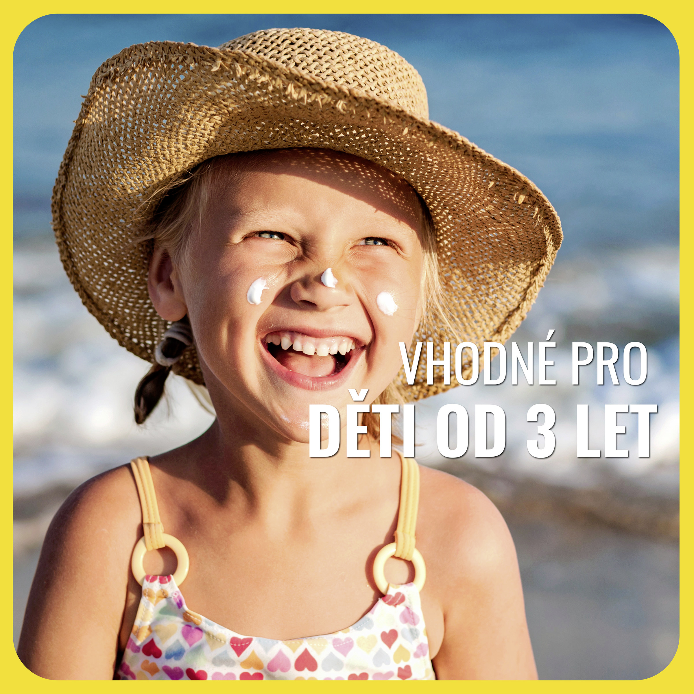 Účinná ochrana proti UVA a UVB – OF 50. Vhodné i pro jemnou dětskou pleť od 3 let. Zabraňuje poškození a podráždění pokožky sluncem. Zamezuje předčasnému stárnutí. Šetrné a fotostabilní UVA a UVB filtry. Voděodolný. Zvláčňuje pokožku. Zklidňuje a podporuje regeneraci. Praktické balení v tubě. Dermatologicky testováno, bez parabenů.
