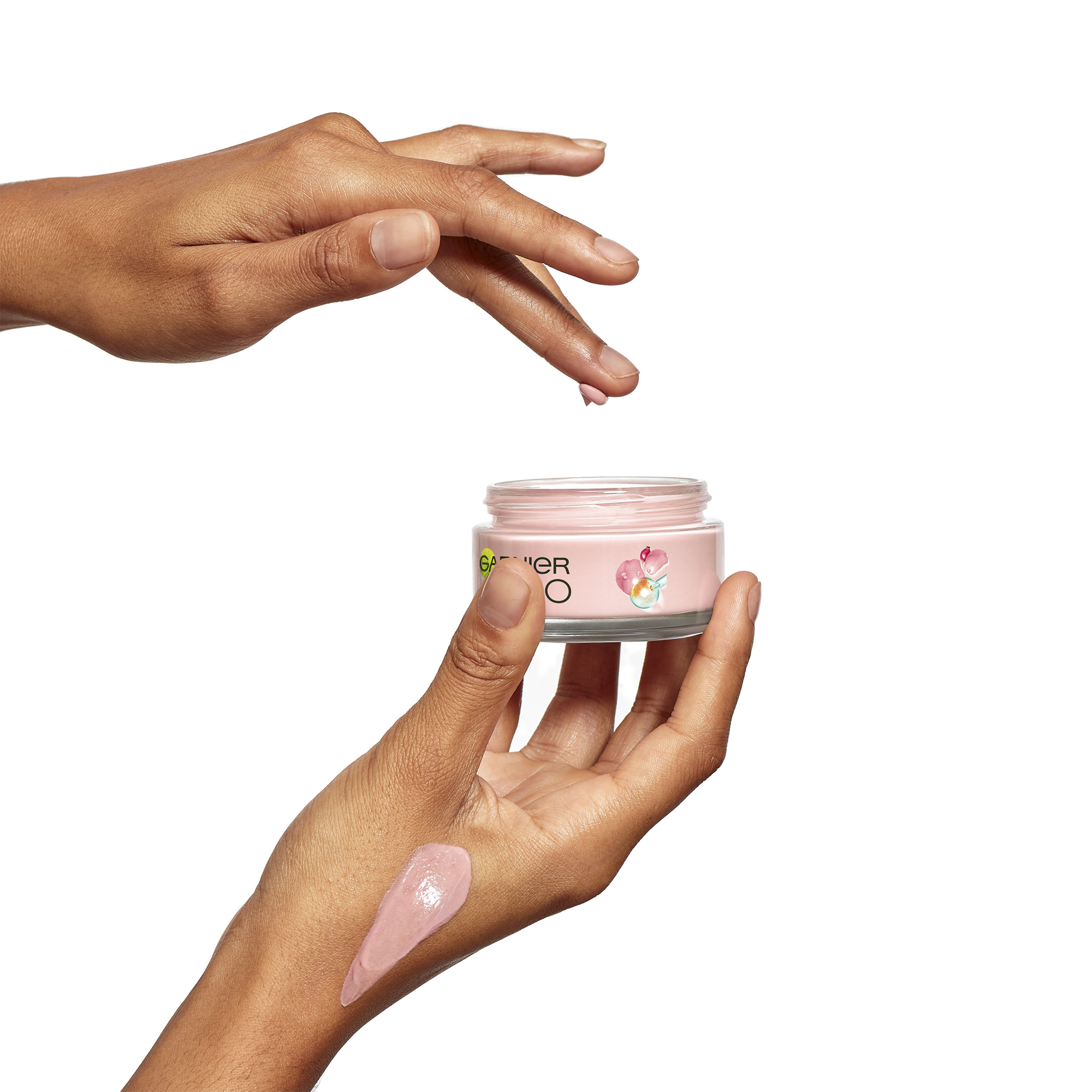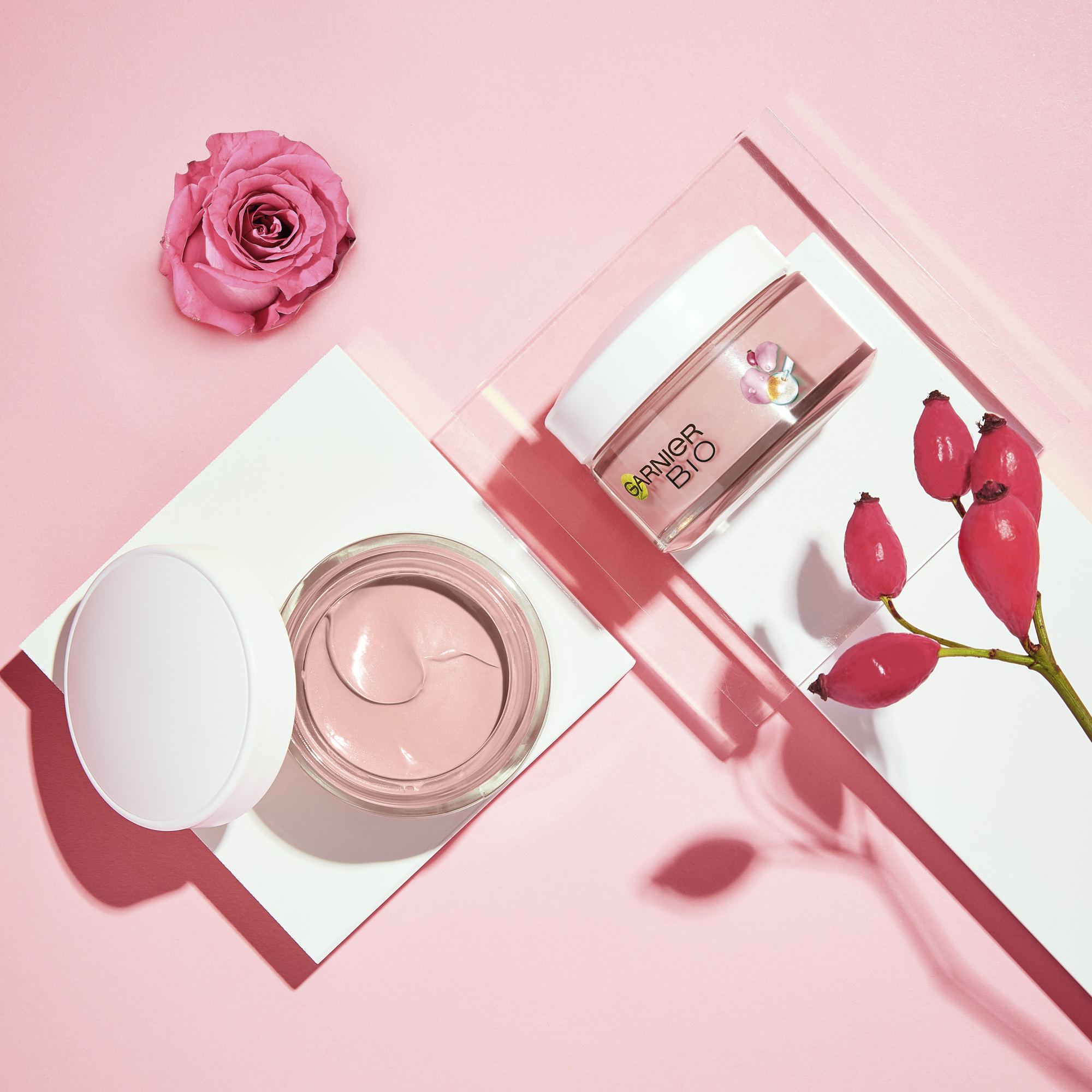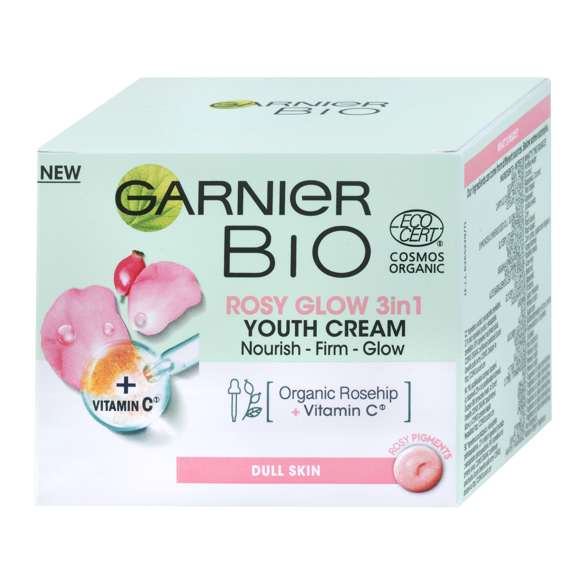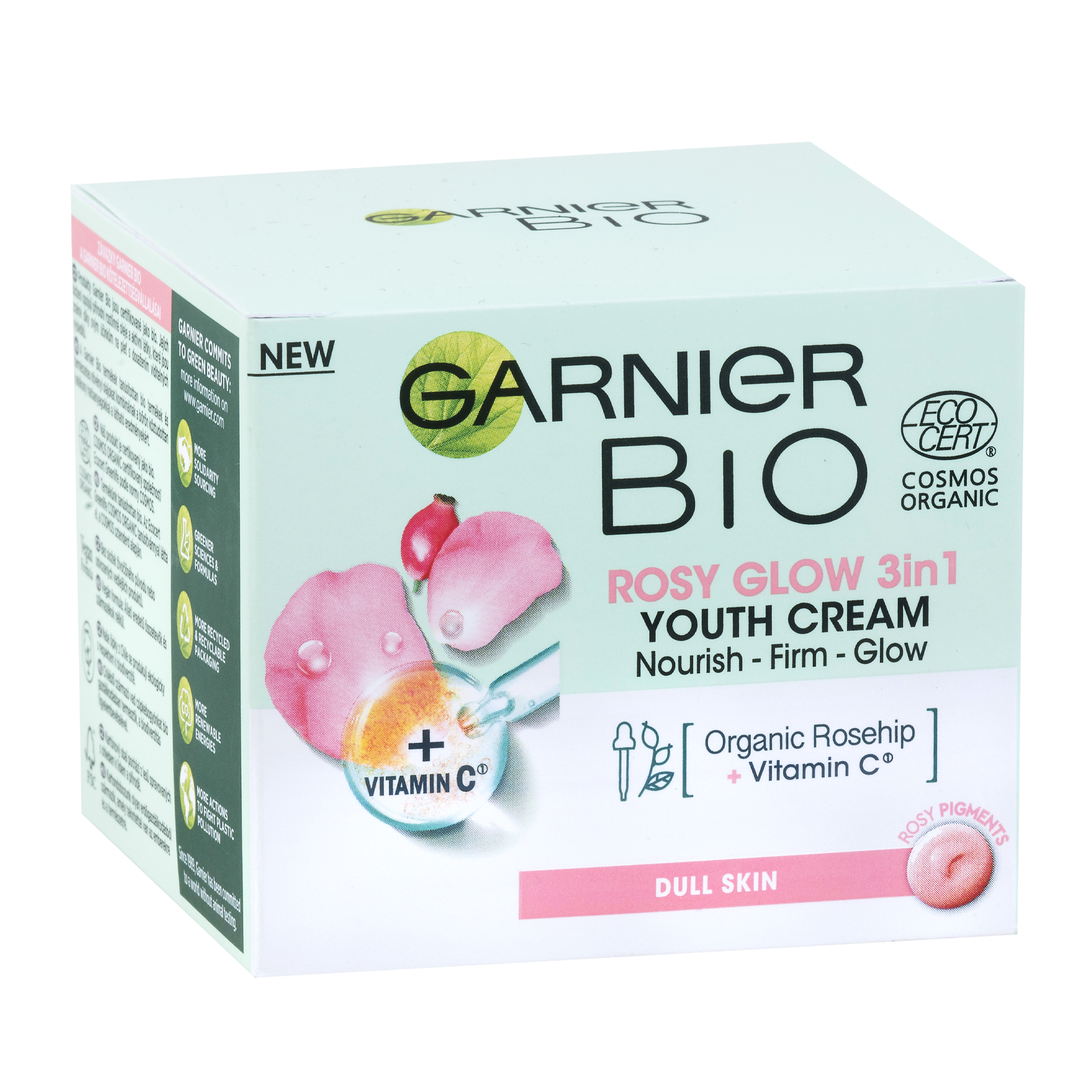 Tento krém 3v1 vyživuje, vyhlazuje a rozjasňuje unavenou a zralou pleť, včetně suché. Vytváří zářivou pleť a dlouhodobě zlepšuje sjednocení tónu pleti v jednom kroku. Naše šípky se sbírají ručně a semena se lisují za studena, což nám umožňuje získat bio certifikovaný panenský olej. Náš rostlinný vitamín C* se získává biotransformací rostlin, čím pomáhá zesvětlit a rozjasnit pleť.