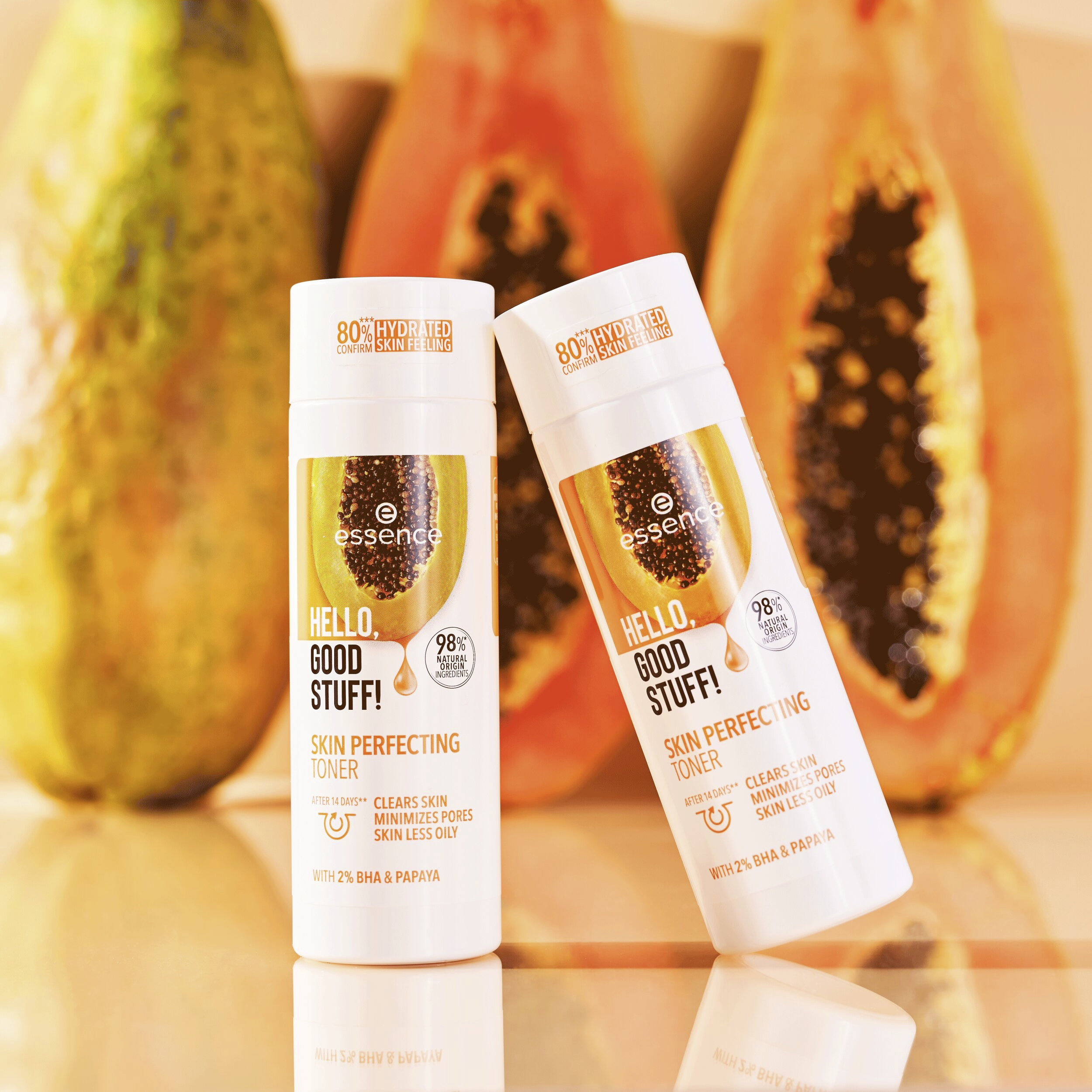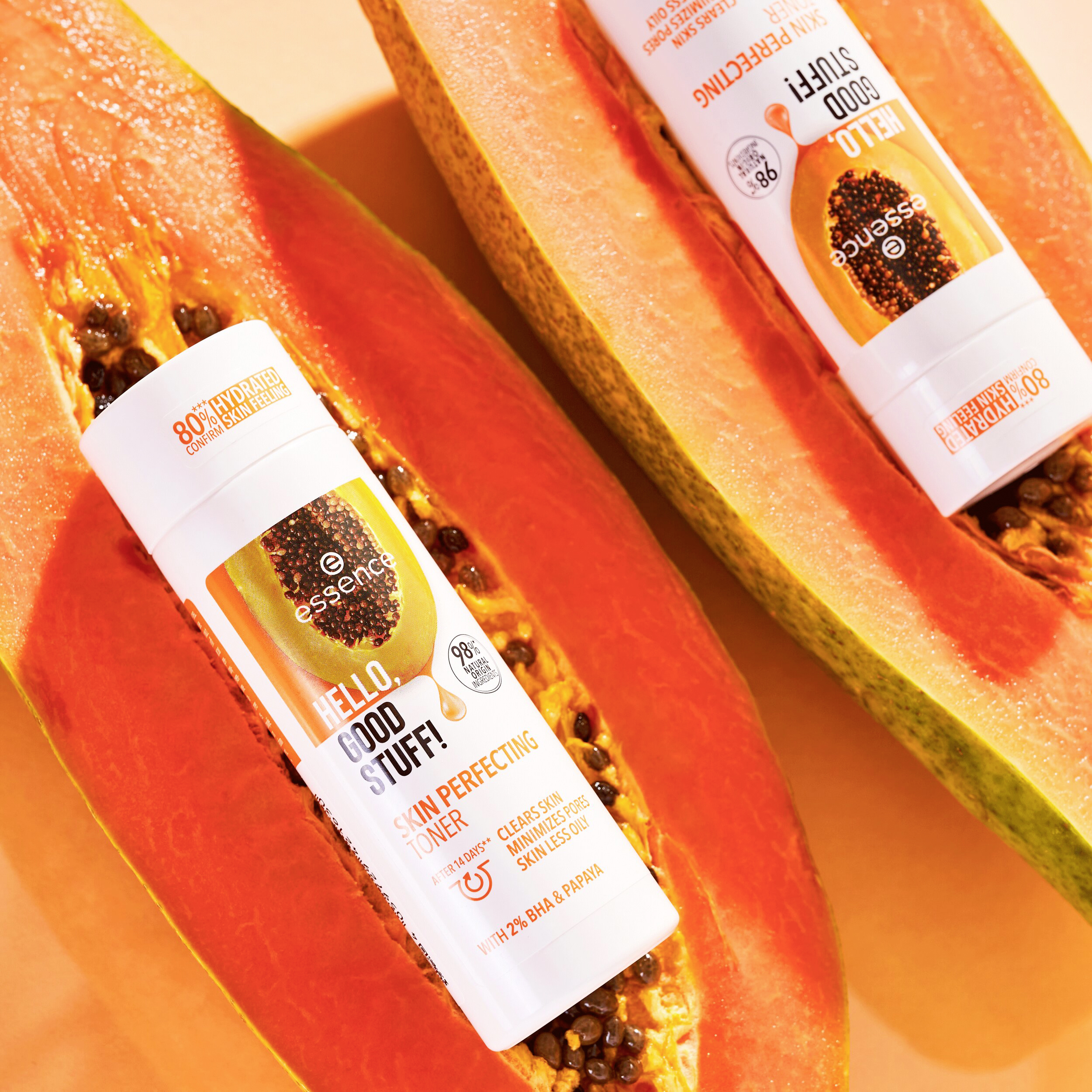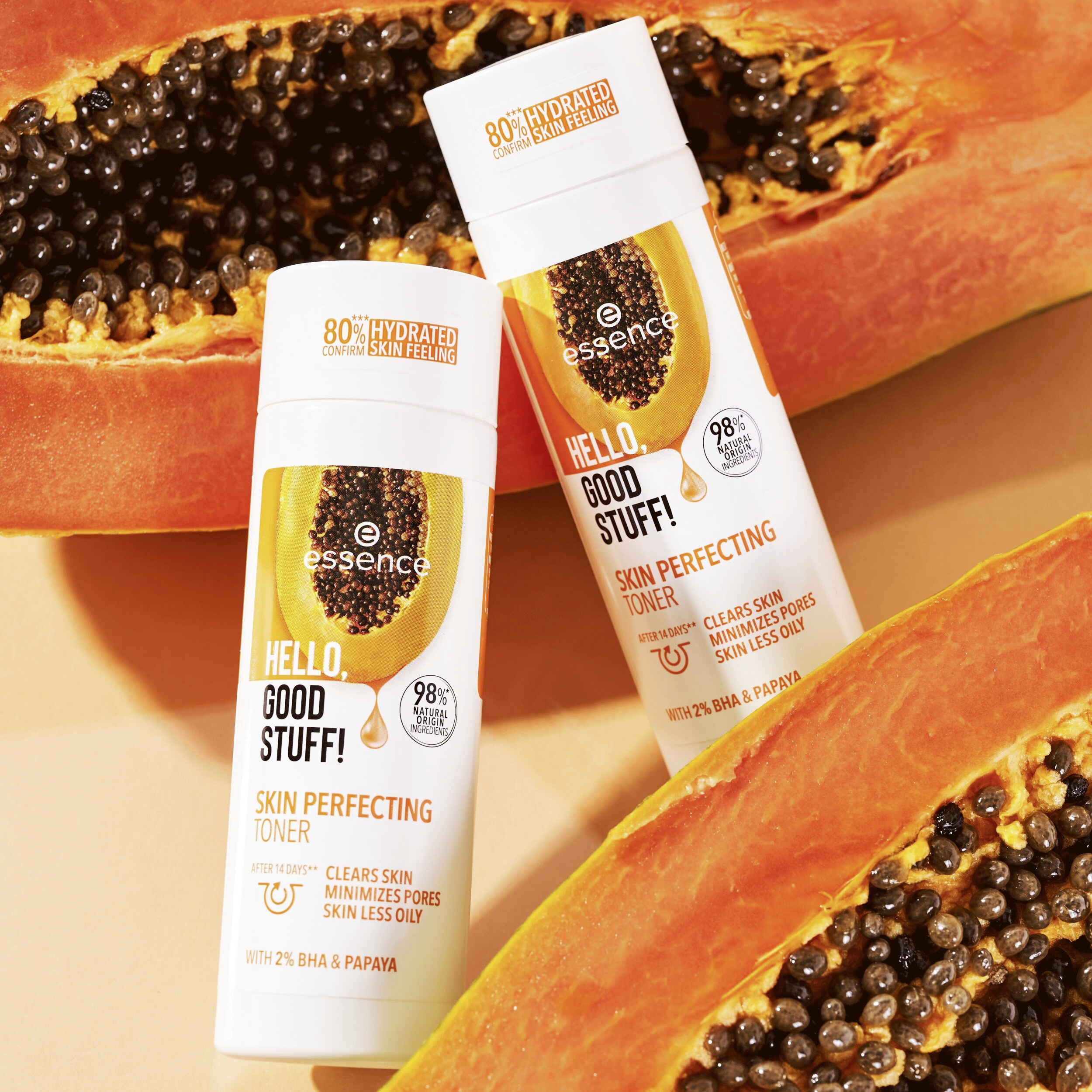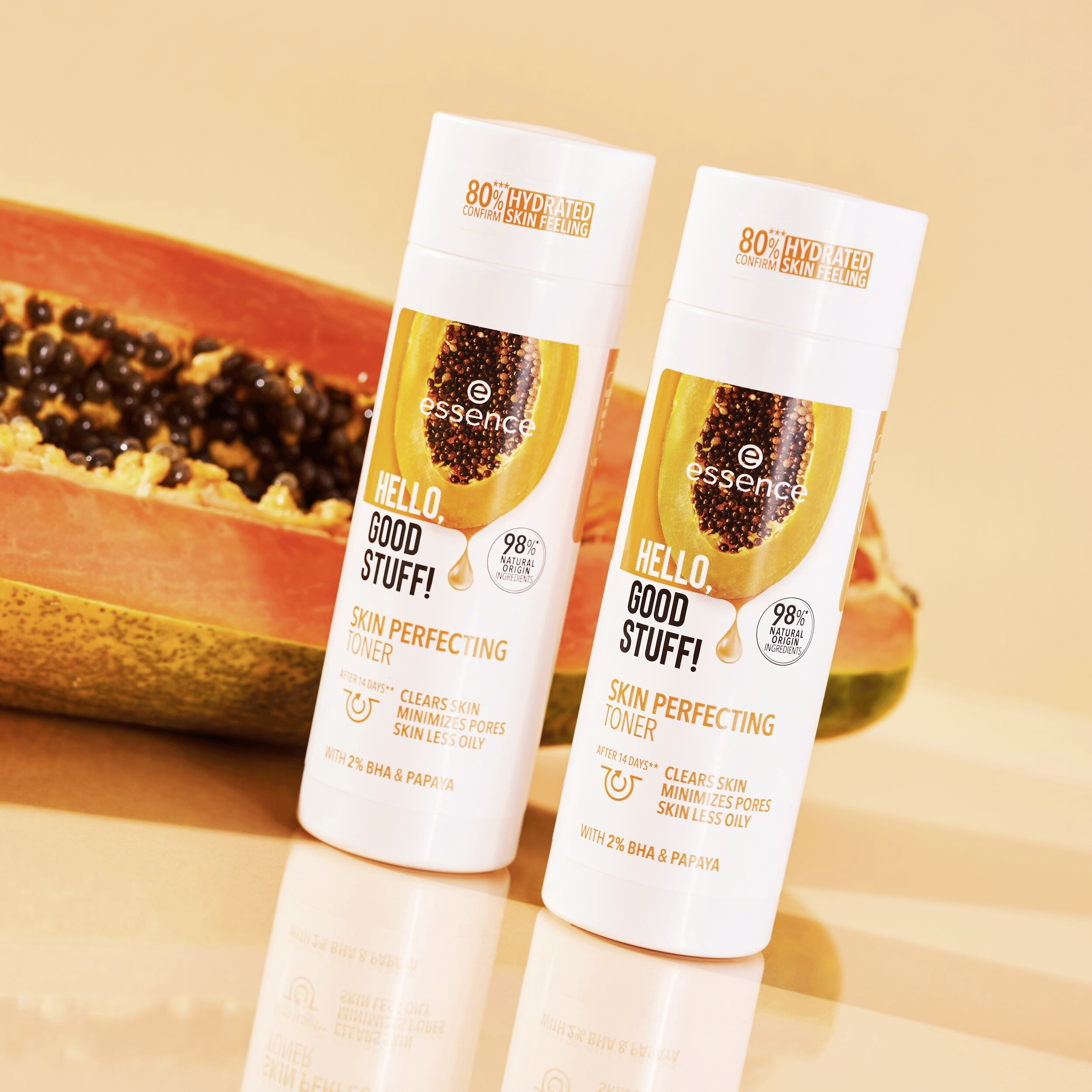 Dokonalá pleť! HELLO, GOOD STUFF! TONIKUM SKIN PERFECTING 100 ml čistí pleť pomocí 2% BHA a extraktu z papáji a viditelně minimalizuje póry. Je také obohaceno o 5% glycerin, díky němuž je pokožka hydratovaná. Po 14 dnech jsou póry minimalizovány a pokožka je čistější a méně mastná.