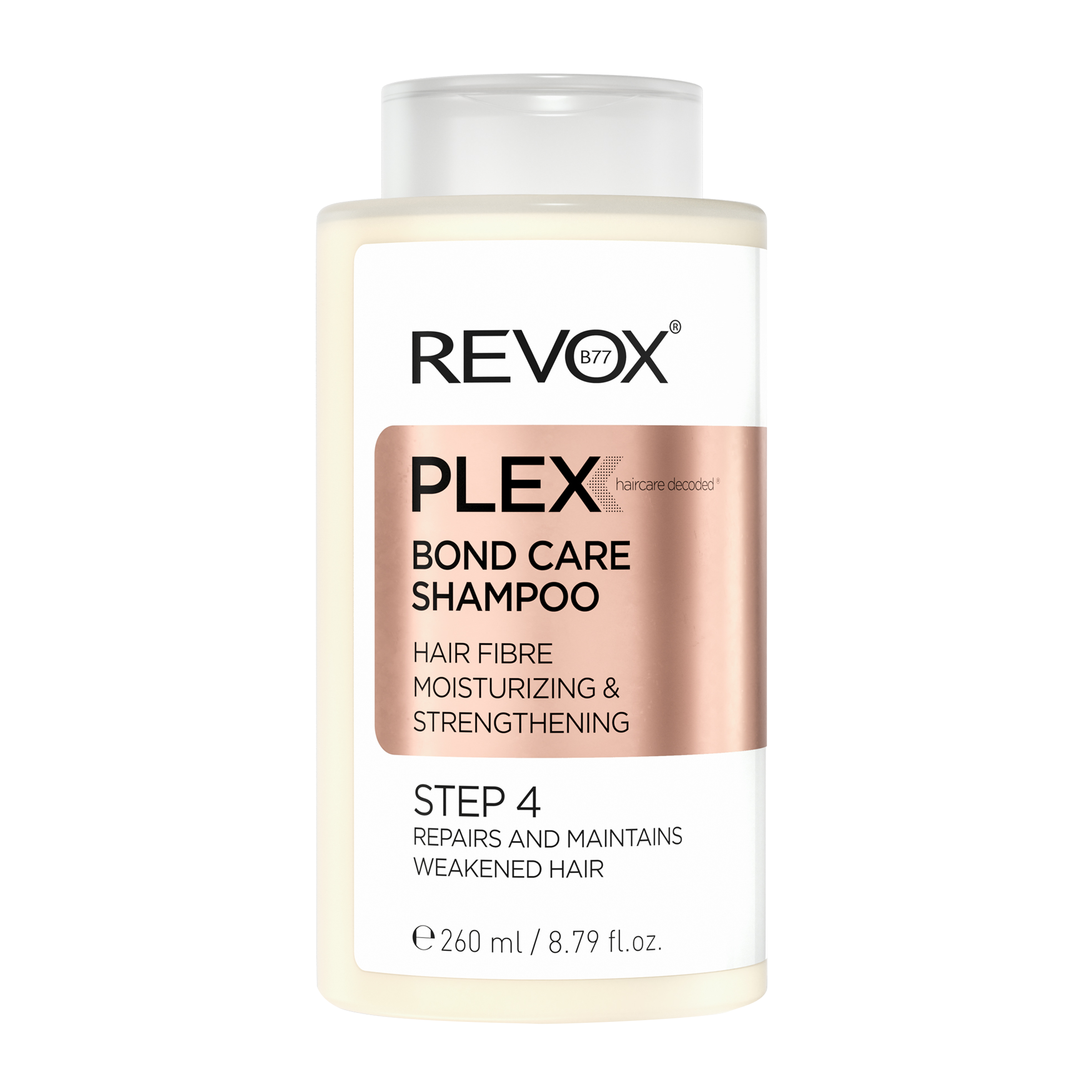 Šampon REVOX Plex Bond Care je 4. krokem pokročilého systému REVOX B77 PLEX pro obnovu vlasů.
