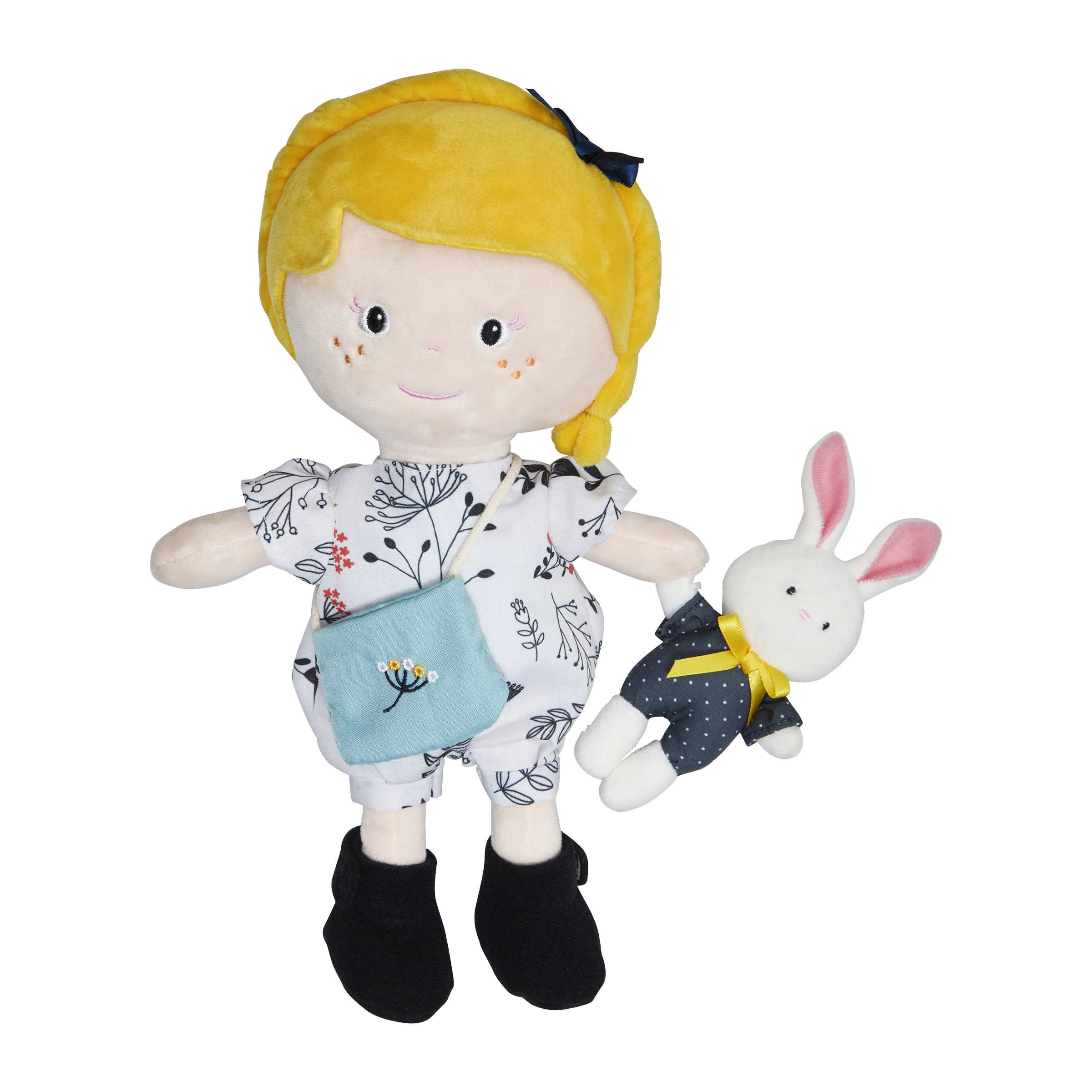 Hadrová panenka je láskyplně navržená hračka, která udělá radost těm nejmenším od 0 měsíců. Blonďaté nebo zrzavé vlásky a každá s jedinečnou malou plyšovou hračkou nabízejí individuální možnosti hry pro vaše dítě. Díky 20% podílu recyklovaných materiálů přispívají tyto hadrové panenky k udržitelnější budoucnosti. Hadrová panenka podporuje rozvoj zraku díky svým zářivým barvám a vzorům, stejně jako sociální dovednosti napodobováním pečujícího a vychovávajícího chování.