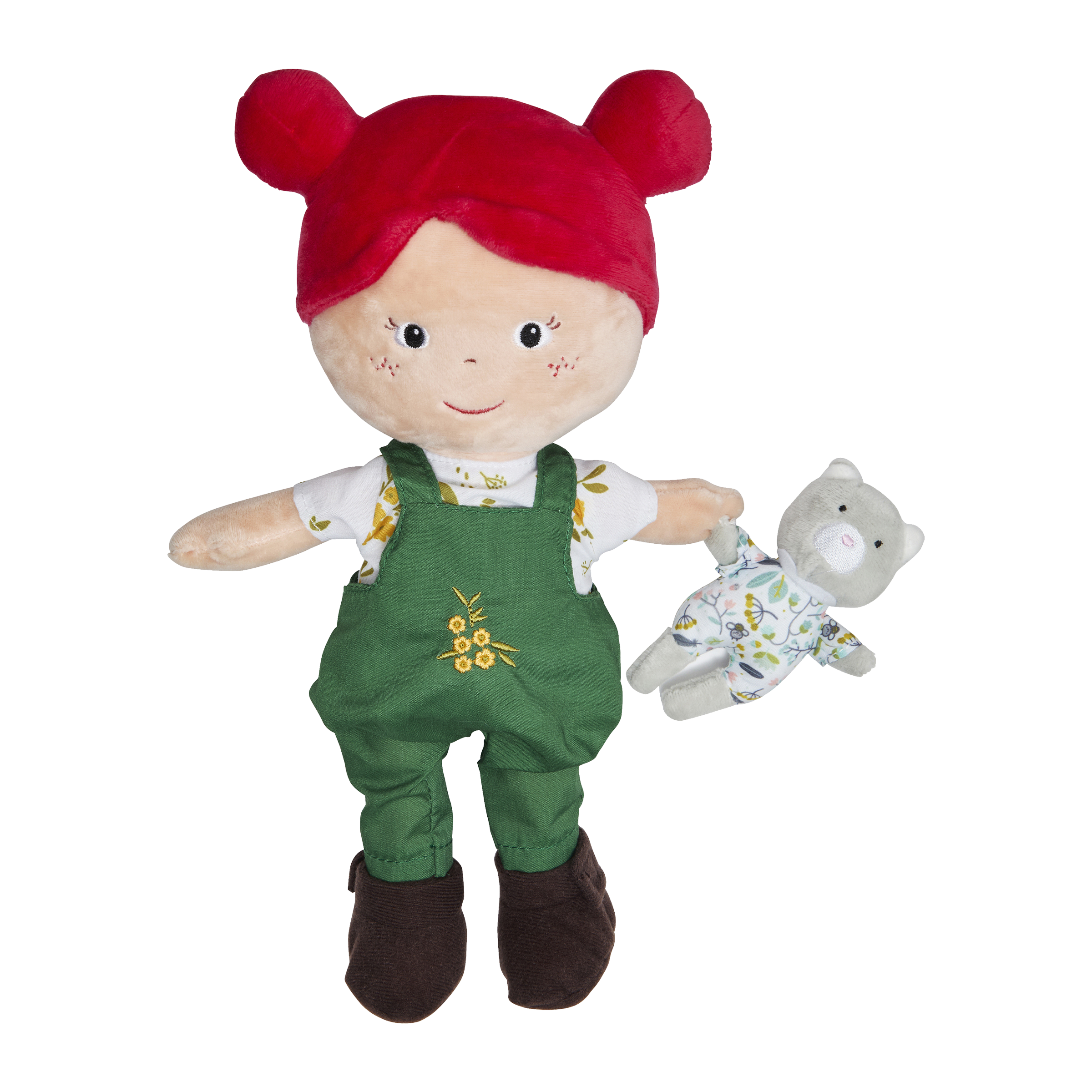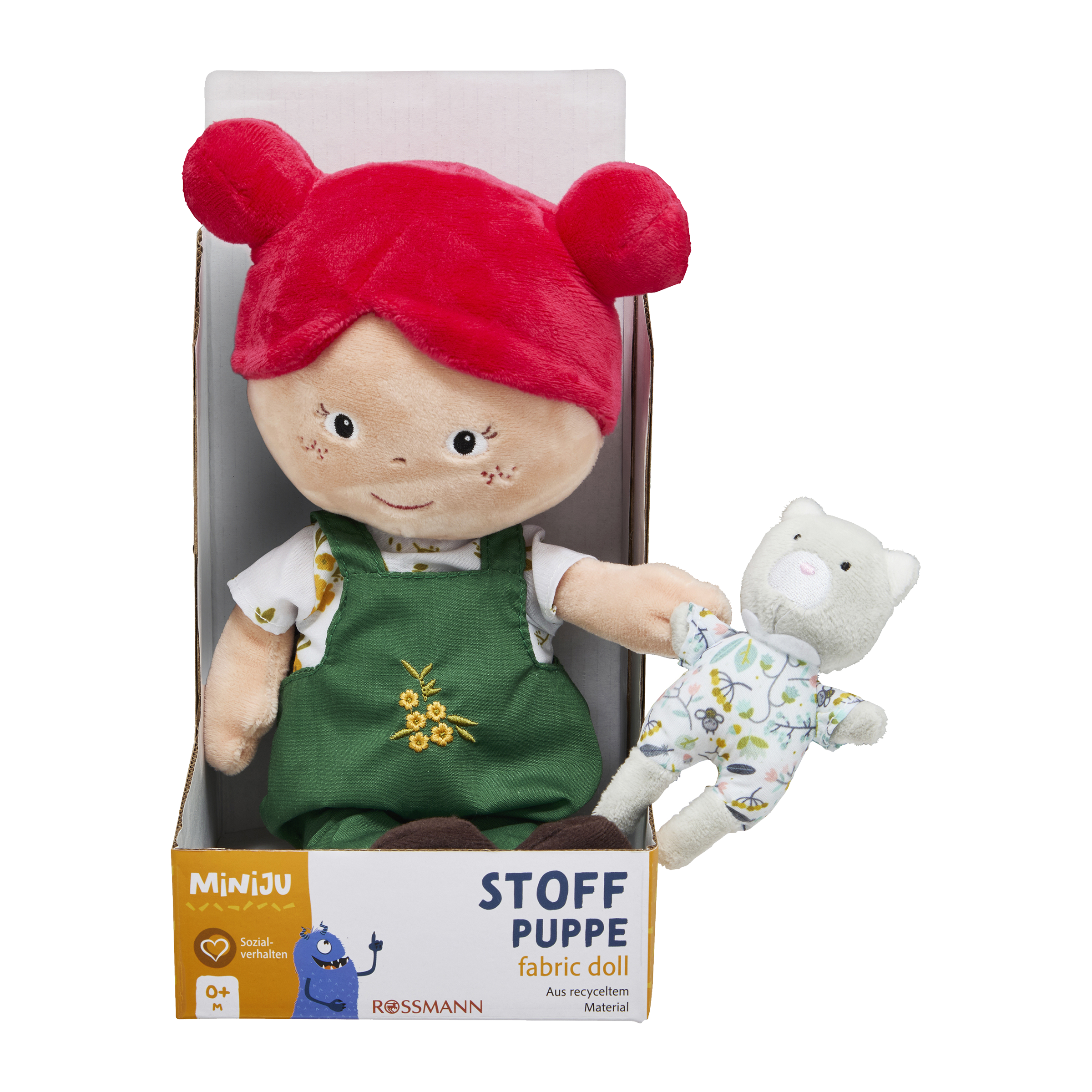 Hadrová panenka je láskyplně navržená hračka, která udělá radost těm nejmenším od 0 měsíců. Blonďaté nebo zrzavé vlásky a každá s jedinečnou malou plyšovou hračkou nabízejí individuální možnosti hry pro vaše dítě. Díky 20% podílu recyklovaných materiálů přispívají tyto hadrové panenky k udržitelnější budoucnosti. Hadrová panenka podporuje rozvoj zraku díky svým zářivým barvám a vzorům, stejně jako sociální dovednosti napodobováním pečujícího a vychovávajícího chování.