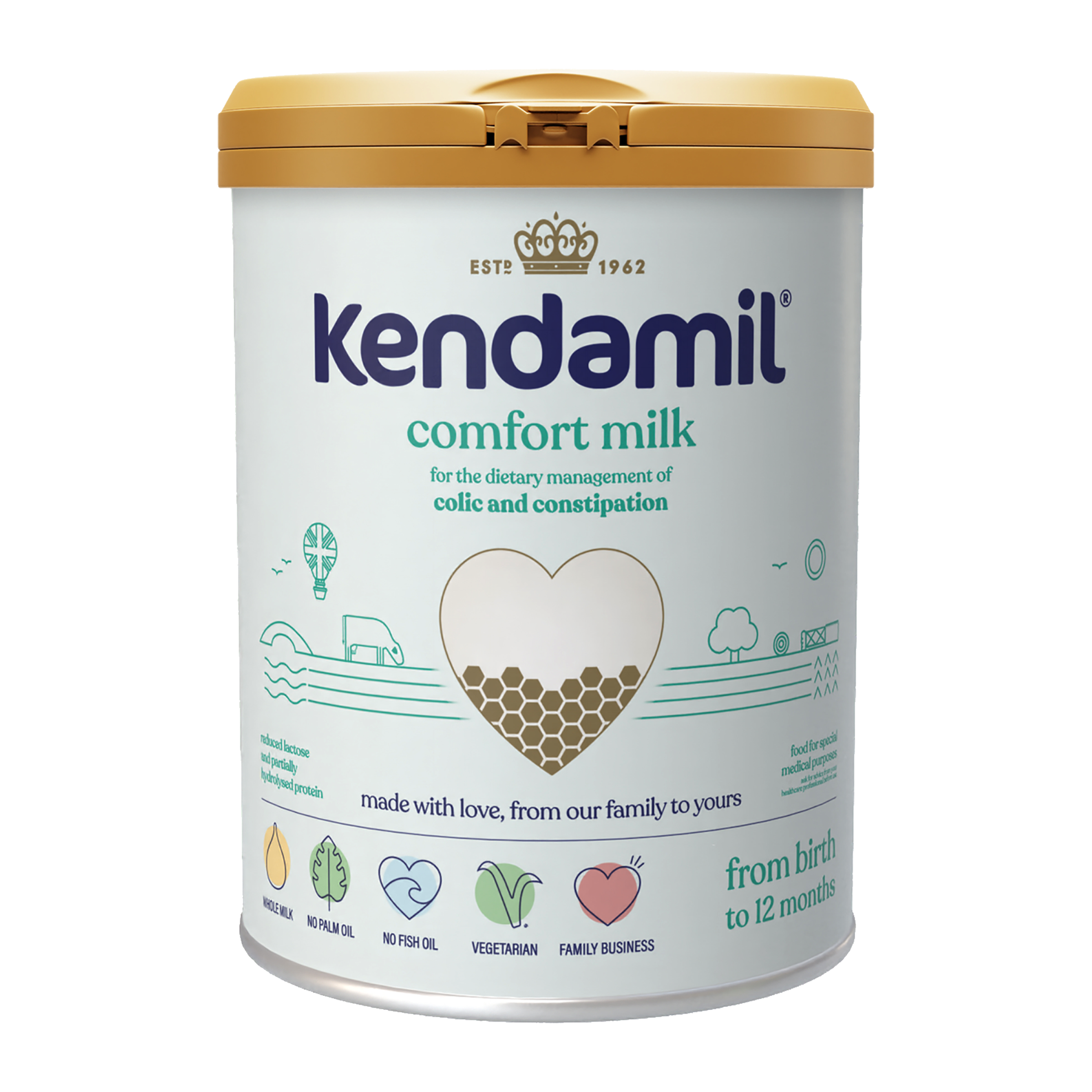 Počáteční kojenecká výživa Kendamil Comfort, potravina pro zvláštní lékařské účely v prášku, vhodná od narození do 12 měsíců. Potravina pro řízenou dietní výživu při kolice a zácpě s částečně hydrolyzovanou bílkovinou a sníženým obsahem laktózy v porovnání se standardní kojeneckou výživou.