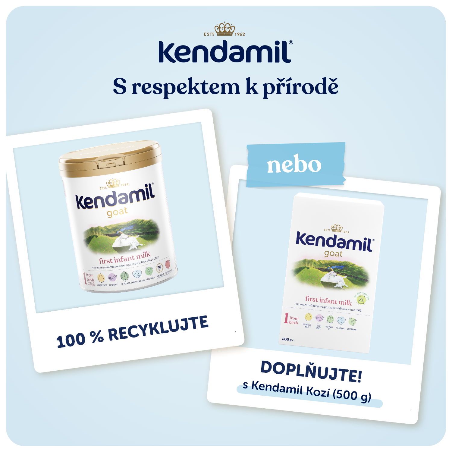 Důležité upozornění: Kojení je nejpřirozenějším způsobem výživy kojenců a poskytuje Vám oběma mnoho výhod. Je důležité, aby po dobu, kdy budete kojit, byla vaše strava zdravá, pestrá a vyvážená. Pokud se rozhodnete přestat kojit nebo začít děťátko dokrmovat kojeneckým mlékem, může to snížit vaši schopnost kojit, přičemž změnit toto rozhodnutí později může být nevratné. Před začátkem použití počáteční kojenecké mléčné výživy vám doporučujeme v této souvislosti přemýšlet také o sociálním a finančním dopadu Vašeho rozhodnutí. Kendamil kozí kojenecké mléko 1 je vhodné pro výživu kojenců od narození, nemohou-li být kojeni, a mělo by být užíváno jen na základě doporučení lékaře nebo osoby kvalifikované v oblasti výživy, farmacie nebo péče o matku a dítě. Pro zdraví dítěte je důležité vždy dodržovat návod na přípravu, dávkování a skladování výrobku doporučené výrobcem. Potravina pro zvláštní výživu.
