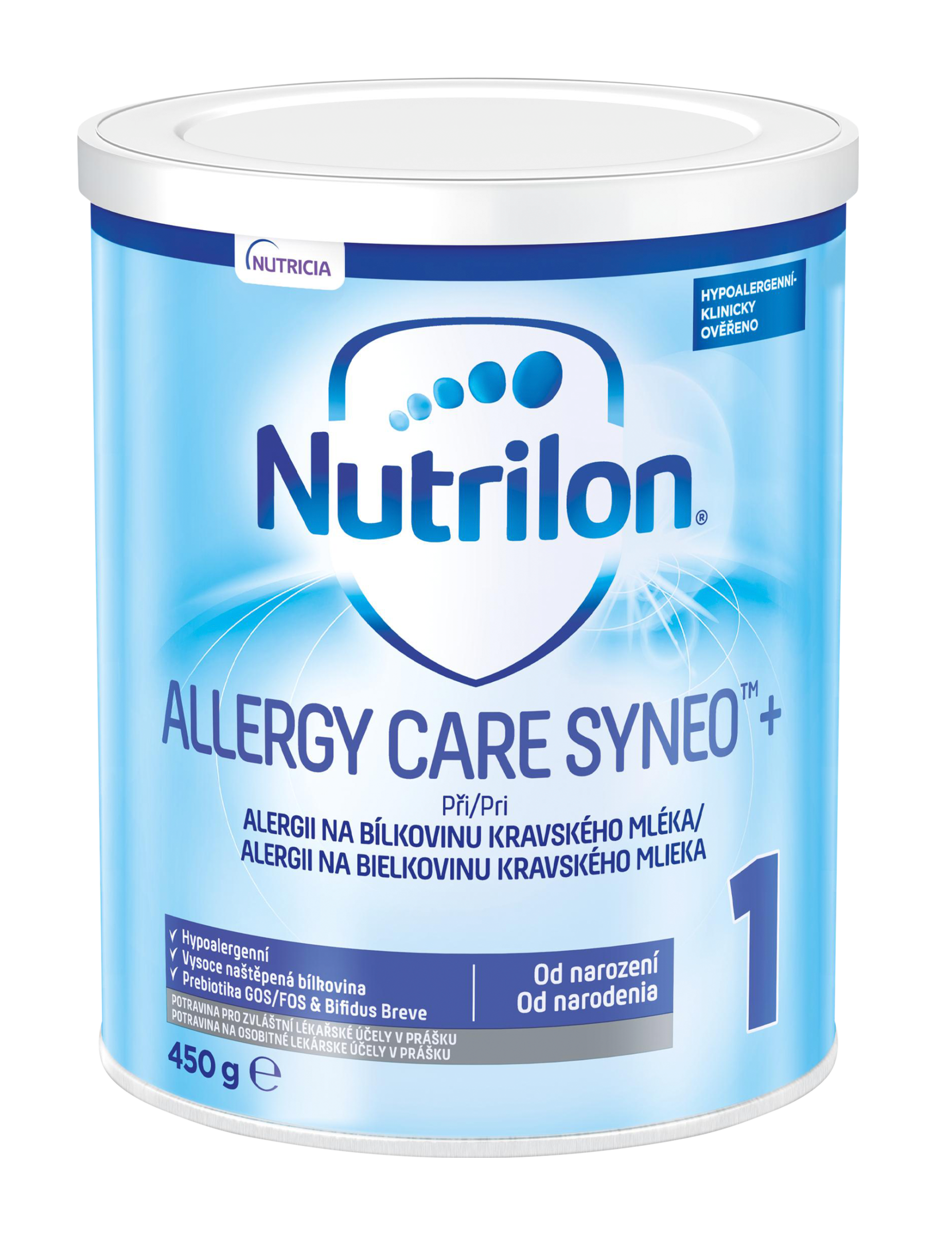Nutrilon 1 Allergy Care SYNEO+, hypoalergenní speciální kojenecké mléko, pro děti od narození. Určené k dietnímu postupu při alergii na bílkovinu kravského mléka s obsahem synbiotik. Alergie je přehnaná reakce imunitního systému na složky obsažené v potravinách nebo v okolním prostředí. Alergie na bílkovinu kravského mléka (ABKM) je jednou z nejčastějších alergií u kojenců a souvisí s imunitní reakcí na bílkovinu obsaženou v kravském mléce.