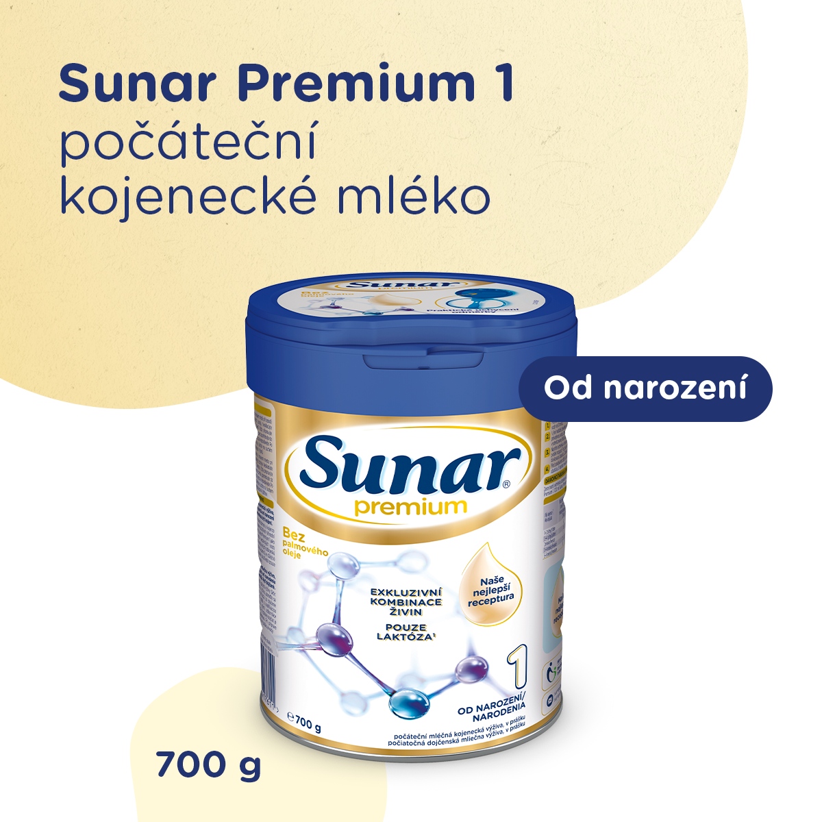 Sunar Premium 1 je počáteční mléčná kojenecká výživa, v prášku. Je určen pouze pro výživu kojenců od narození v období odstavování nebo pokud nemohou být kojeni. Potravina pro zvláštní výživu. Kojení je pro novorozence a kojence nejlepší způsob výživy. Dříve, než se rozhodnete používat náhradní mléčnou výživu, poraďte se s dětským lékařem. Sunar Premium 1 jako náhradu za kojení používejte pouze na radu nezávislých osob kvalifikovaných v lékařství, výživě nebo farmacii, nebo jiných odborníků odpovědných za péči o matku a dítě. Pro zdraví kojenců je důležité správné dodržování návodu k přípravě. Při přípravě používejte pouze přiloženou odměrku. Neměňte poměr prášku a vody. Upozornění: Doporučené denní dávky mléka jsou orientační, řiďte se individuální potřebou dítěte a doporučením pediatra. Při krmení neponechávejte dítě bez dozoru, hrozí riziko zalknutí. Pro zdraví kojenců a malých dětí je důležité správné dodržování návodu na přípravu, používejte pouze přiloženou odměrku, neměňte poměr prášku a vody. Při nesprávném skladování a nedodržení správného návodu na přípravu může dojít k ohrožení zdraví dítěte. Po konzumaci mléka, zejména před spaním, dbejte na správnou a pravidelnou hygienu ústní dutiny a prvních zoubků.