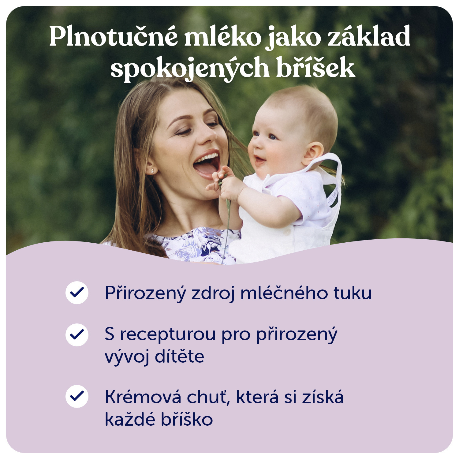 *Dle požadavků legislativy všechna počáteční mléka obsahují DHA (kyselinu dokosahexaenovou); **Z mikrořas Schizochytrium sp.; ***Certifikováno. Geneticky modifikované složky/suroviny (dle legislativy) nebyly použity v jakékoliv fázi výroby potraviny včetně krmení pro hospodářská zvířata, od kterých je mléko získáváno.