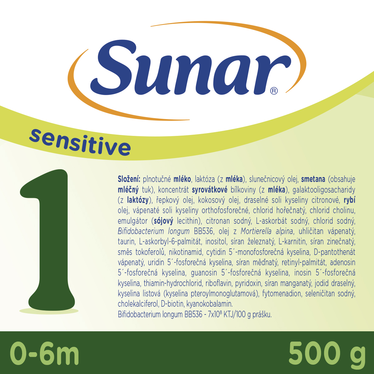 Doporučené denní dávky mléka jsou orientační, řiďte se individuální potřebou dítěte a doporučením pediatra. Při krmení neponechávejte dítě bez dozoru, hrozí riziko zalknutí. Pro zdraví kojenců a malých dětí je důležité správné dodržování návodu na přípravu, používejte pouze přiloženou odměrku, neměňte poměr prášku a vody. Při nesprávném skladování a nedodržení správného návodu na přípravu může dojít k ohrožení zdraví dítěte. Po konzumaci mléka, zejména před spaním, dbejte na správnou a pravidelnou hygienu ústní dutiny a prvních zoubků. DŮLEŽITÉ UPOZORNĚNÍ! Sunar Sensitive 1 je počáteční mléčná kojenecká výživa, v prášku. Je určen pouze pro výživu kojenců od narození v období odstavování nebo pokud nemohou být kojeni. Potravina pro zvláštní výživu. Kojení je pro novorozence a kojence nejlepší způsob výživy. Dříve, než se rozhodnete používat náhradní mléčnou výživu, poraďte se s dětským lékařem. Sunar Sensitive 1 jako náhradu za kojení používejte pouze na radu nezávislých osob kvalifikovaných v lékařství, výživě nebo farmacii, nebo jiných odborníků odpovědných za péči o matku a dítě. Pro zdraví kojenců je důležité správné dodržování návodu k přípravě. Při přípravě používejte pouze přiloženou odměrku. Neměňte poměr prášku a vody.