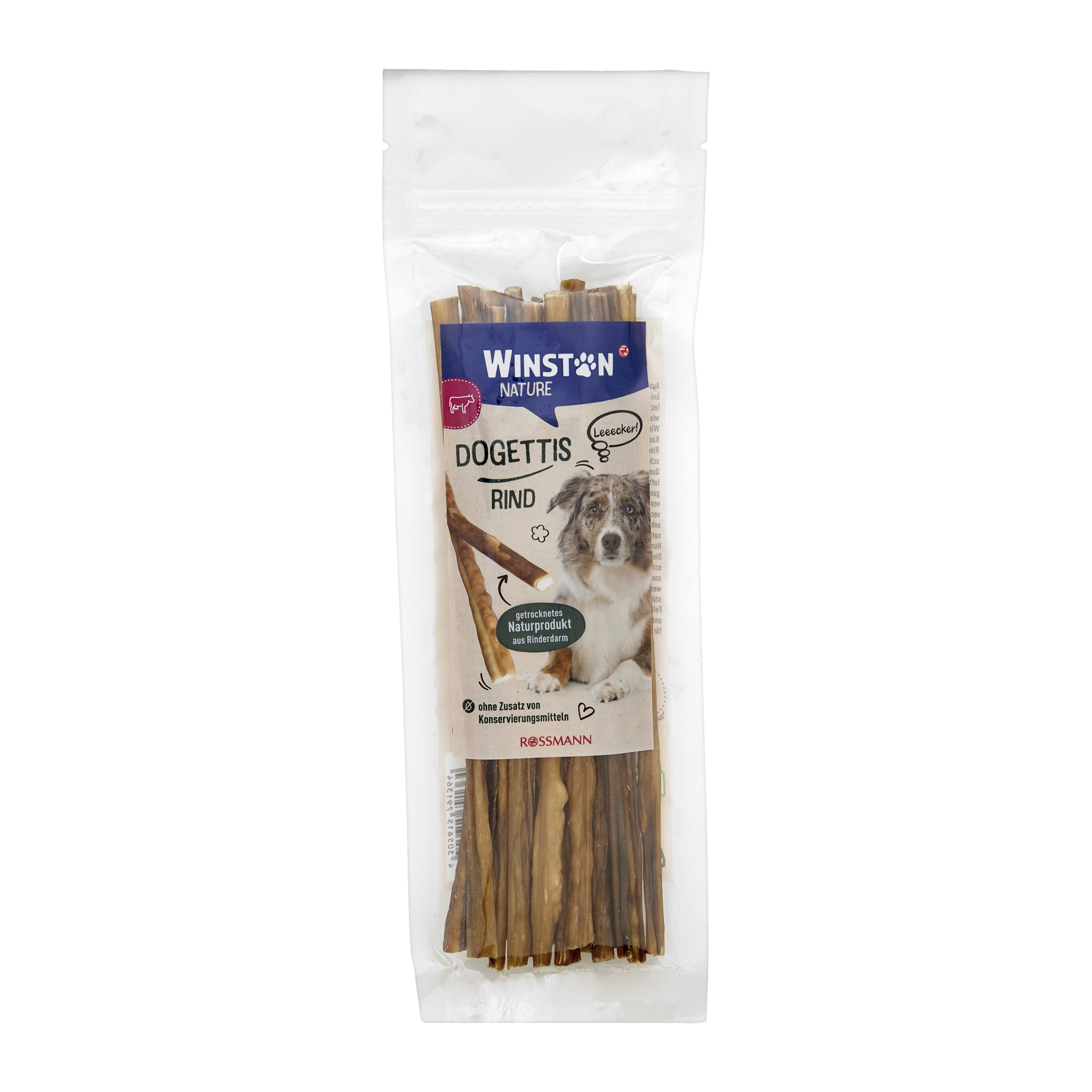 Z lásky k našim čtyřnohým přátelům chceme přesně vědět, co svačina obsahuje. Winston Dogettis jsou vyrobeny z čistých hovězích střev, a jsou proto chutným zdrojem monoproteinů. Jsou šetrně sušené na vzduchu a záměrně vyráběné bez přídavku konzervačních látek. Dogettis se netříští, a proto jsou ideální svačinkou mezi jídly.
