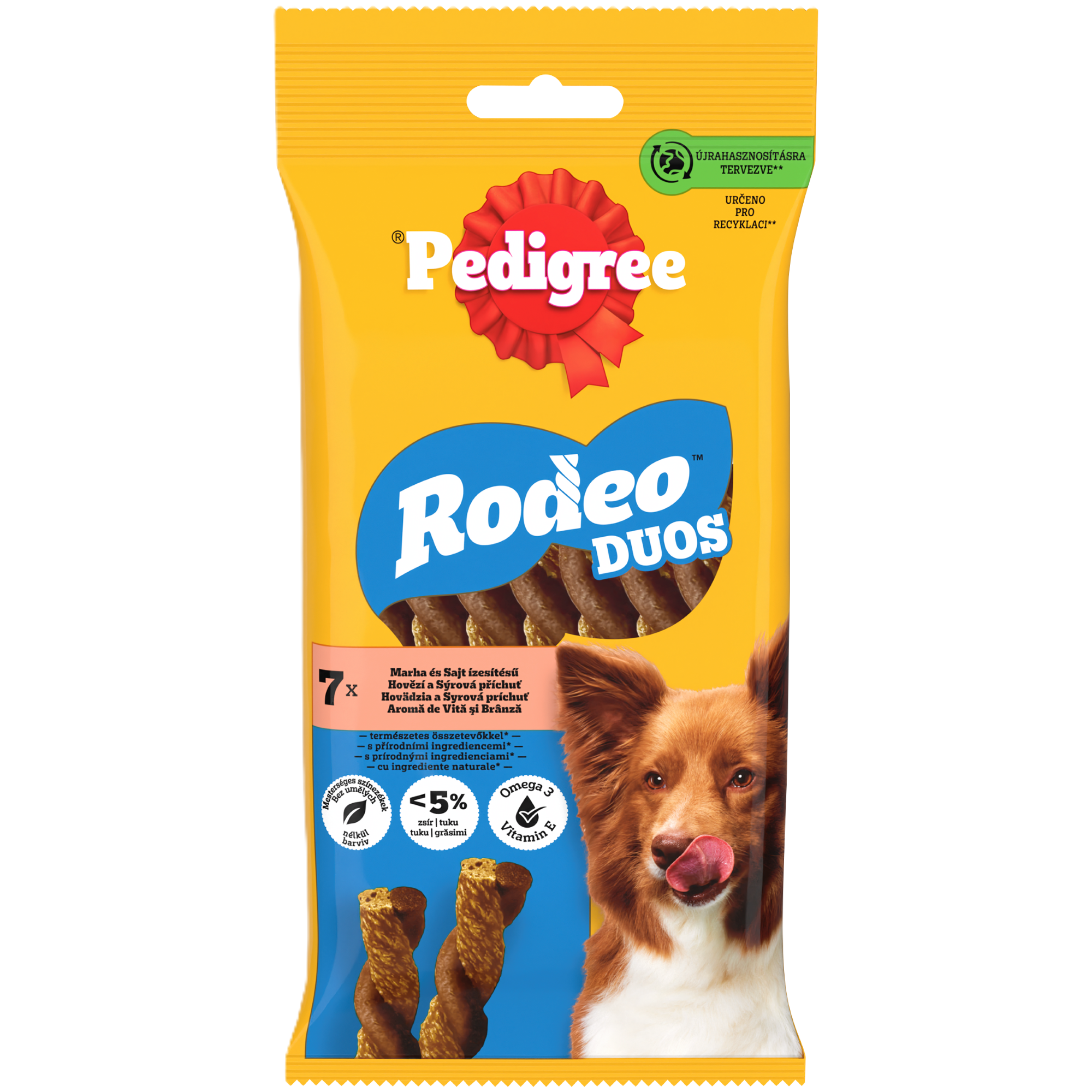 Psi rádi objevují – žvýkací pamlsky Rodeo jsou chutné kroucené psí pochoutky ideální pro každodenní rozmazlování. Díky jedinečnému zakroucenému tvaru se skvěle žvýkají a umožní vám užívat si hraní a chvíle vzájemného sbližování. Žvýkací pamlsky Rodeo obsahují omega-3 nenasycené mastné kyseliny, vitaminy a minerály a neobsahují žádná umělá barviva ani ochucovadla, takže z nich můžete mít opravdu dobrý pocit i vy!
