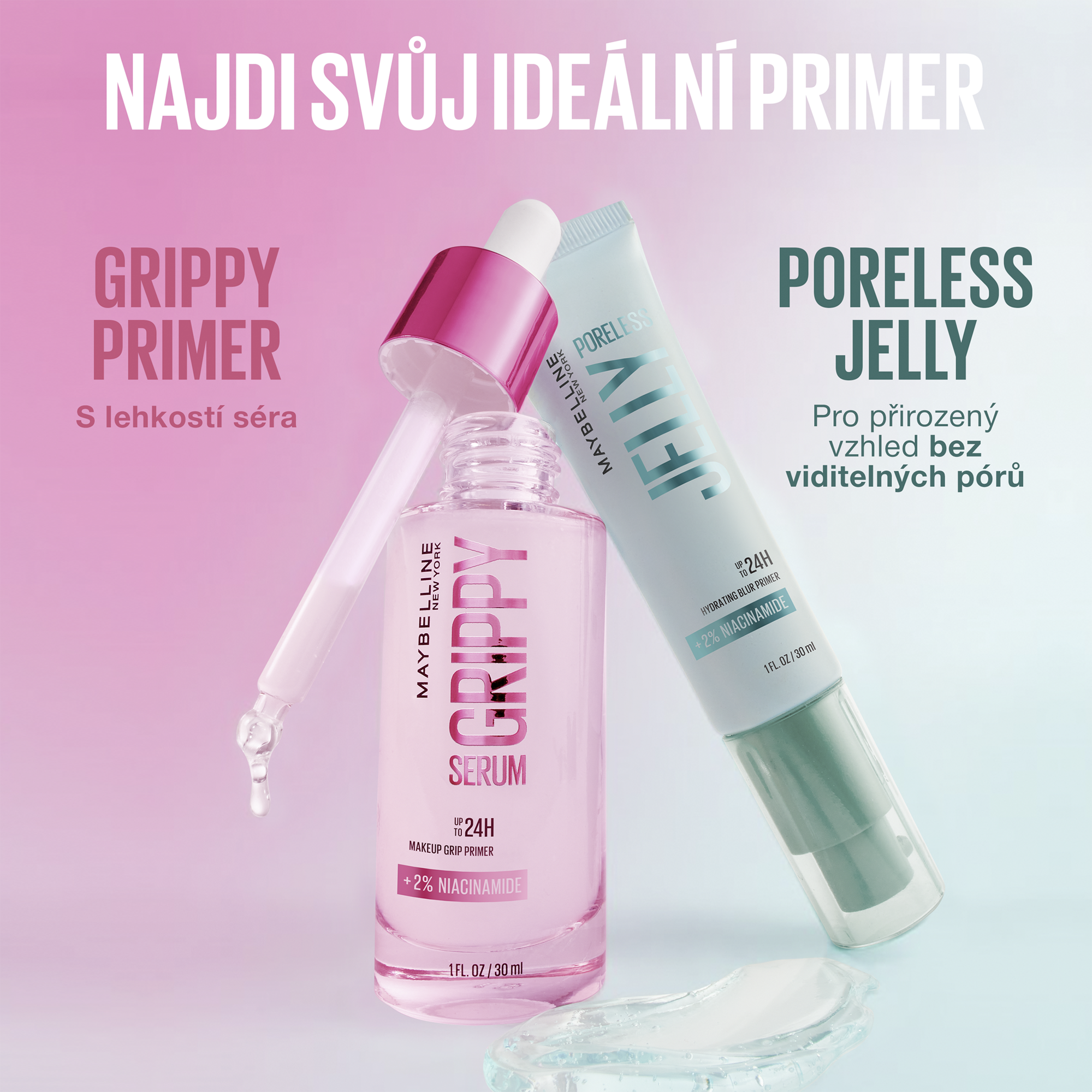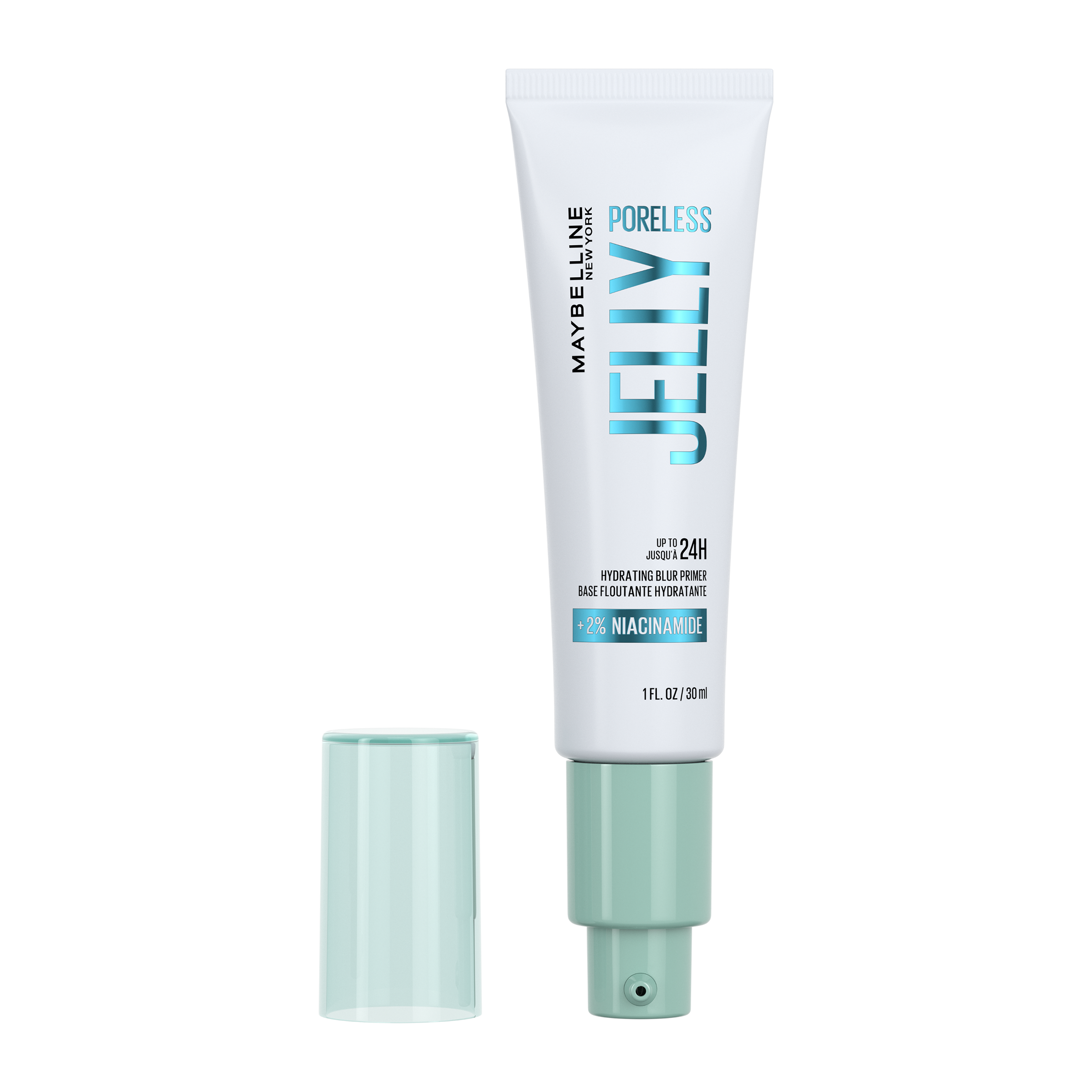 Lehká gelová báze po make-up Maybelline pomáhá vytvořit bezchybnou pleť bez viditelných pórů a prodlužuje výdrž make-upu. Složení s 2 % niacinamidu redukuje nadměrný lesk a viditelnost pórů, aniž by pleť zatěžovalo nebo mastilo. Primer poskytuje až 24hodinovou hydrataci a připravuje pleť na aplikaci make-upu tím, že ji okamžitě vyhlazuje a zjemňuje.