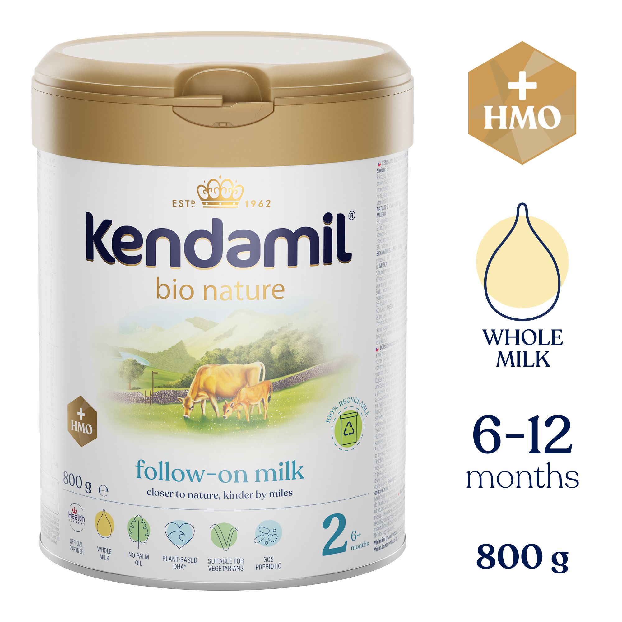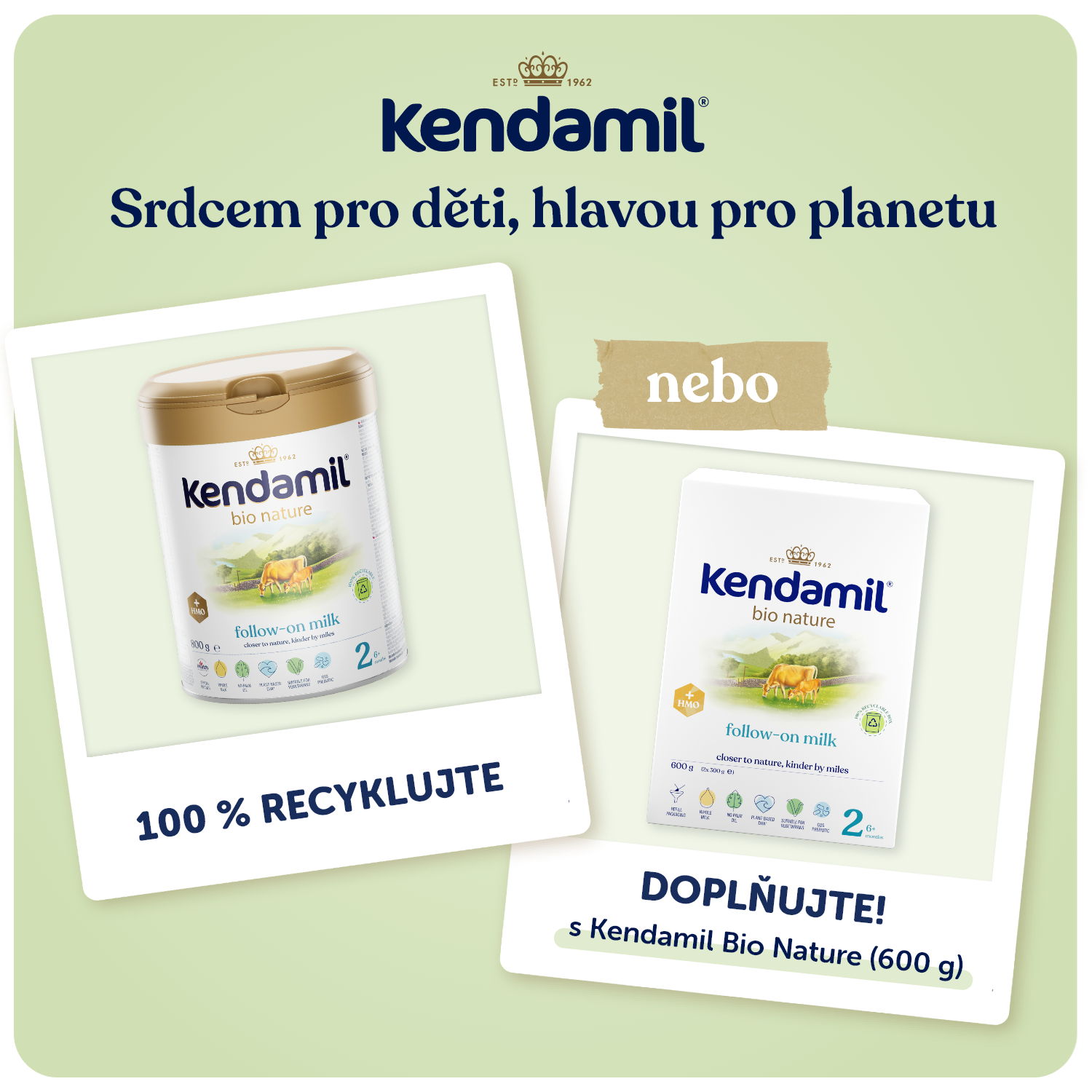 Pokračovací mléčná kojenecká výživa v prášku. Potravina určená pro výživu kojenců od ukončeného 6. do 12. měsíce. Nová vylepšená receptura s oligosacharidem mateřského mléka HMO (3´GL) a prebiotiky GOS vznikla na základě 60letého výzkumu a vývoje. Kojenecké mléko Kendamil BIO Nature je inspirováno tím nejlepším z čisté přírody. Jeho základ tvoří především plnotučné kravské mléko v BIO kvalitě s přirozeným obsahem mléčného tuku po vzoru mateřského mléka. Určeno pro miminka od ukončeného 6. měsíce do jeho jednoho roku. Obal je plně recyklovatelný.