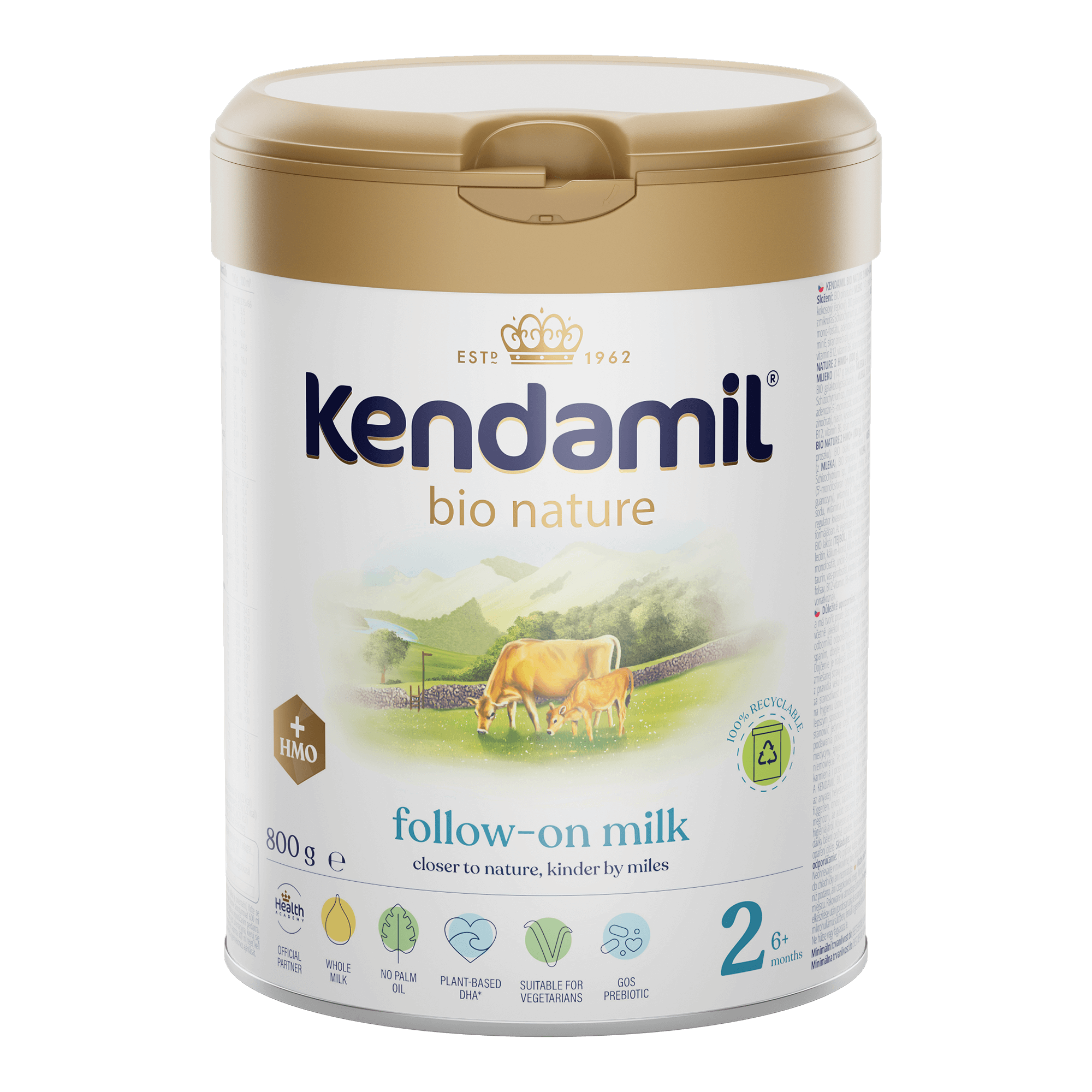 Pokračovací mléčná kojenecká výživa v prášku. Potravina určená pro výživu kojenců od ukončeného 6. do 12. měsíce. Nová vylepšená receptura s oligosacharidem mateřského mléka HMO (3´GL) a prebiotiky GOS vznikla na základě 60letého výzkumu a vývoje. Kojenecké mléko Kendamil BIO Nature je inspirováno tím nejlepším z čisté přírody. Jeho základ tvoří především plnotučné kravské mléko v BIO kvalitě s přirozeným obsahem mléčného tuku po vzoru mateřského mléka. Určeno pro miminka od ukončeného 6. měsíce do jeho jednoho roku. Obal je plně recyklovatelný.