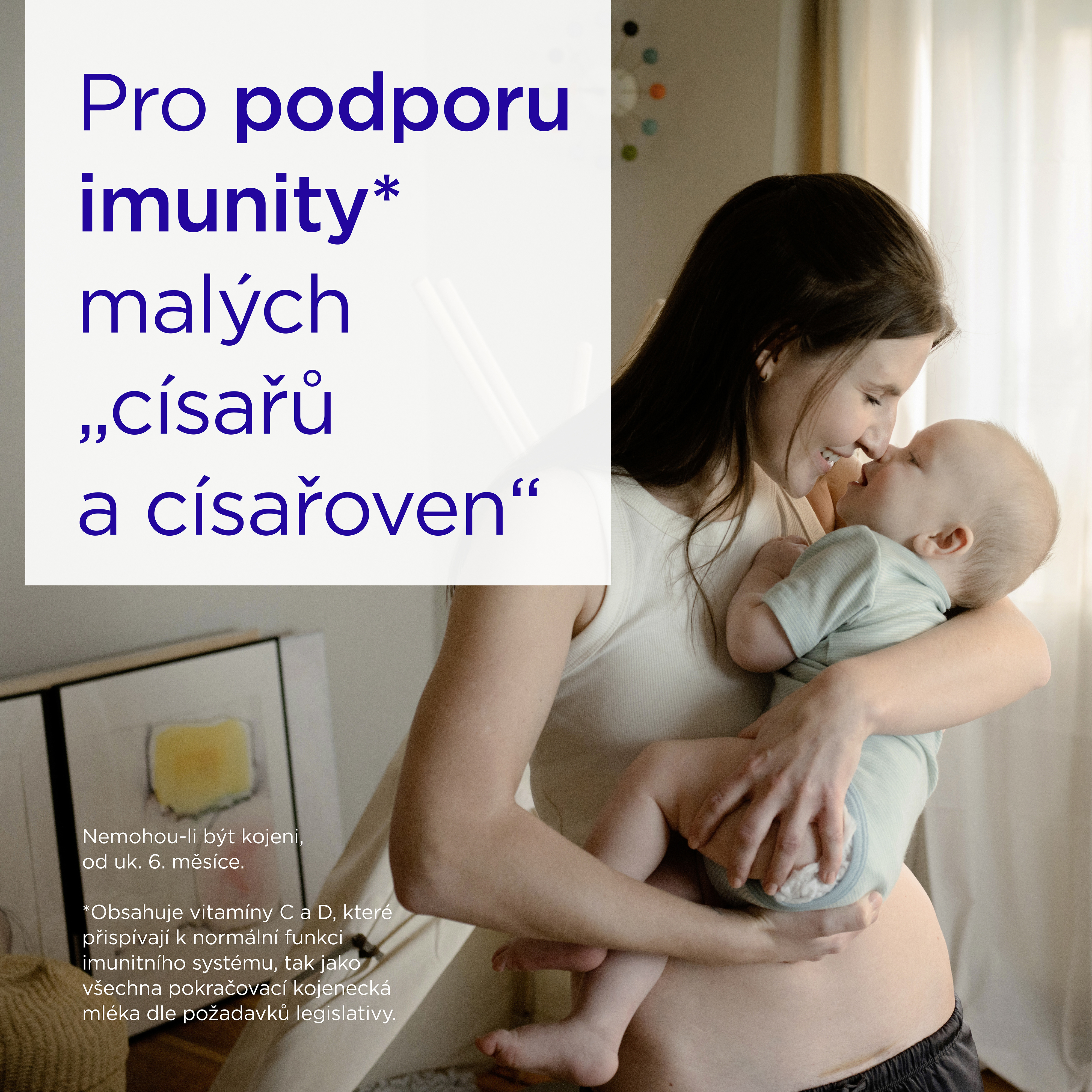 * Vitamíny C a D přispívají k normální funkci imunitního systému, dle legislativy obsahují pokračovací mléka vitamíny C a D.
