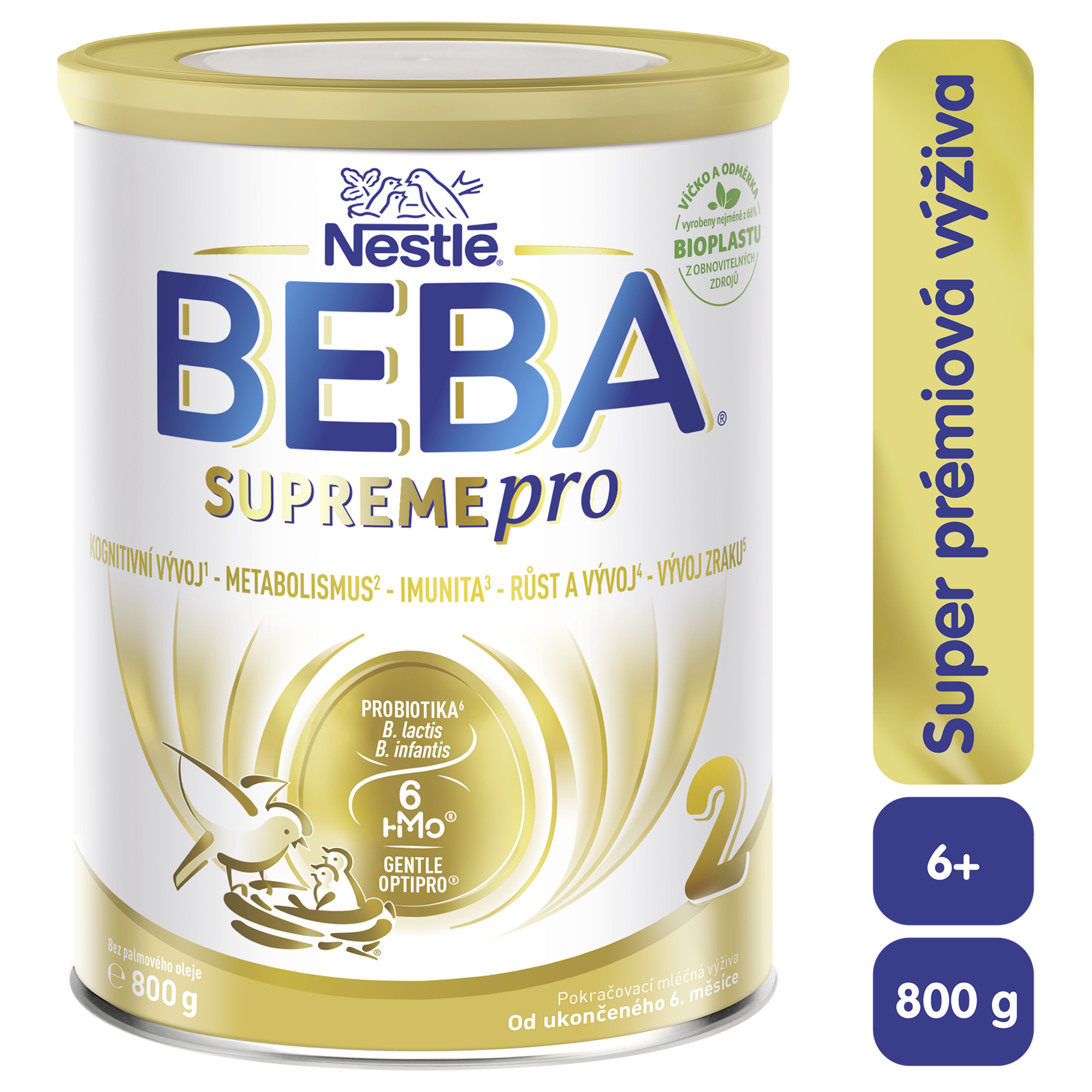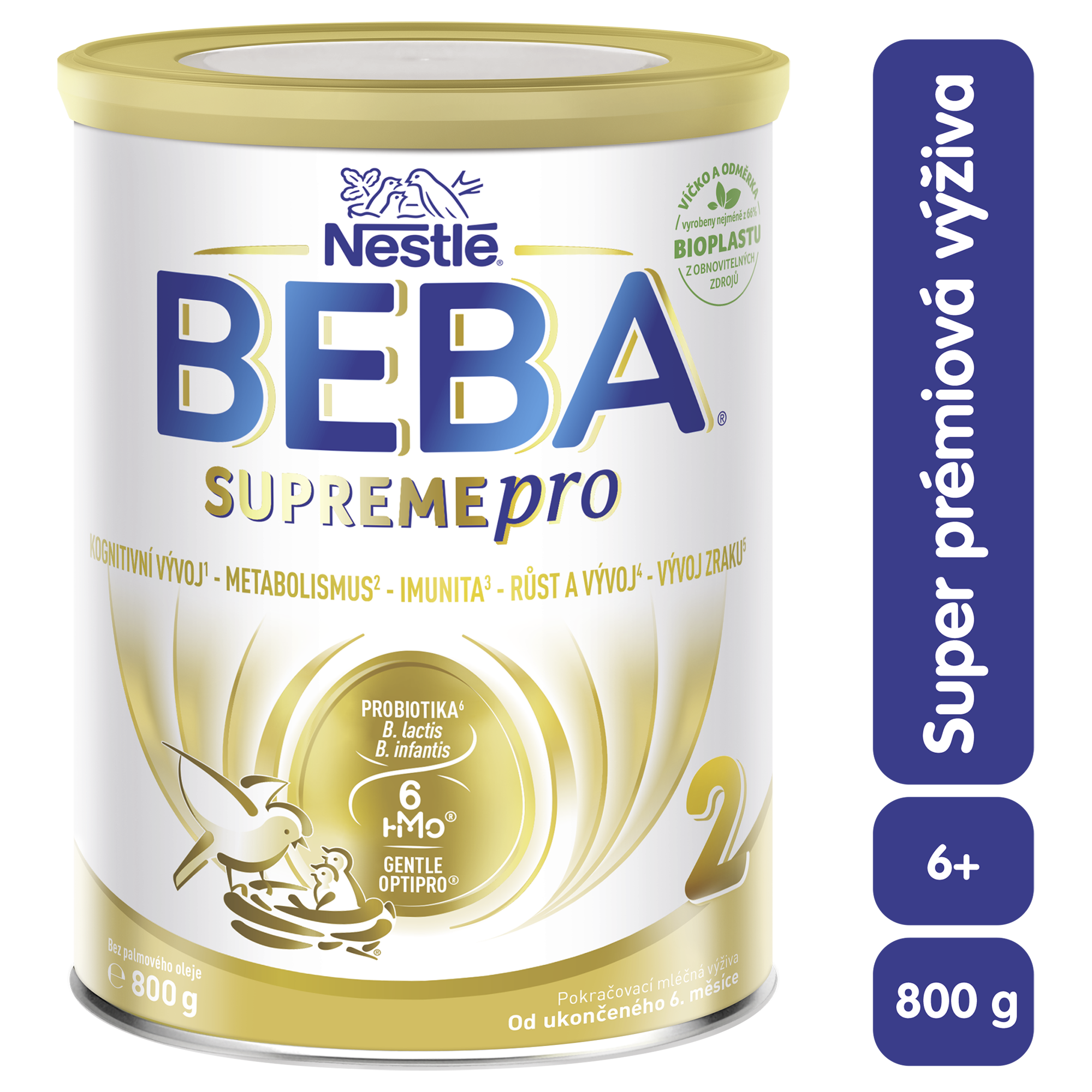 Celoživotní zdraví vyžaduje včasné vybudování pevných základů. Zejména v raném věku je pro děti nejdůležitější vhodná a vyvážená výživa. Důležitým prvkem správné výživy je její schopnost podporovat imunitní systém vašeho děťátka. Z těchto důvodů se jádrem našeho zkoumání staly prebiotické oligosacharidy strukturou podobné těm, které se nacházejí v mateřském mléce. Díky dlouholetému výzkumu jsme vyvinuli naši doposud nejdokonalejší recepturu s 6 prebiotickými oligosacharidy, probiotiky B. lactis a B. infantis a šetrnou, částečně štěpenou bílkovinou upravenou procesem GENTLE OPTIPRO®. Pokračovací kojenecká výživa BEBA SUPREMEpro 2, 6 HMO, je nejen inovativní recepturou na poli kojenecké výživy, ale i dalším krokem pro budování úžasné budoucnosti těch nejmenších.