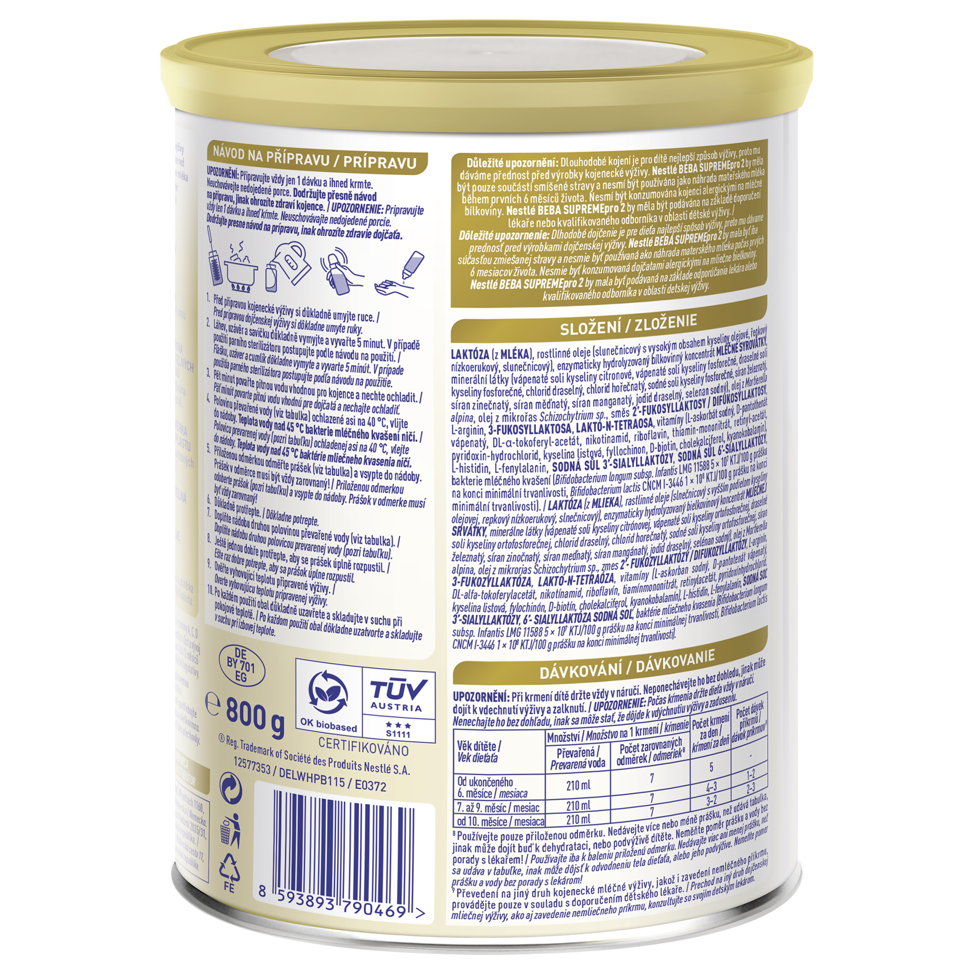 Důležité upozornění: Dlouhodobé kojení je pro dítě nejlepší způsob výživy, proto mu dáváme přednost před výrobky kojenecké výživy. Nestlé BEBA SUPREMEpro 2 by měla být pouze součástí smíšené stravy a nesmí být používána jako náhrada mateřského mléka během prvních 6 měsíců života. Nesmí být konzumována kojenci alergickými na mléčné bílkoviny. Nestlé BEBA SUPREMEpro 2 by měla být podávána na základě doporučení lékaře nebo kvalifikovaného odborníka v oblasti dětské výživy.